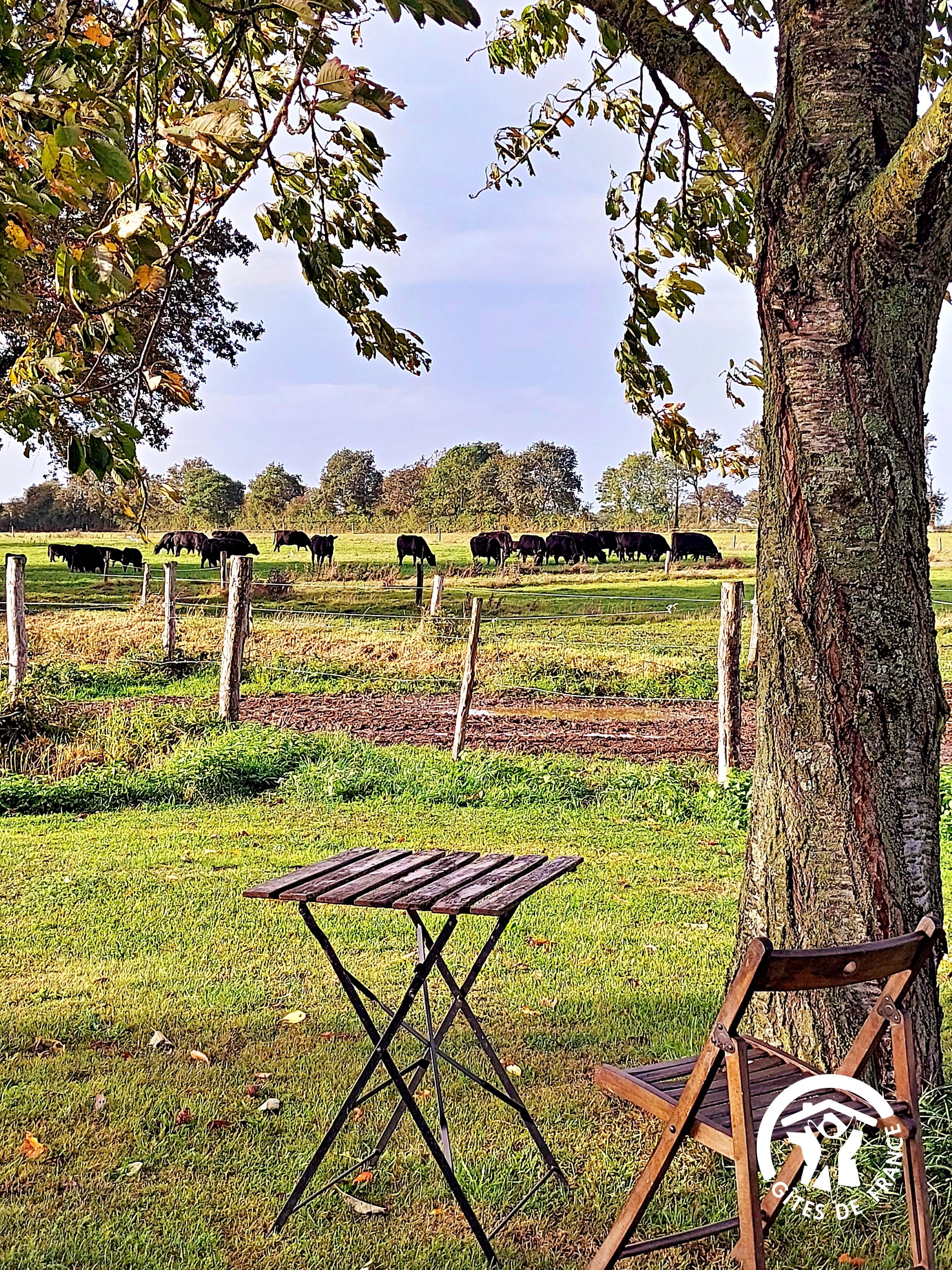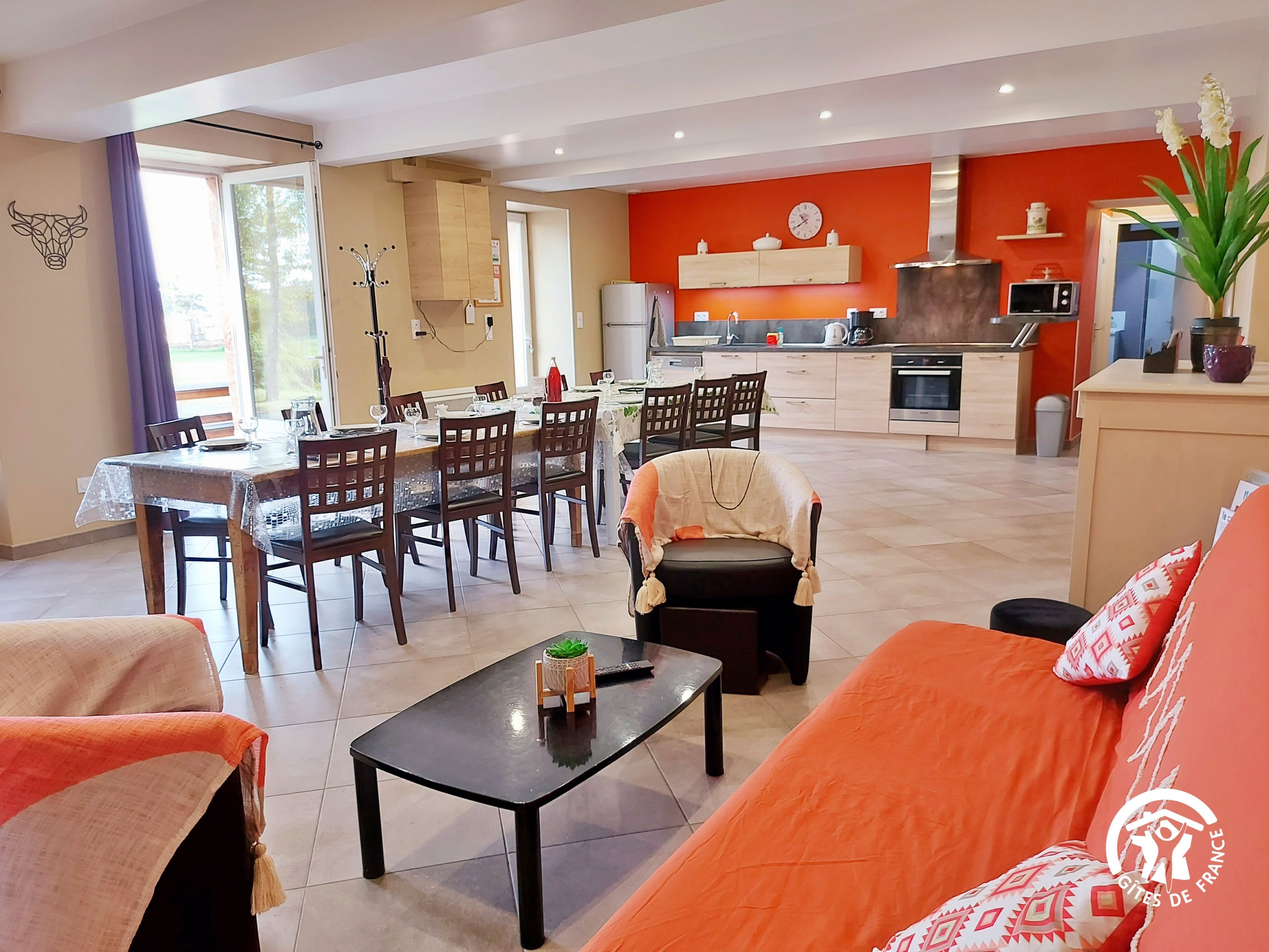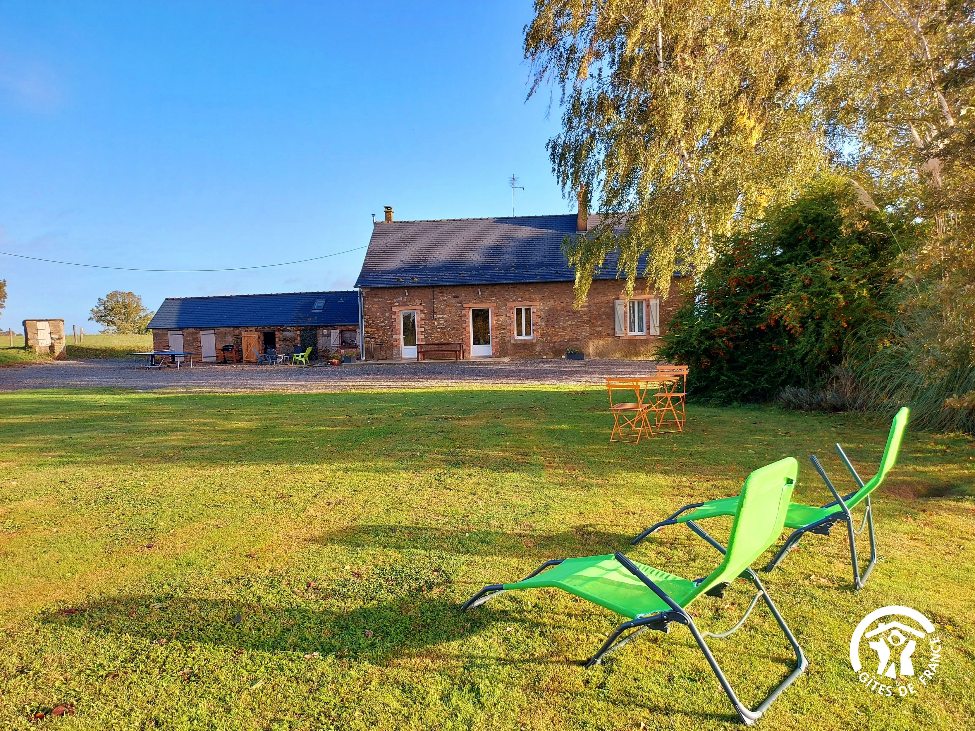 Une maison en pierre totalement indépendante entourée de champs à perte de vue. Ça et là l’ombre des arbres. Le vaste séjour de 55m², les 4 chambres en font un gîte exceptionnel. Jeux extérieurs (table de ping-pong, raquettes badminton, ballon) et jeux de société en intérieur, mare de 400m² (pêche loisirs). Des vacances reposantes, avec possibilité de découvrir entre autre avec Didier, agriculteur bio, la race Aberdeen-Angus.