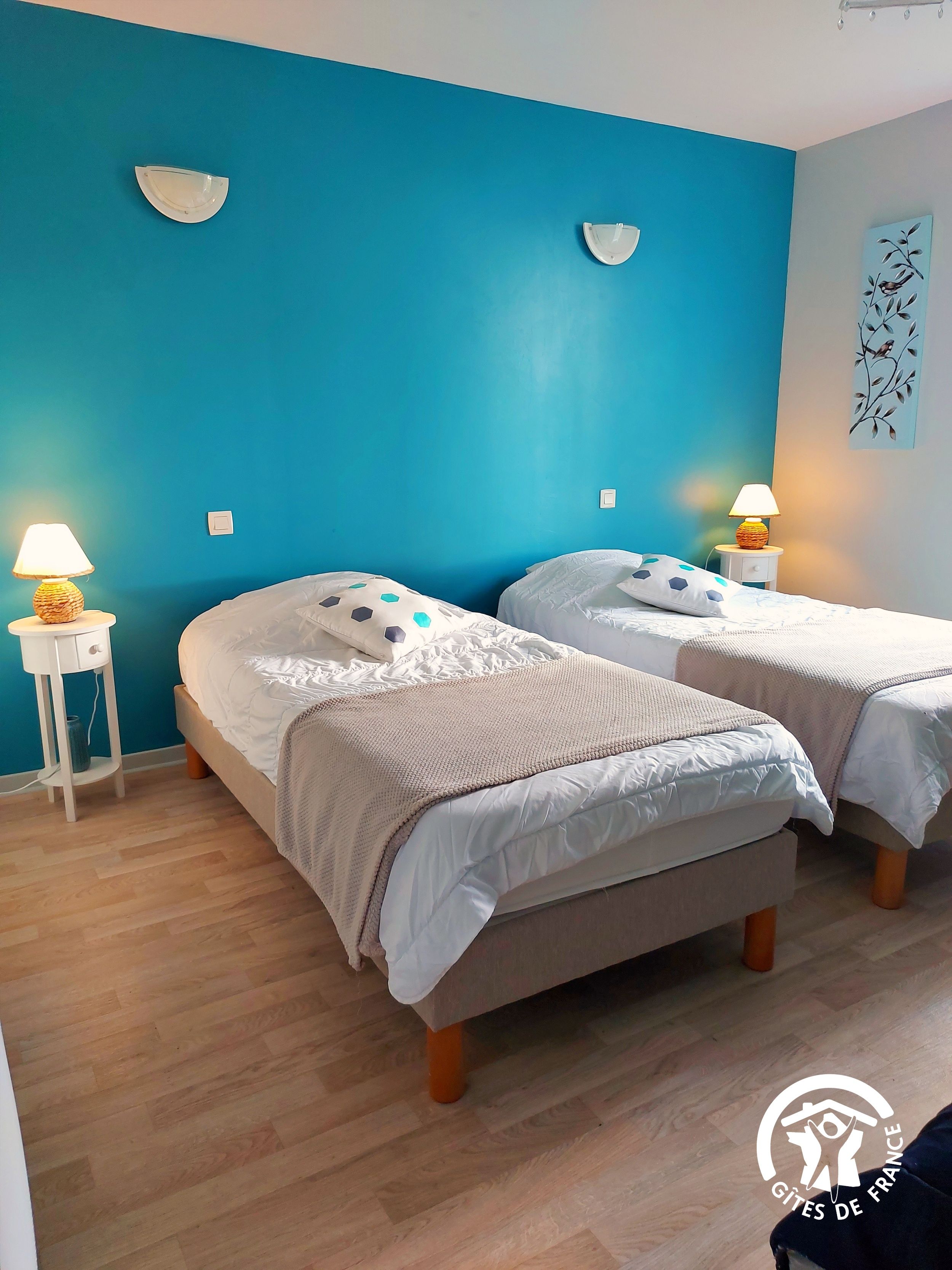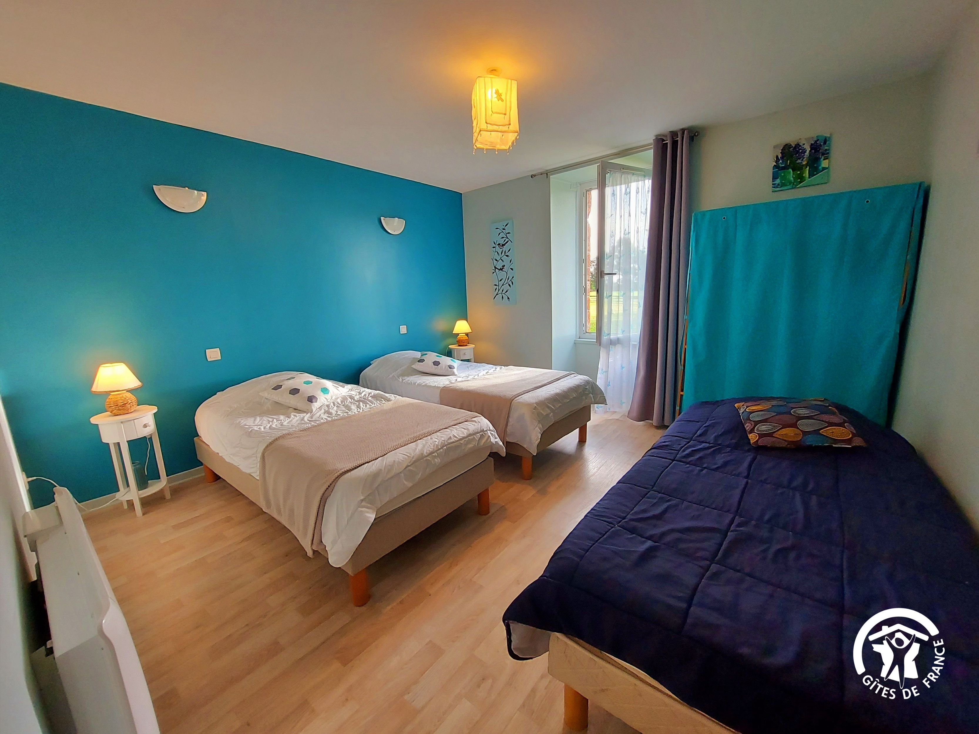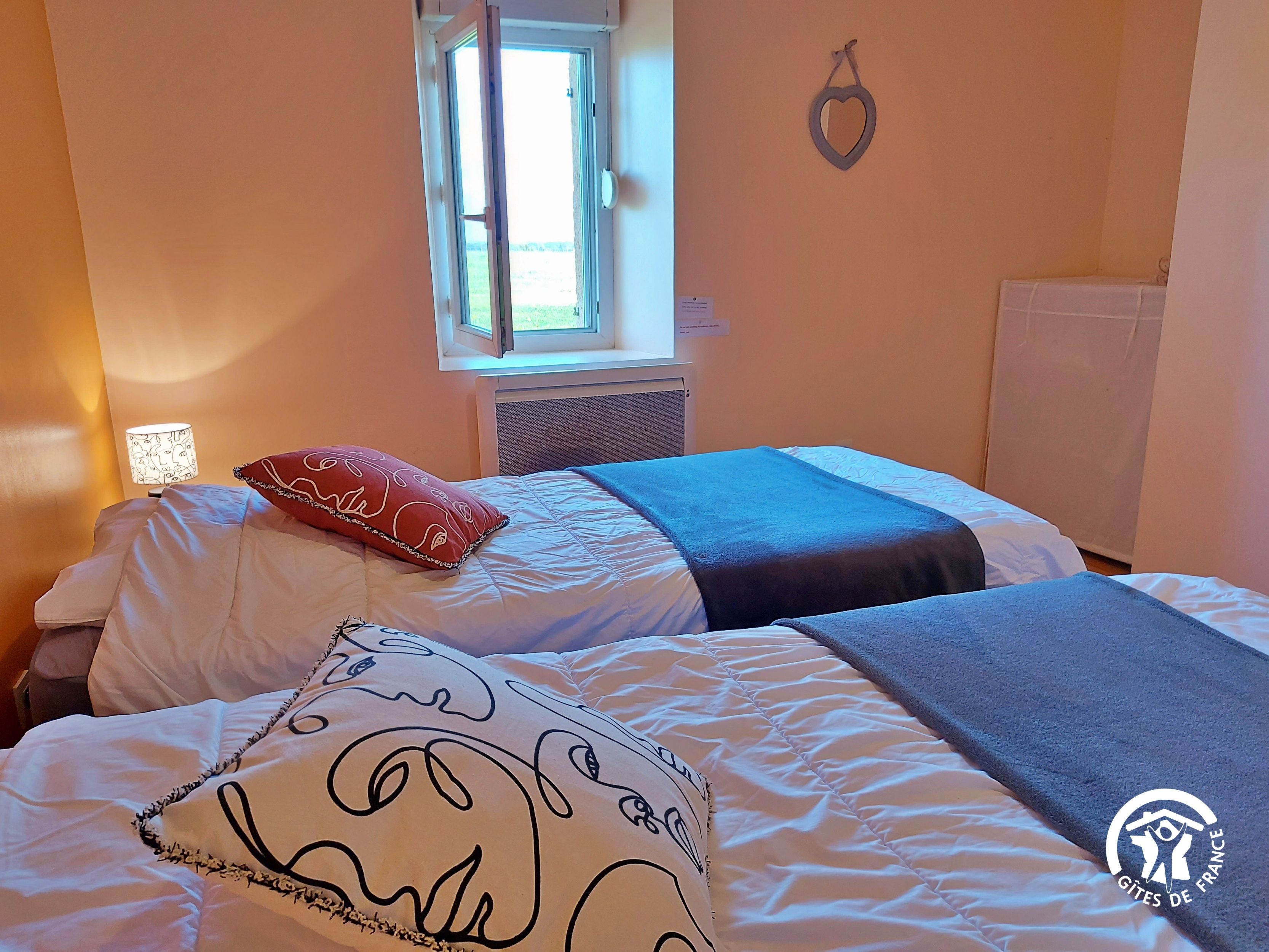 Une maison en pierre totalement indépendante entourée de champs à perte de vue. Ça et là l’ombre des arbres. Le vaste séjour de 55m², les 4 chambres en font un gîte exceptionnel. Jeux extérieurs (table de ping-pong, raquettes badminton, ballon) et jeux de société en intérieur, mare de 400m² (pêche loisirs). Des vacances reposantes, avec possibilité de découvrir entre autre avec Didier, agriculteur bio, la race Aberdeen-Angus.