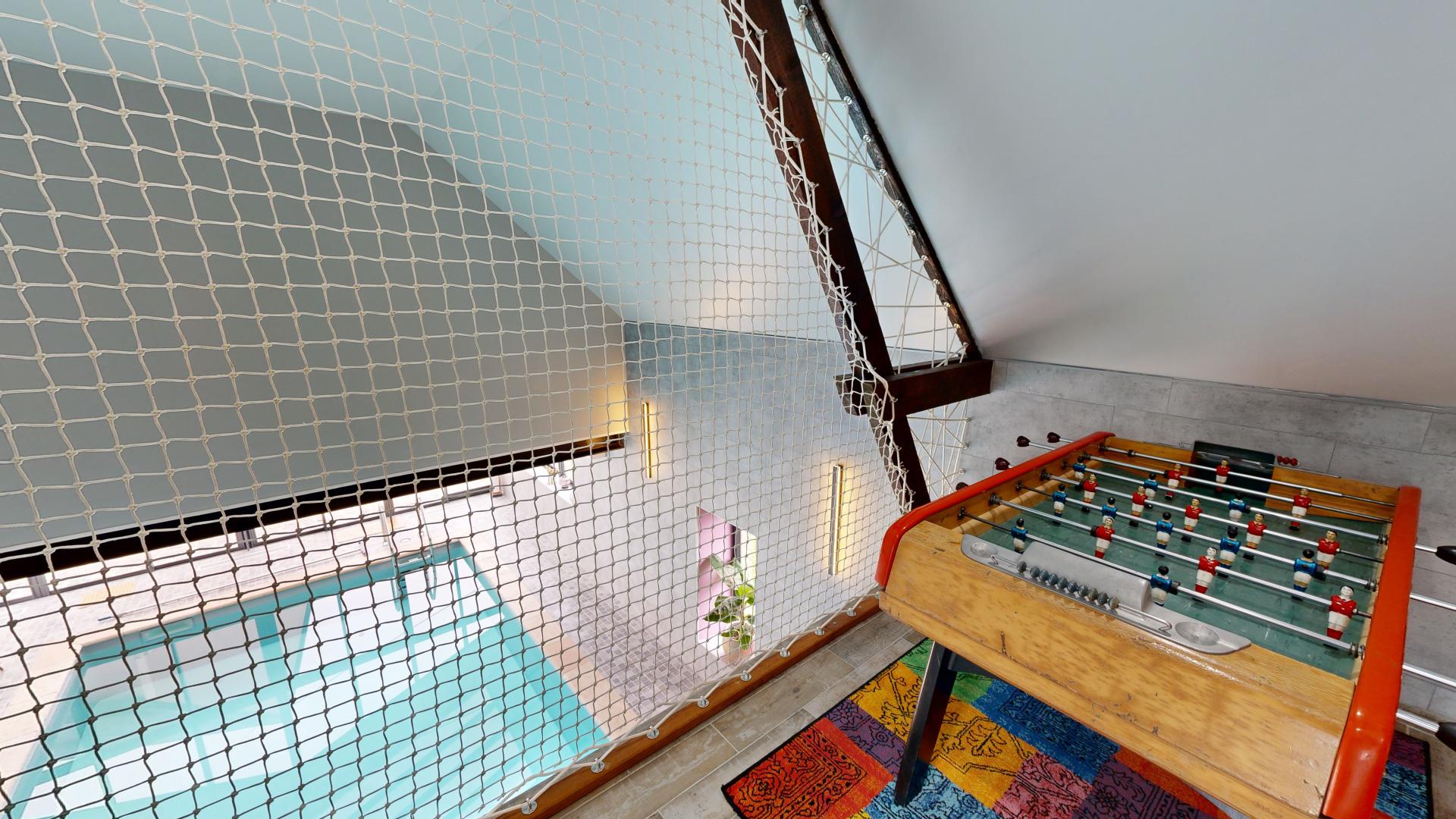 Le point fort du gîte est sans conteste sa piscine intérieure privée chauffée, accessible directement depuis la maison. Plongez dans l’eau, quelle que soit la météo, ou reposez-vous confortablement avec une vue sur le jardin verdoyant à travers les grandes baies vitrées.