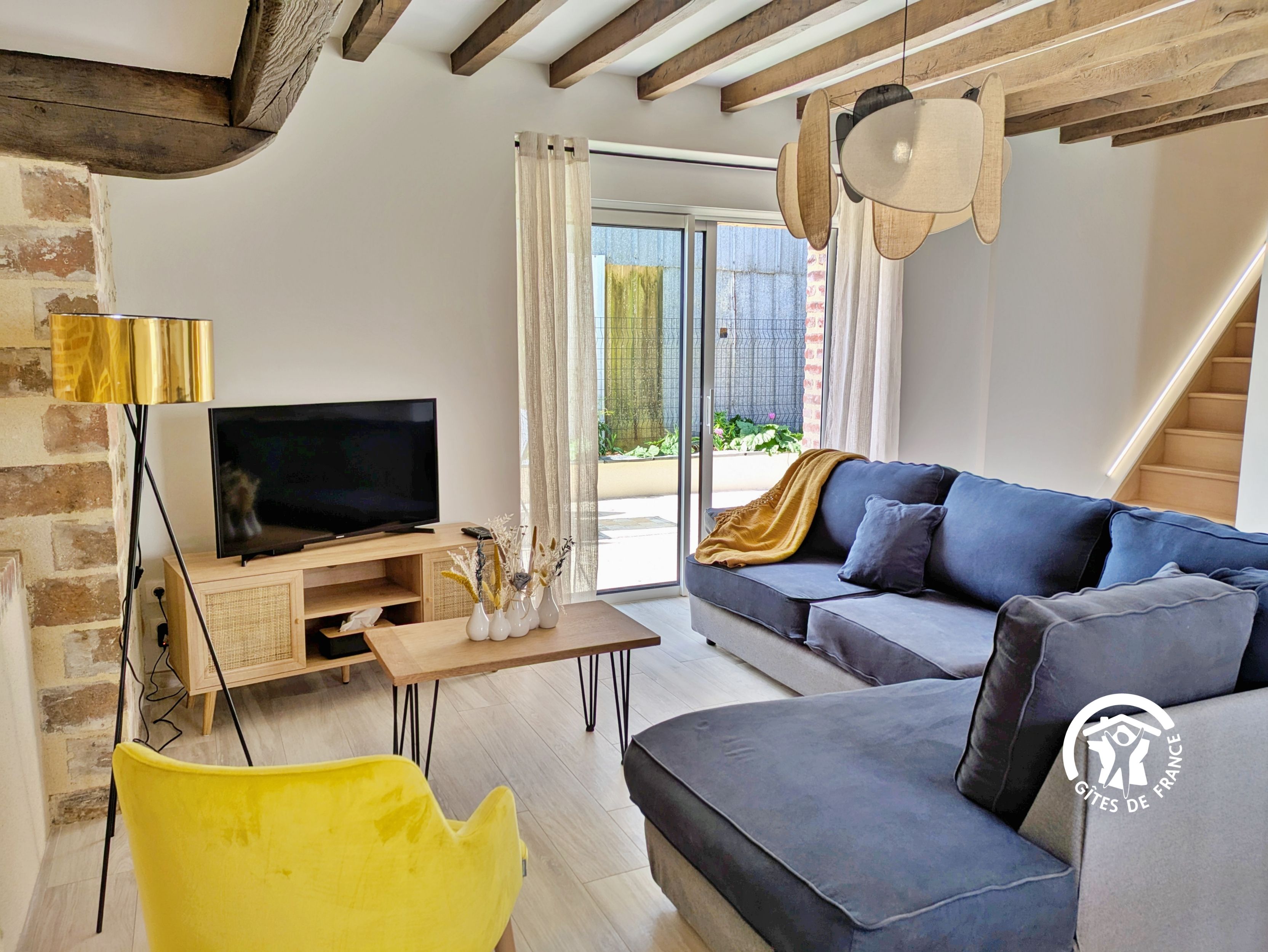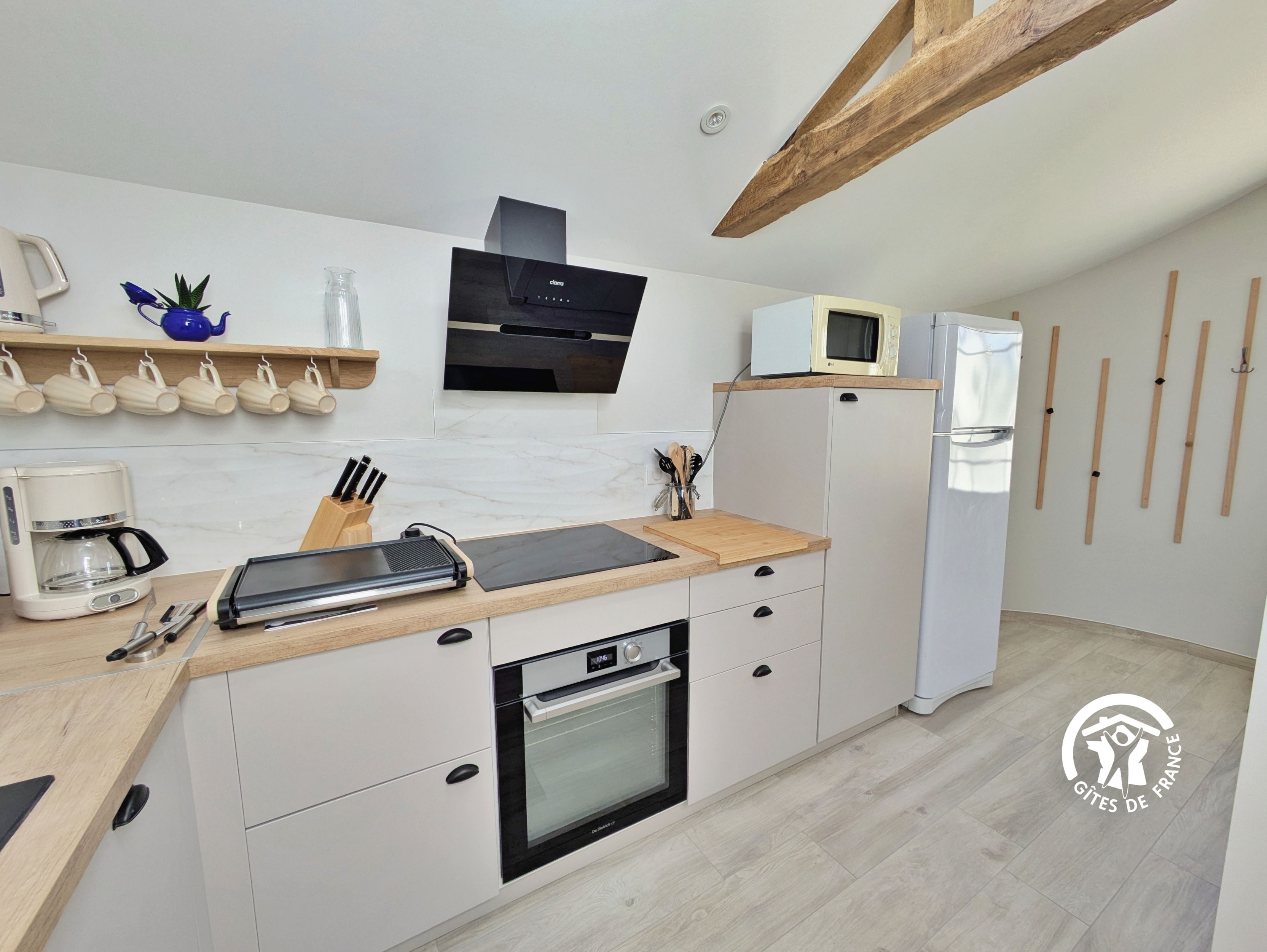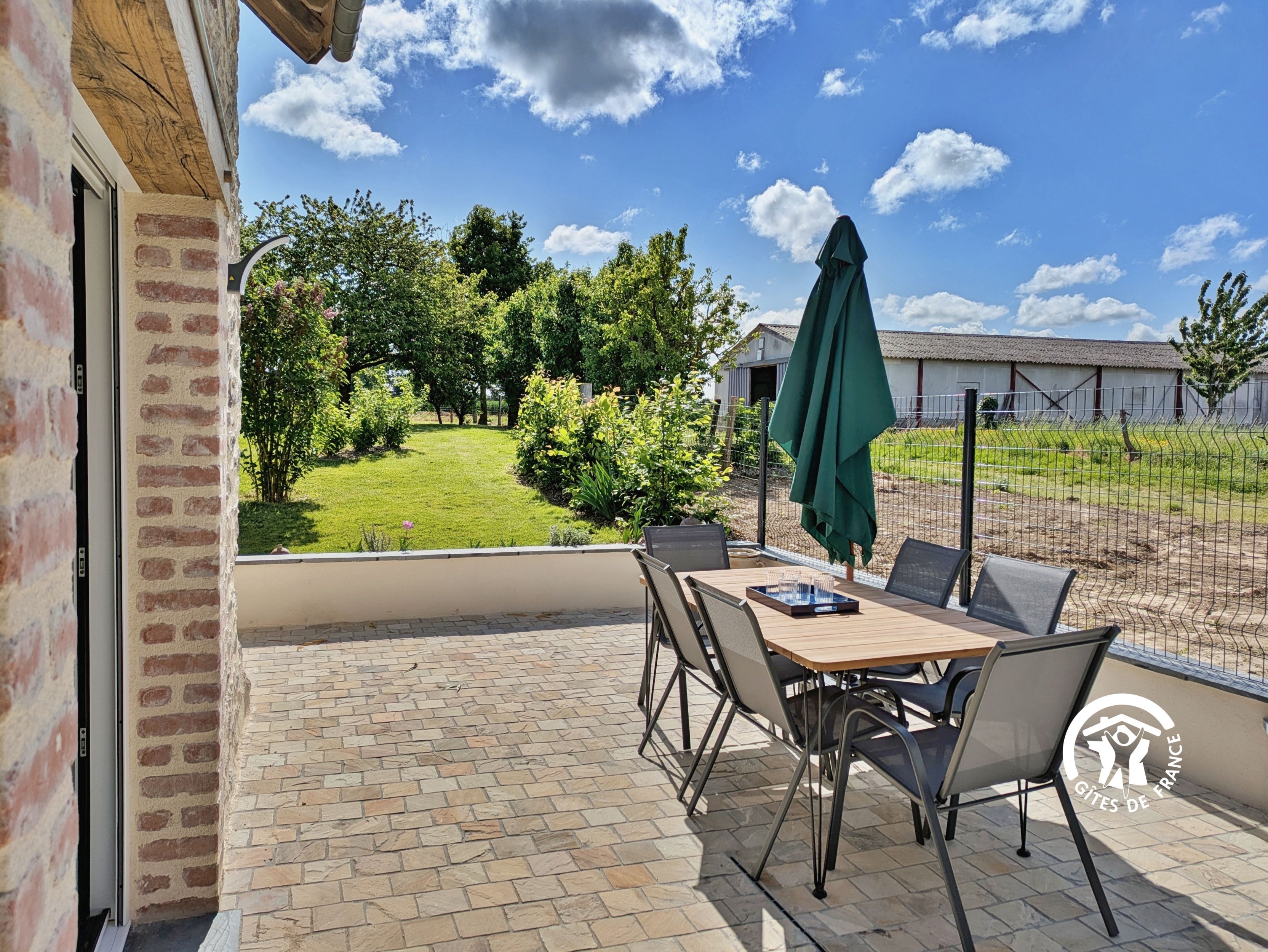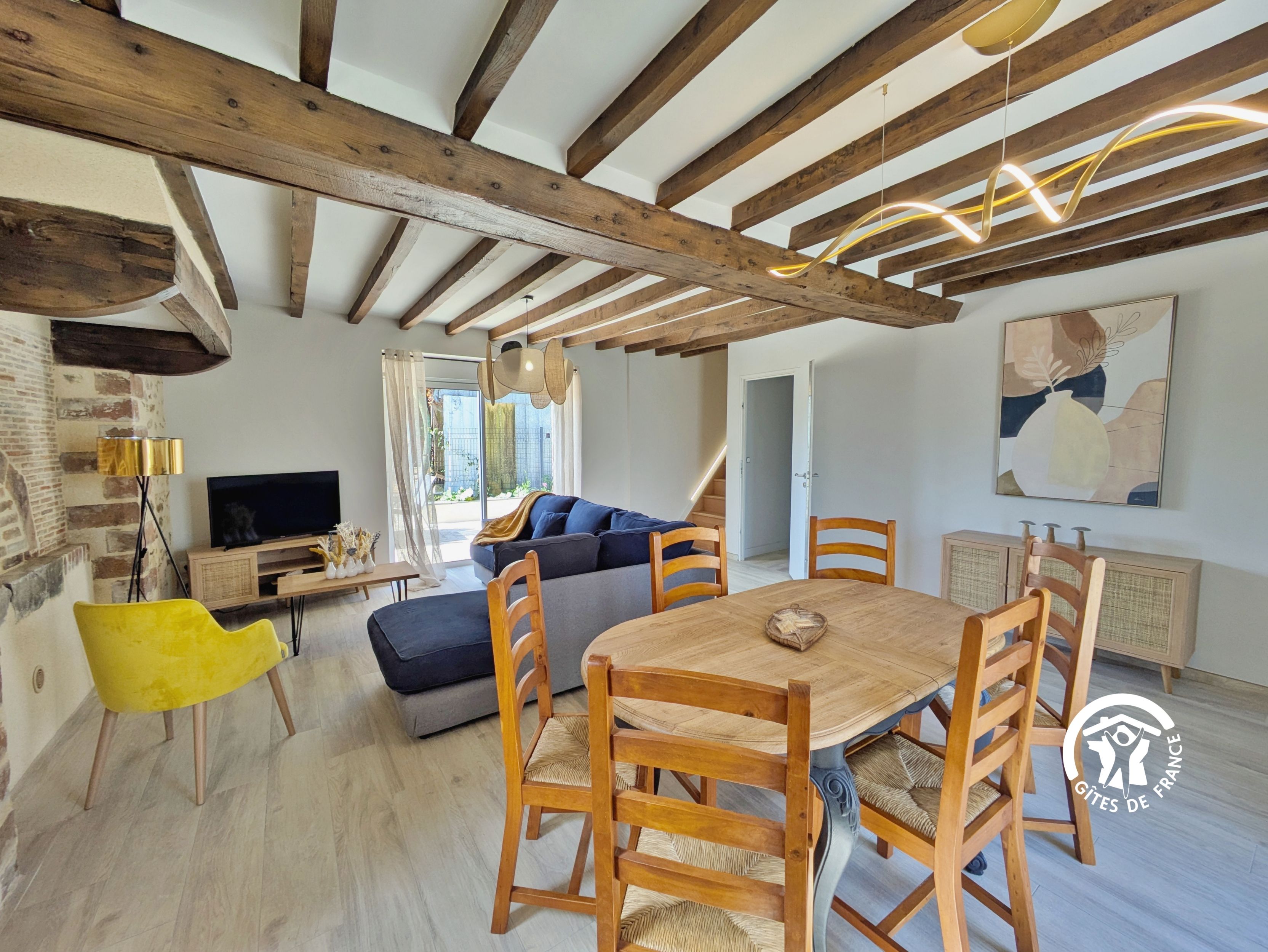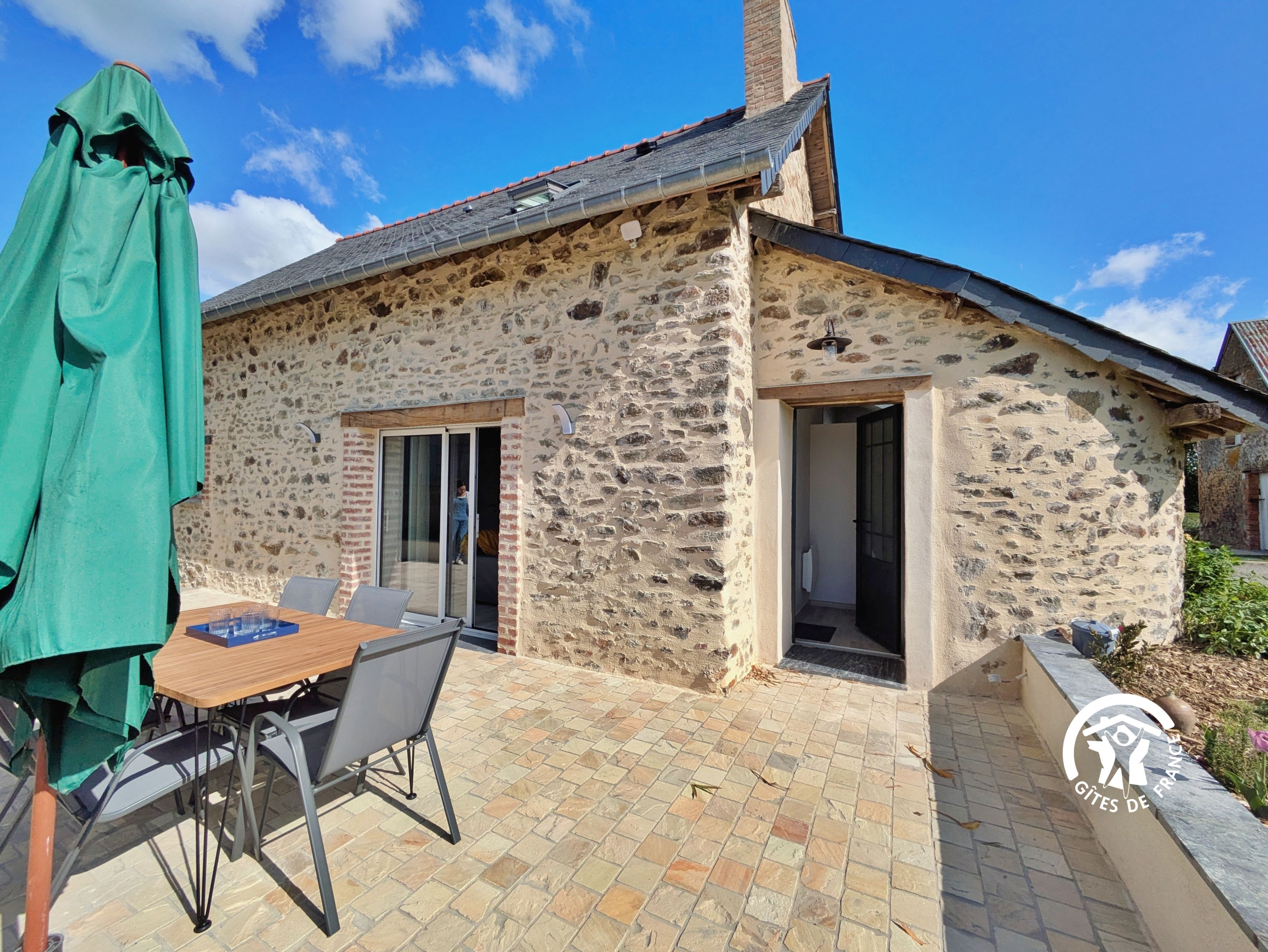 Petite maison parfaitement agencée, très bien équipée et confortable, à la campagne. Espace de vie lumineux ouvert par une baie vitrée sur la terrasse, parking dans la propriété clôturée. Trois chambres et cinq lits, internet par wifi et câble, cuisine aux équipements complets, un gîte pour se retrouver et profiter des animations et festivals aux alentours.