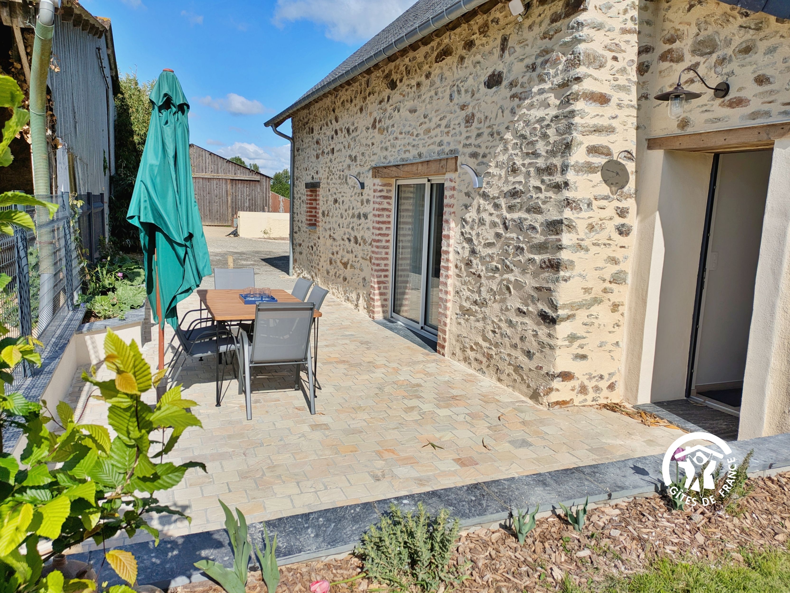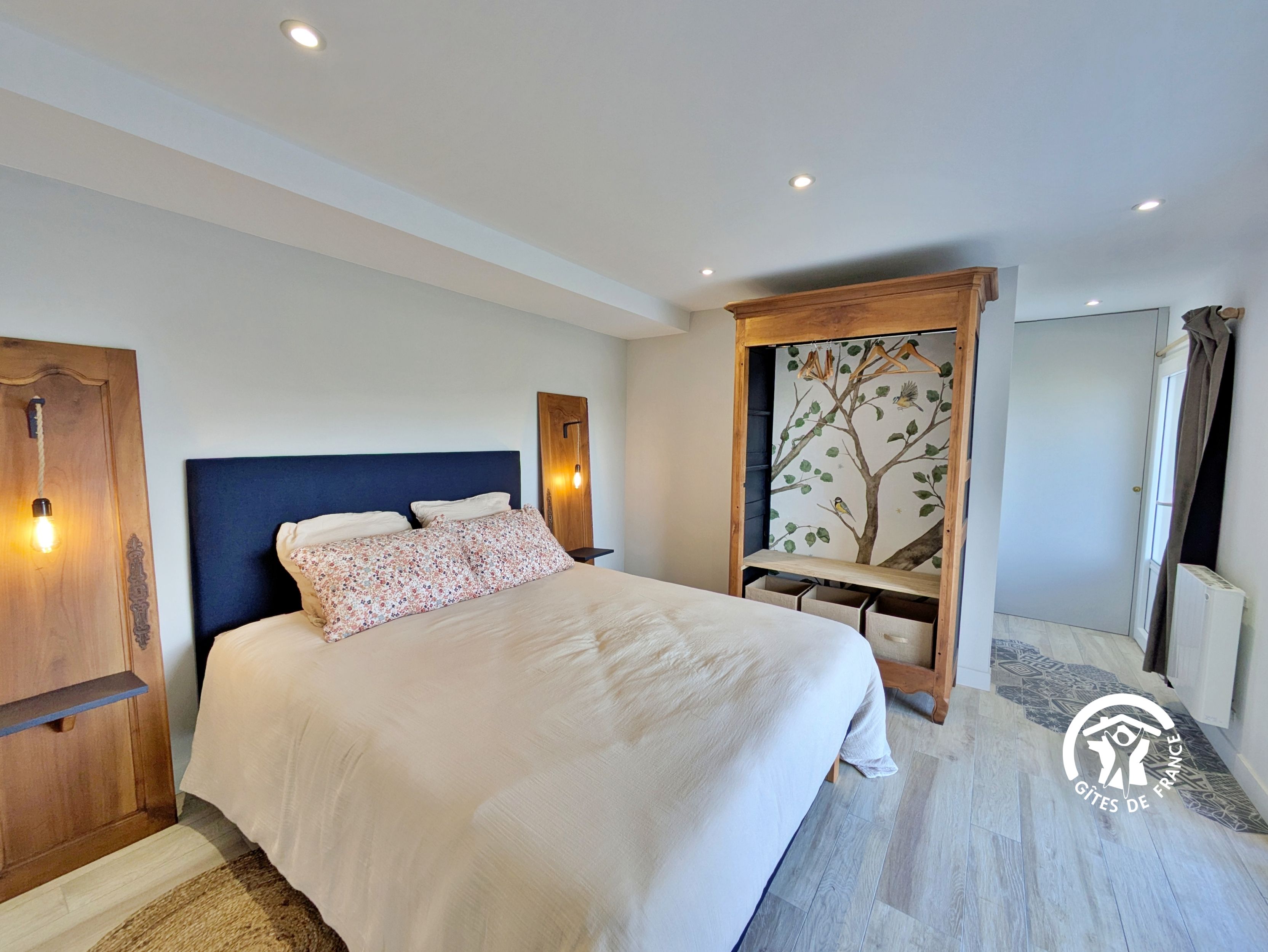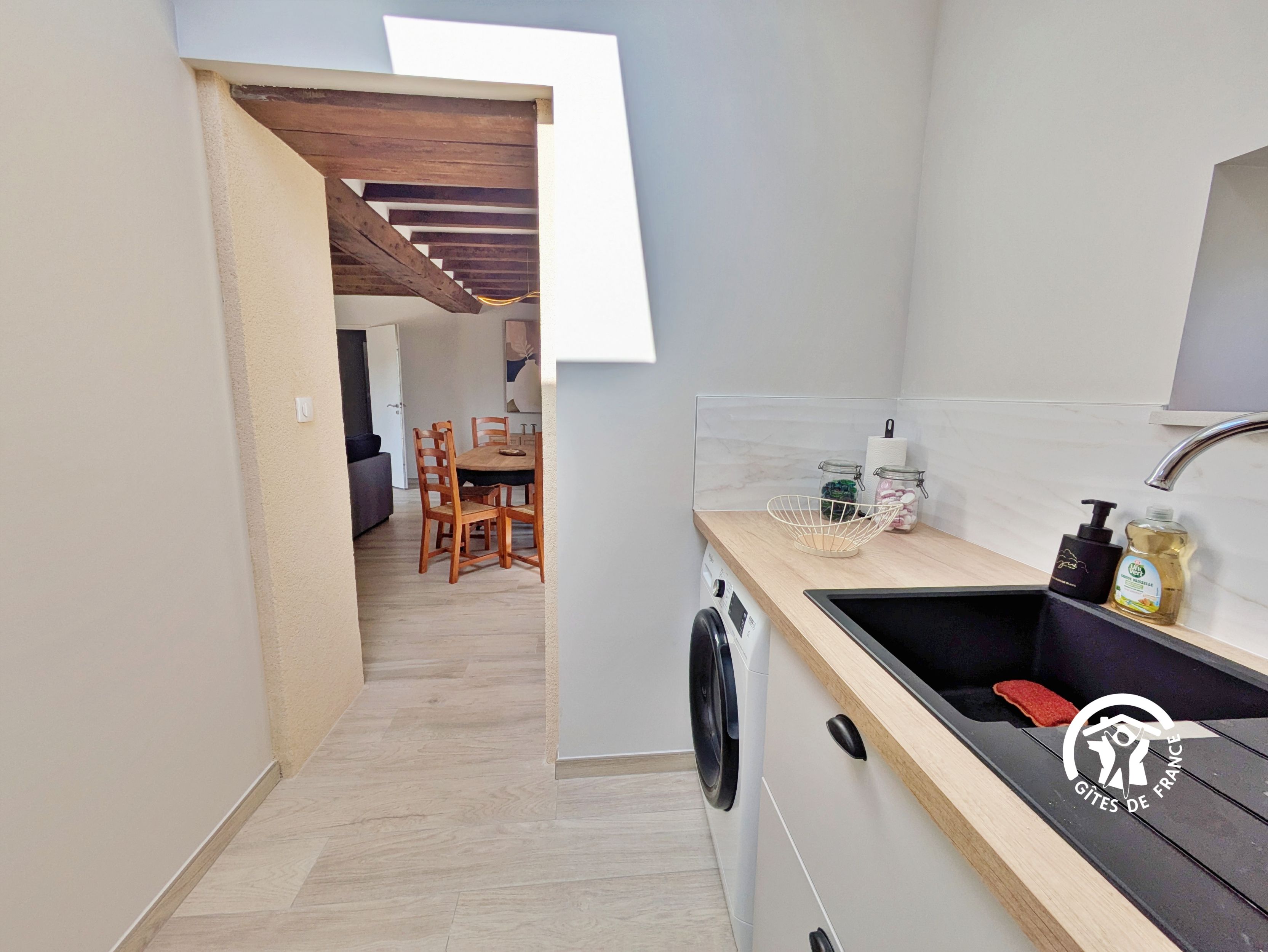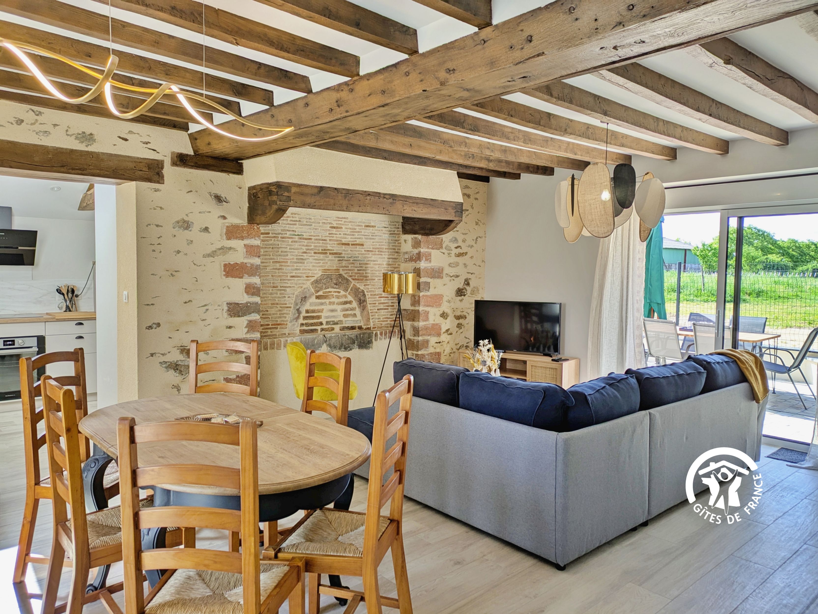 Petite maison parfaitement agencée, très bien équipée et confortable, à la campagne. Espace de vie lumineux ouvert par une baie vitrée sur la terrasse, parking dans la propriété clôturée. Trois chambres et cinq lits, internet par wifi et câble, cuisine aux équipements complets, un gîte pour se retrouver et profiter des animations et festivals aux alentours.
