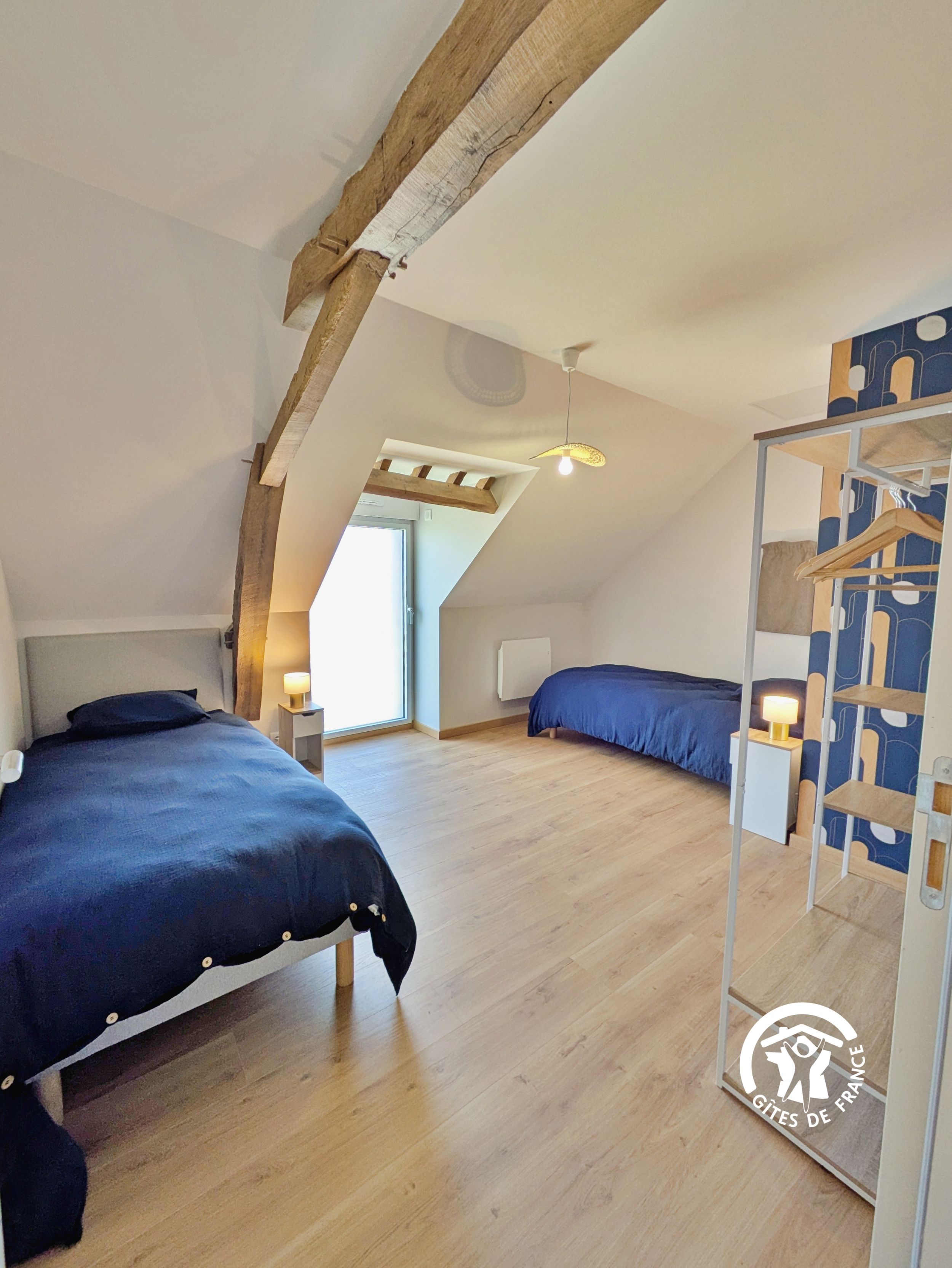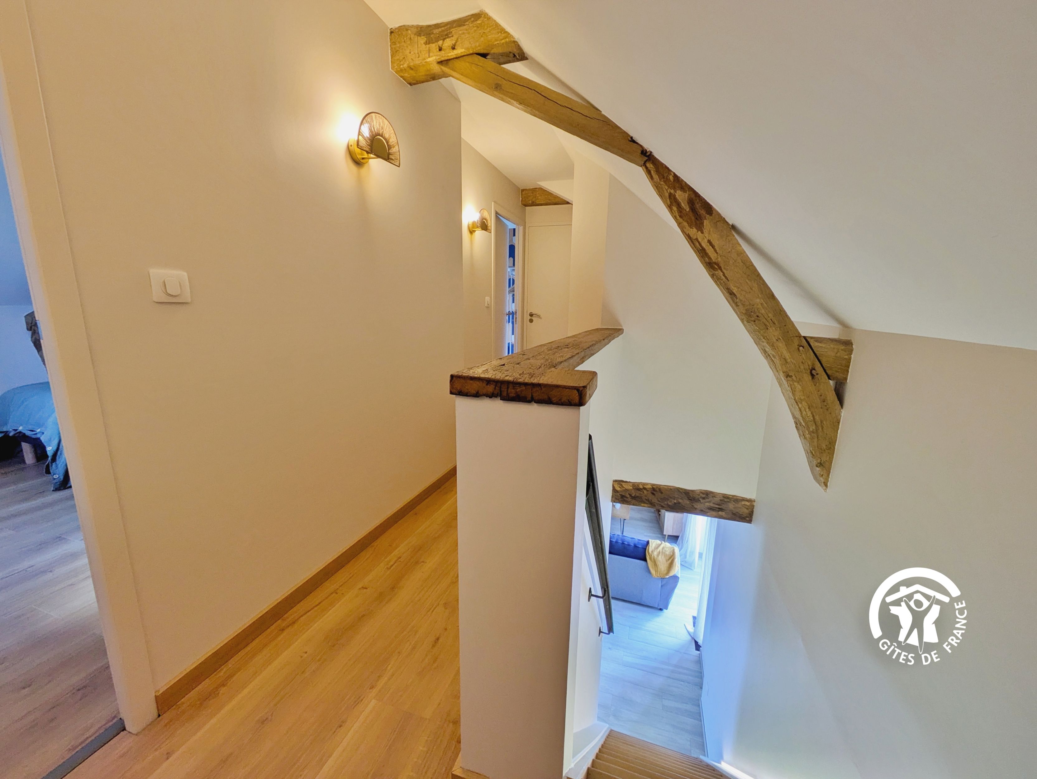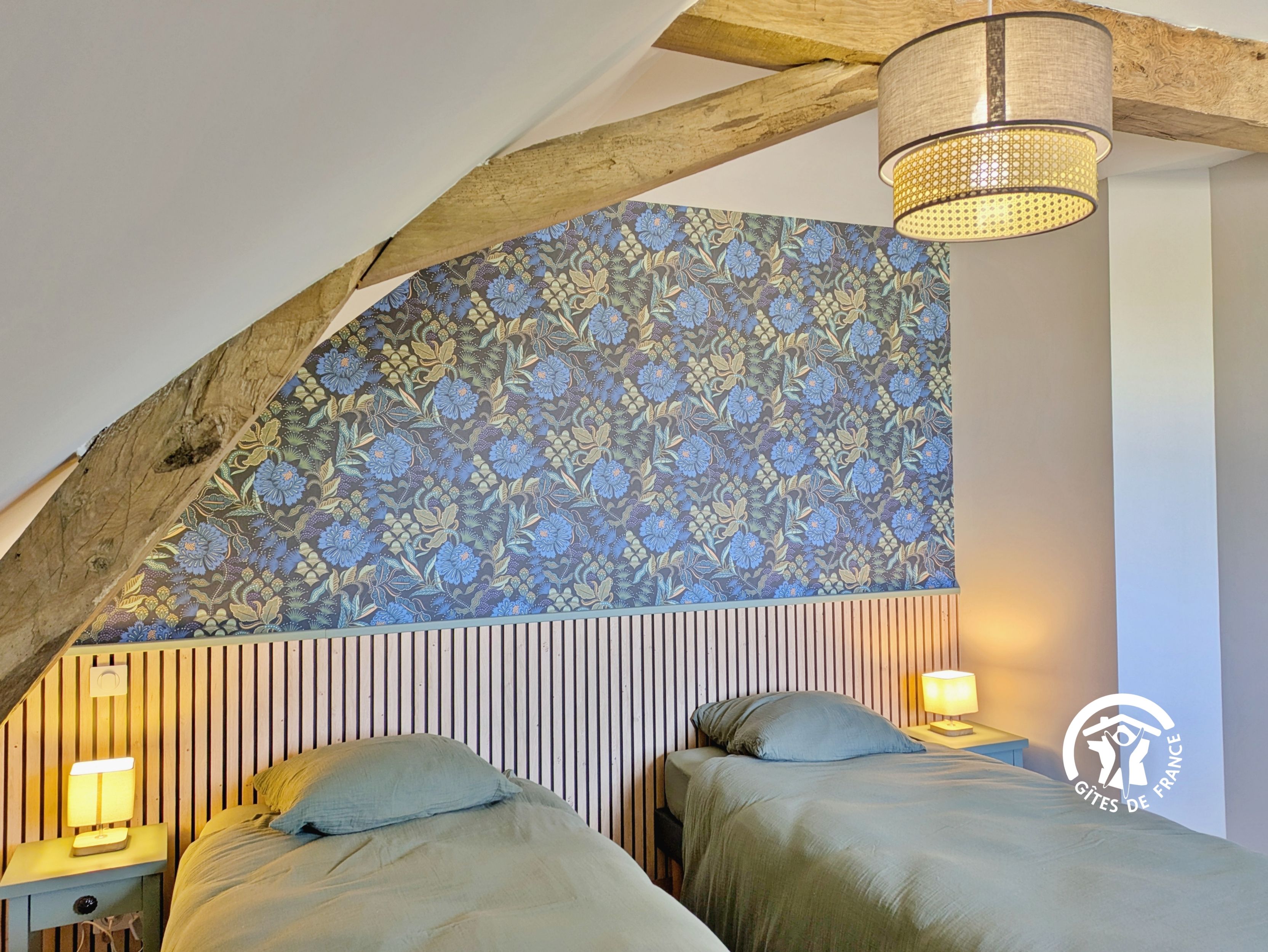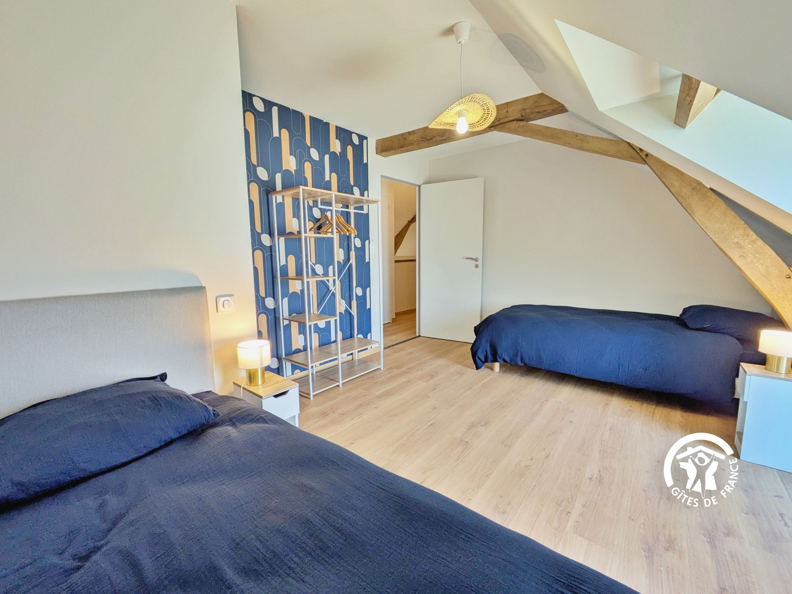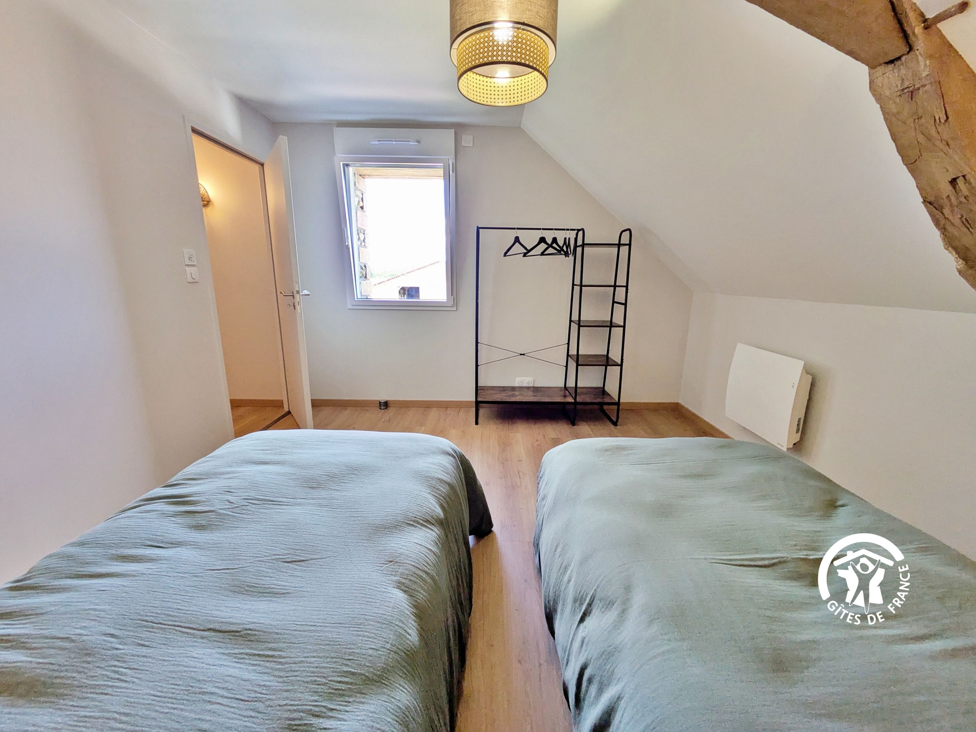 Petite maison parfaitement agencée, très bien équipée et confortable, à la campagne. Espace de vie lumineux ouvert par une baie vitrée sur la terrasse, parking dans la propriété clôturée. Trois chambres et cinq lits, internet par wifi et câble, cuisine aux équipements complets, un gîte pour se retrouver et profiter des animations et festivals aux alentours.