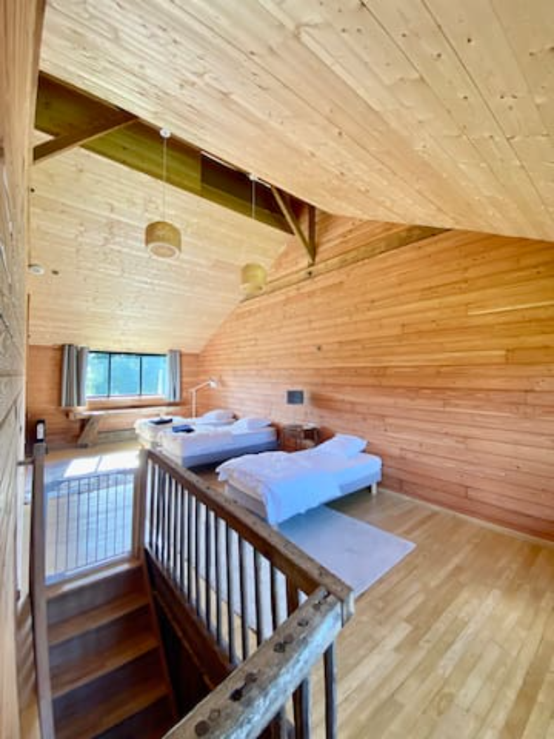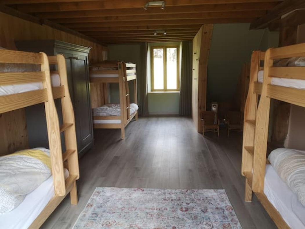 GRAND LODGE de 15 personne, ancienne usine rénovée en pierre et bois. Pour séjour famille/amis, ou séminaire. Très spacieux et confortable, magnifique vue sur prés et d’animaux.