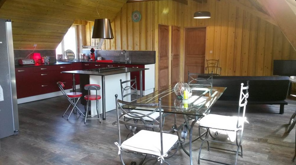 Le Loft, gîte à Contigné au Thomas Ranch, d’une capacité de 6 personnes réparties en trois chambres, entièrement équipé avec cuisine, deux salles de bain (douche et bain), internet, télévision, chauffage…,tout inclus (draps,serviettes…).