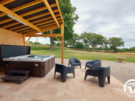 – En extérieur : spa* 6 places (accessible à partir de 13 ans) – grande terrasse avec barbecue à charbon, table et chaises repas – salon de jardin – chaises longues – portique jeunes enfants – petits buts de foot – hamac entre les chênes.
