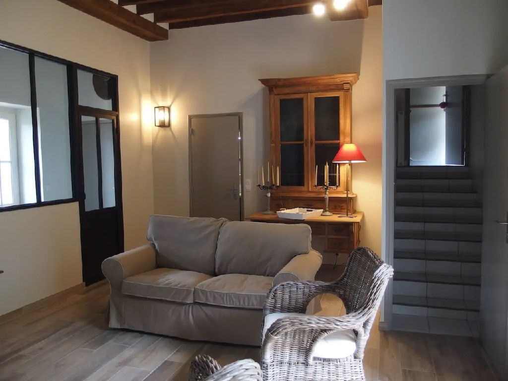 Maison mitoyenne dans les dépendances d’une propriété de caractère située en pleine campagne à 5 km de Pouancé et à moins d’une heure d’Angers, Rennes et Laval .