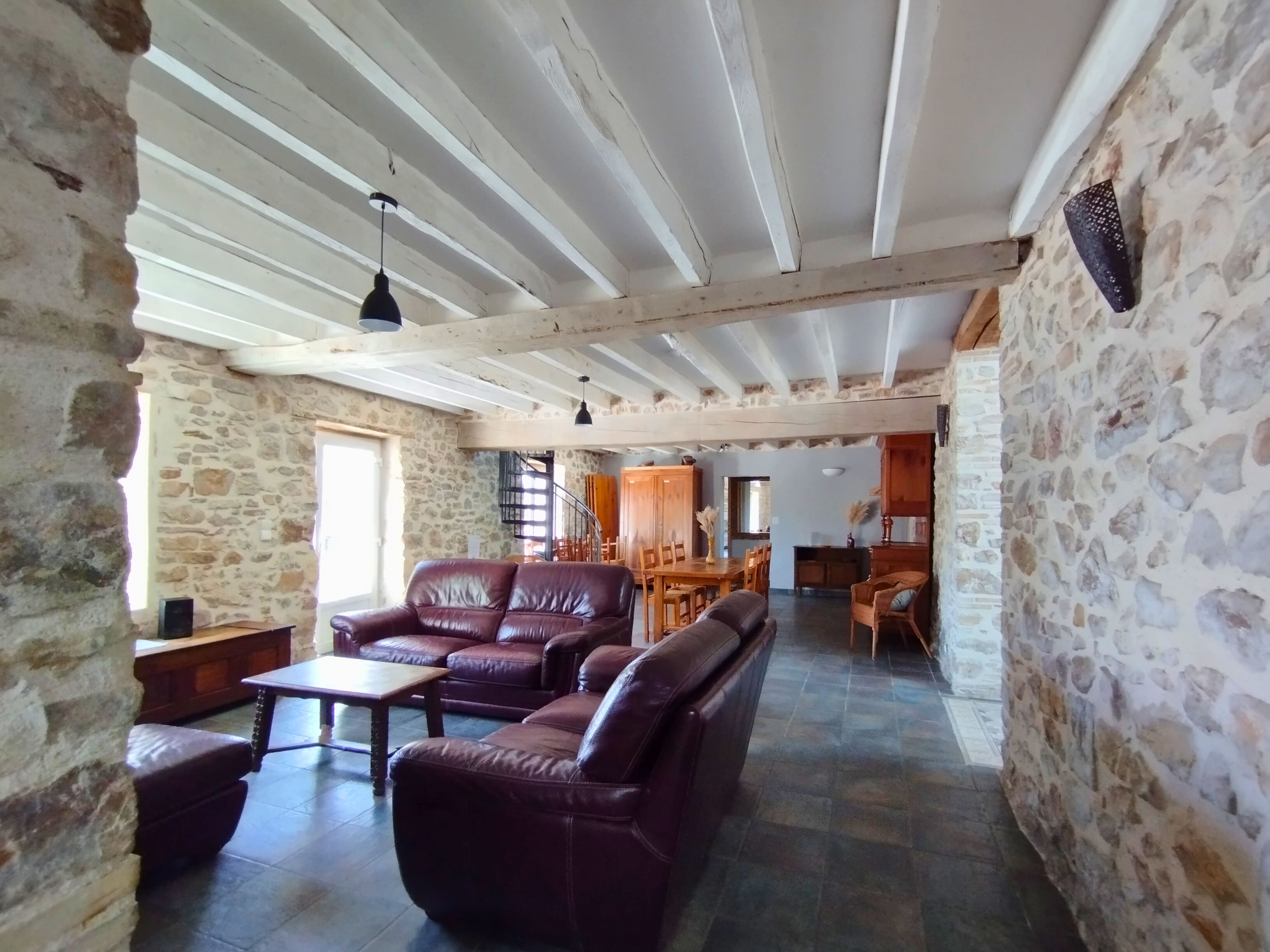 Le bâtiment abrite une grande salle en poutres et pierres apparentes (50 m²) ainsi qu’une grande cuisine (15 m²). La grande salle peut recevoir jusqu’à 20 personnes assises à tables (tables et chaises, la vaisselle simple fournie). Ce gîte comprend 2 salles d’eau et 2 WC. Sa cuisine est équipée d’ustensiles, plats et vaisselle pour 20 personnes. Un proche voisinage (150 mètres) nécessite une limitation du niveau sonore la nuit (une chaîne hifi adaptée est fournie gratuitement pour vos soirées).