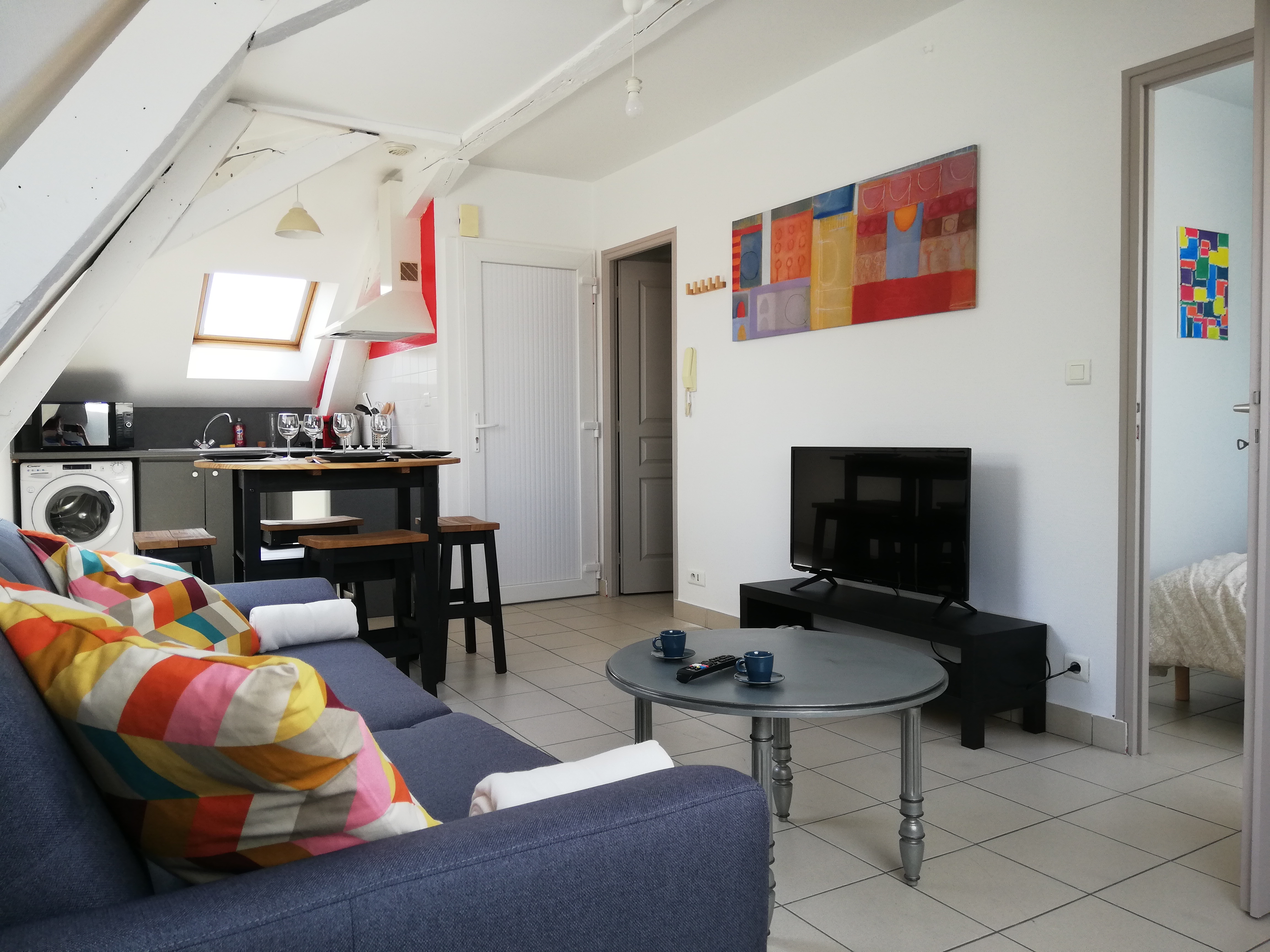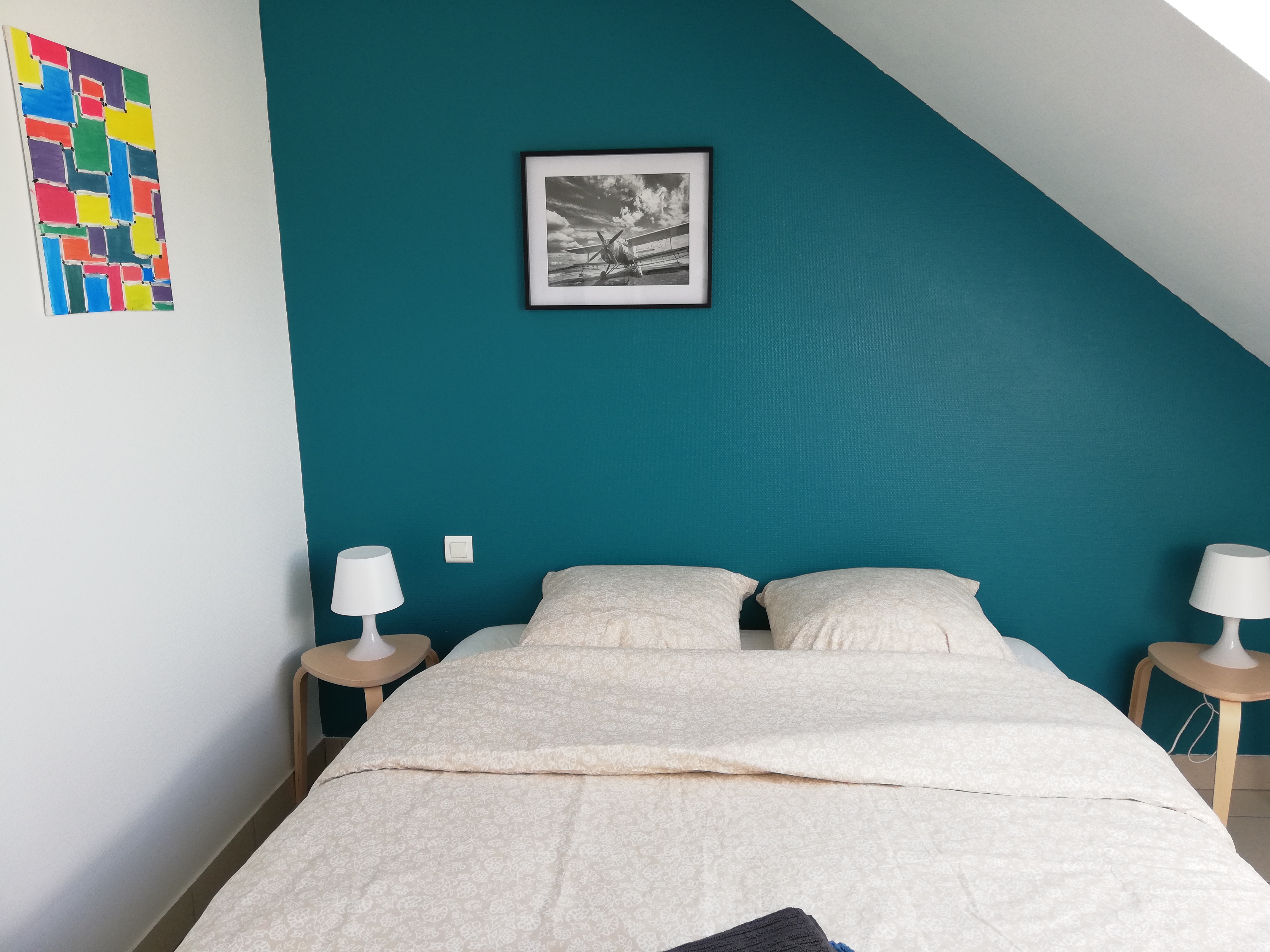 Notre logement au 2ème étage, lumineux et confortable, contient tout le confort pour vous recevoir dans de bonnes conditions. Le lit est un Queen size (largeur 160cm) tout neuf, le canapé-lit (neuf également) et une TV pour vos soirées détente. Linge compris.