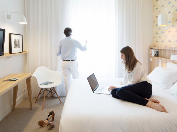 Si vous préférez ne pas bouger et rester tranquillement dans votre chambre d’amis, vous pourrez jouer ou travailler en vous connectant au WiFi très haut débit de l’hôtel grâce à la fibre Orange. Gratuit bien sûr et disponible dans toutes les chambres et aussi dans la salle petit-déjeuner.