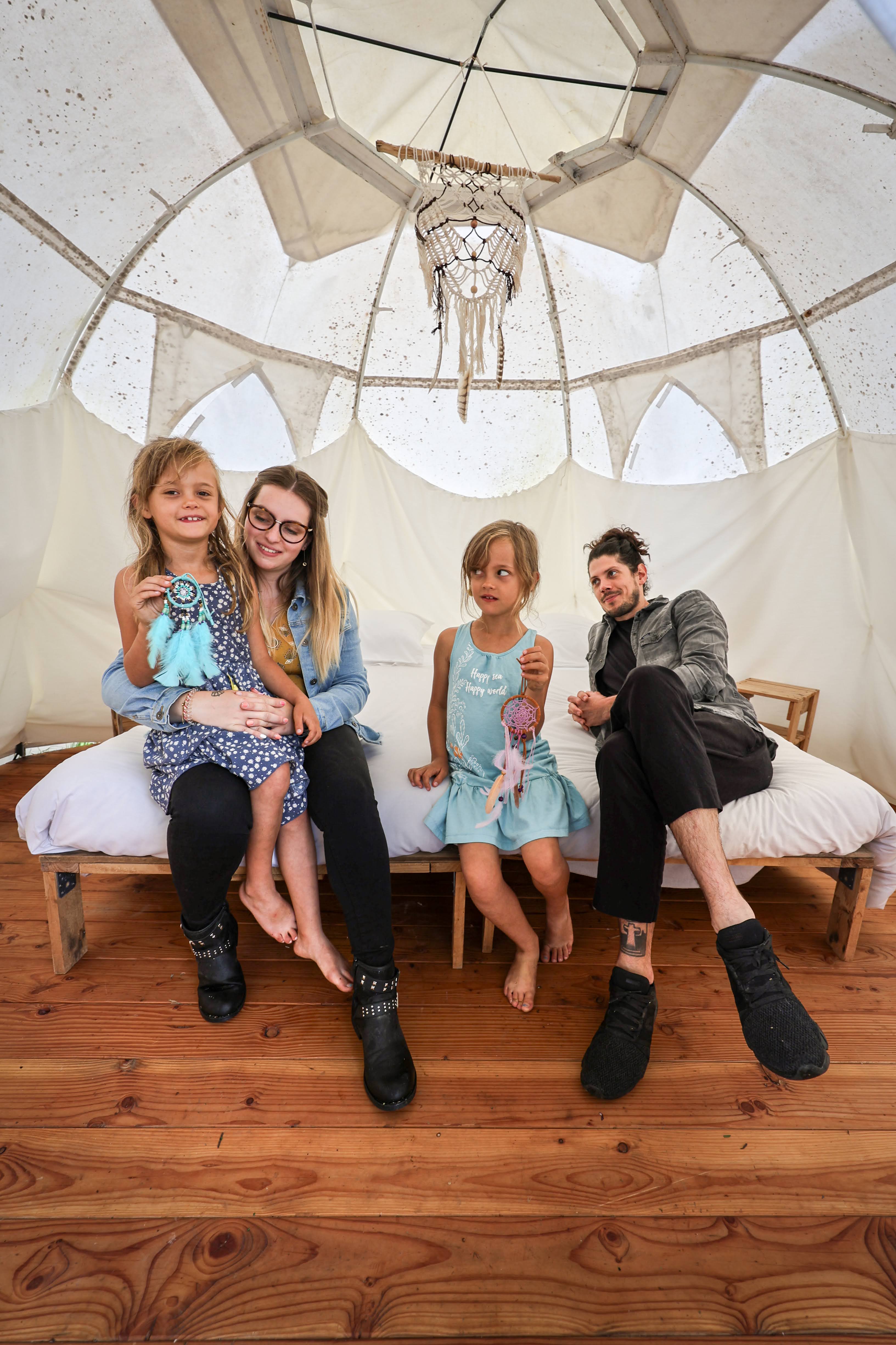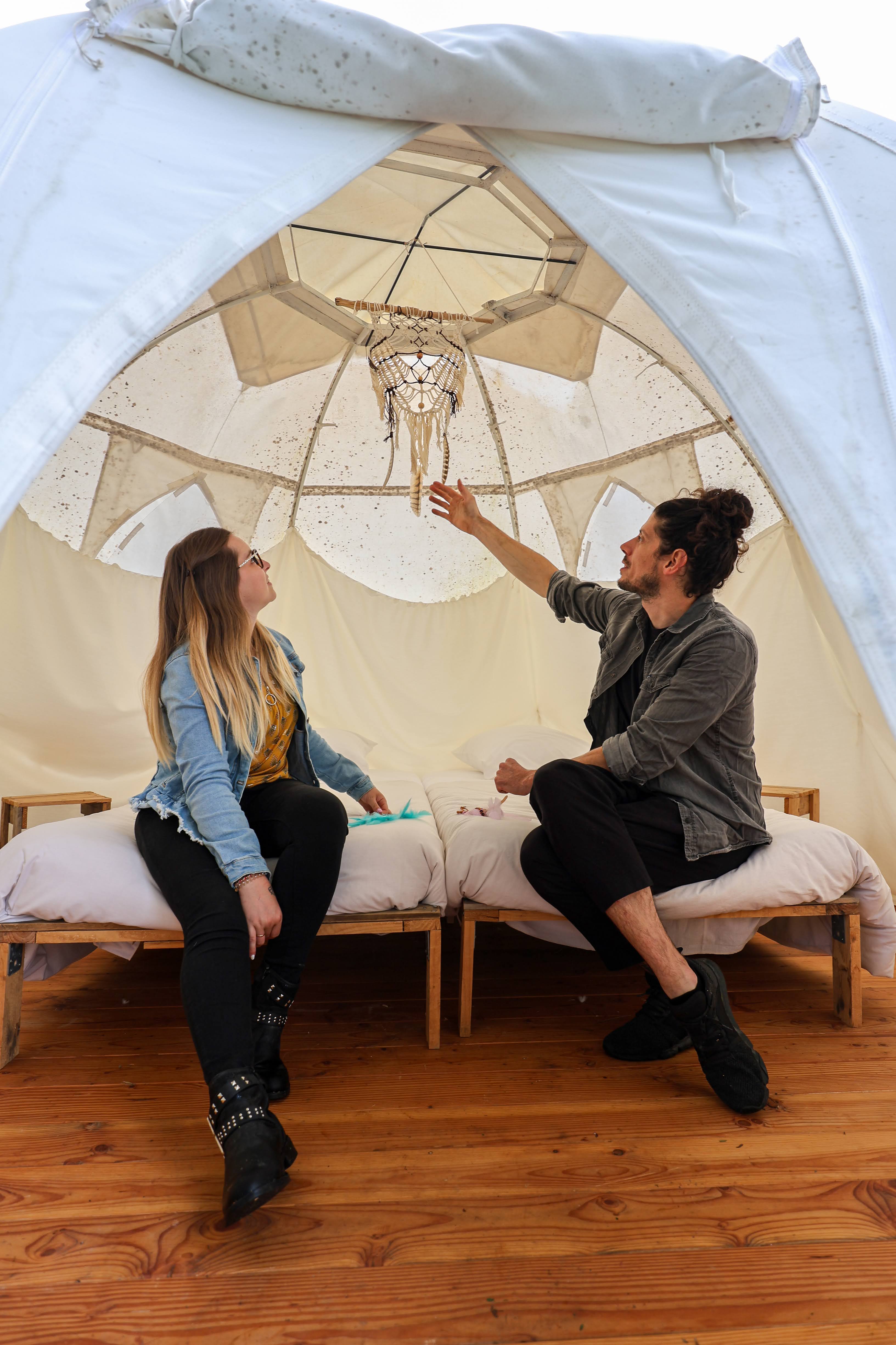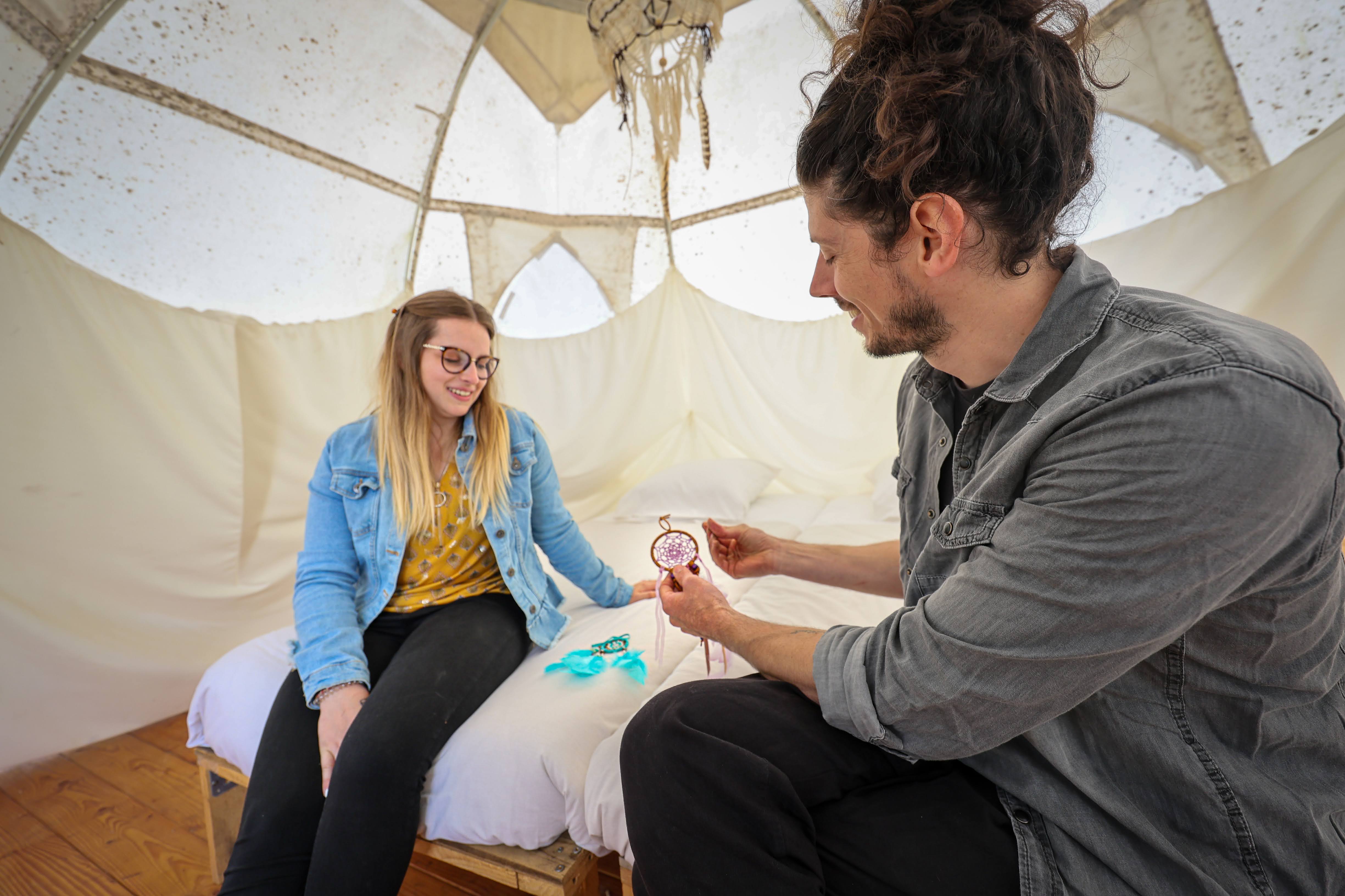 Installez vous dans une hutte amérindienne au milieu des champs, vous profiterez d’une superbe vue sur les monts mayennais lors du petit-déjeuner fait-maison !