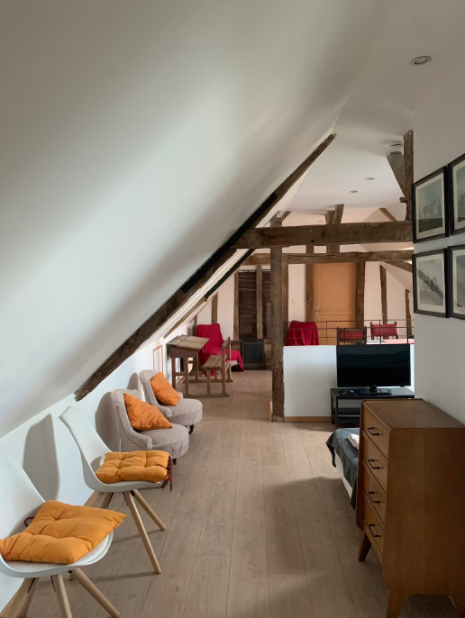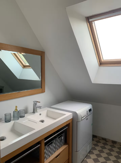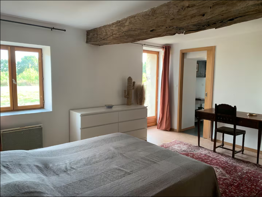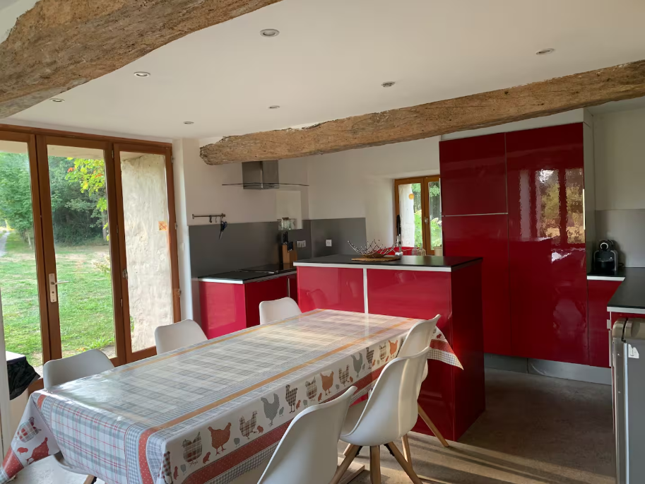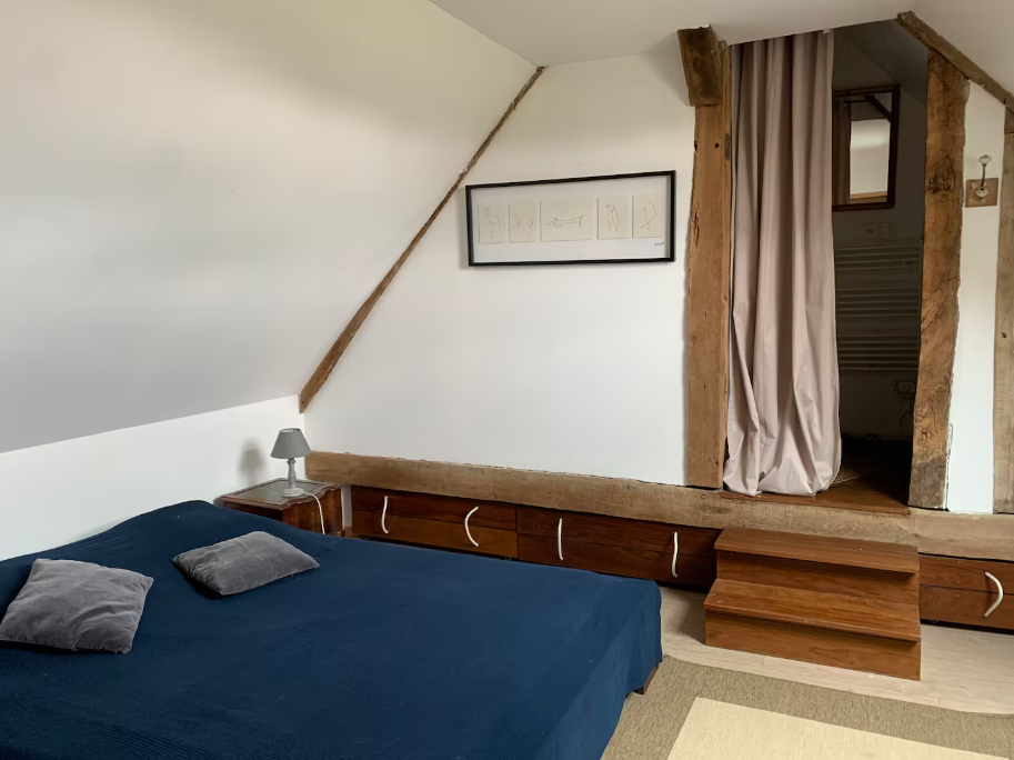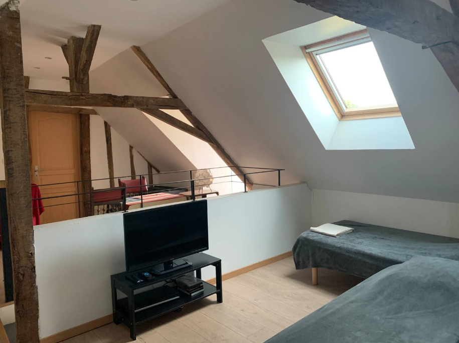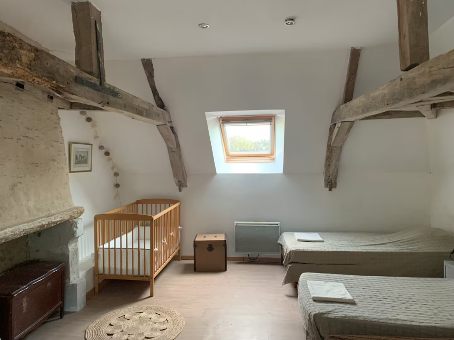 Ancienne longère nouvellement réhabilitée, indépendante des propriétaires, située en pleine nature dans un parc boisé de 10 hectares. Au RDC : une grande cuisine toute équipée, un grand salon-séjour avec cheminée, une chambre pour deux personnes accessible aux personnes à mobilité réduite avec un lit double de 160 et une salle d’eau privative (douche à l’italienne et WC adaptés) – A l’étage : une mezzanine en guise d’espace détente avec deux lits de 80, une chambre pour deux personnes avec un lit double de 160, une salle d’eau et des WC privatifs, une chambre pour trois personnes avec lits simples de 90. Une salle d’eau et des WC séparés en plus dans le couloir.