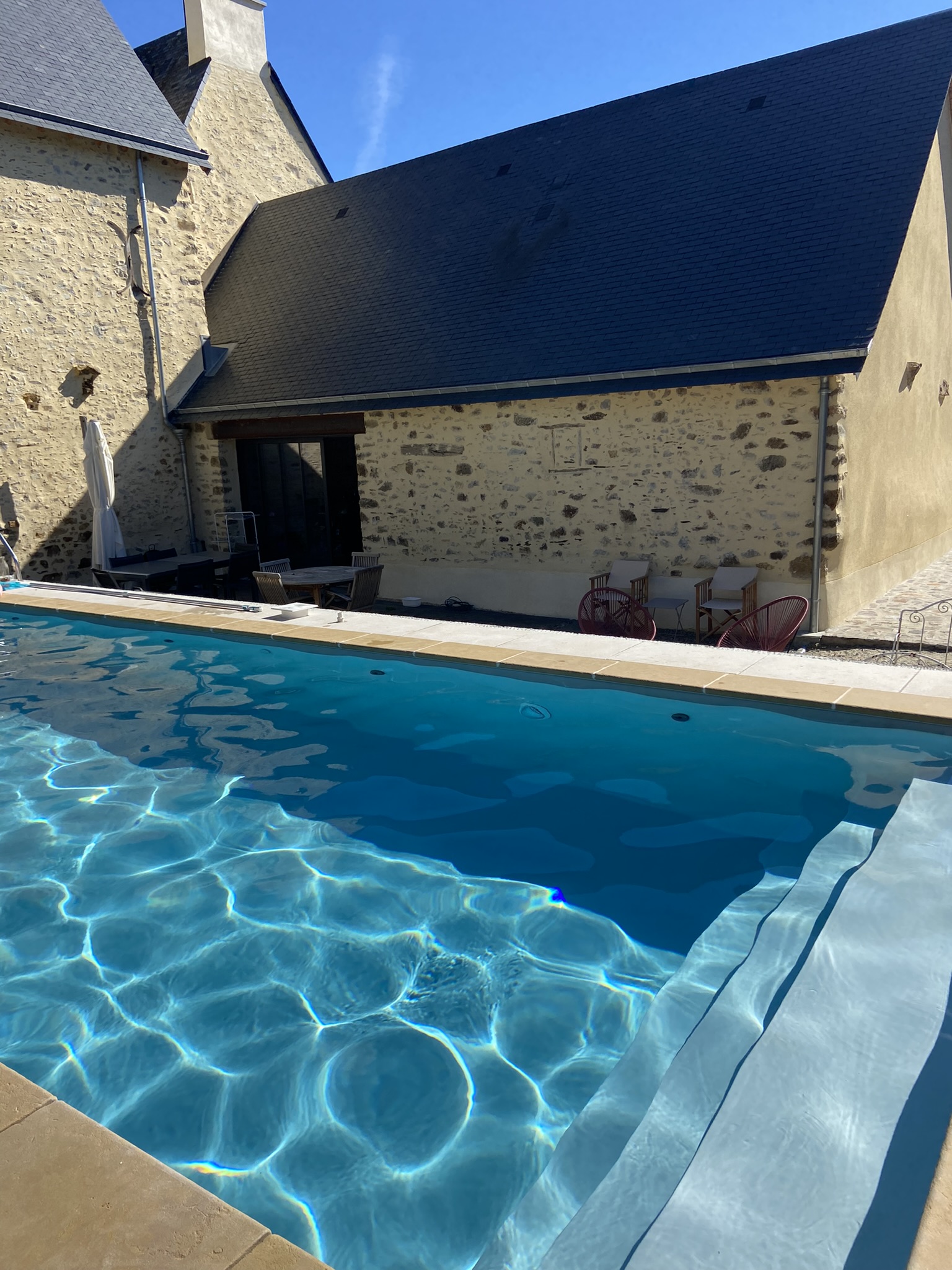 Vous pourrez, selon les saisons, flâner le long de la vallée du Vicoin, bronzer au bord de la piscine, ou vous détendre dans le grand salon devant une bonne flambée.