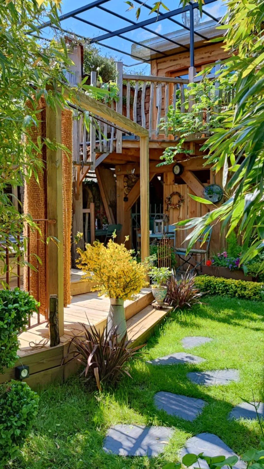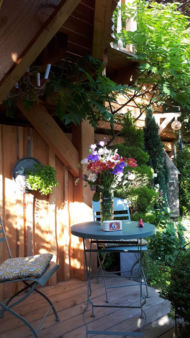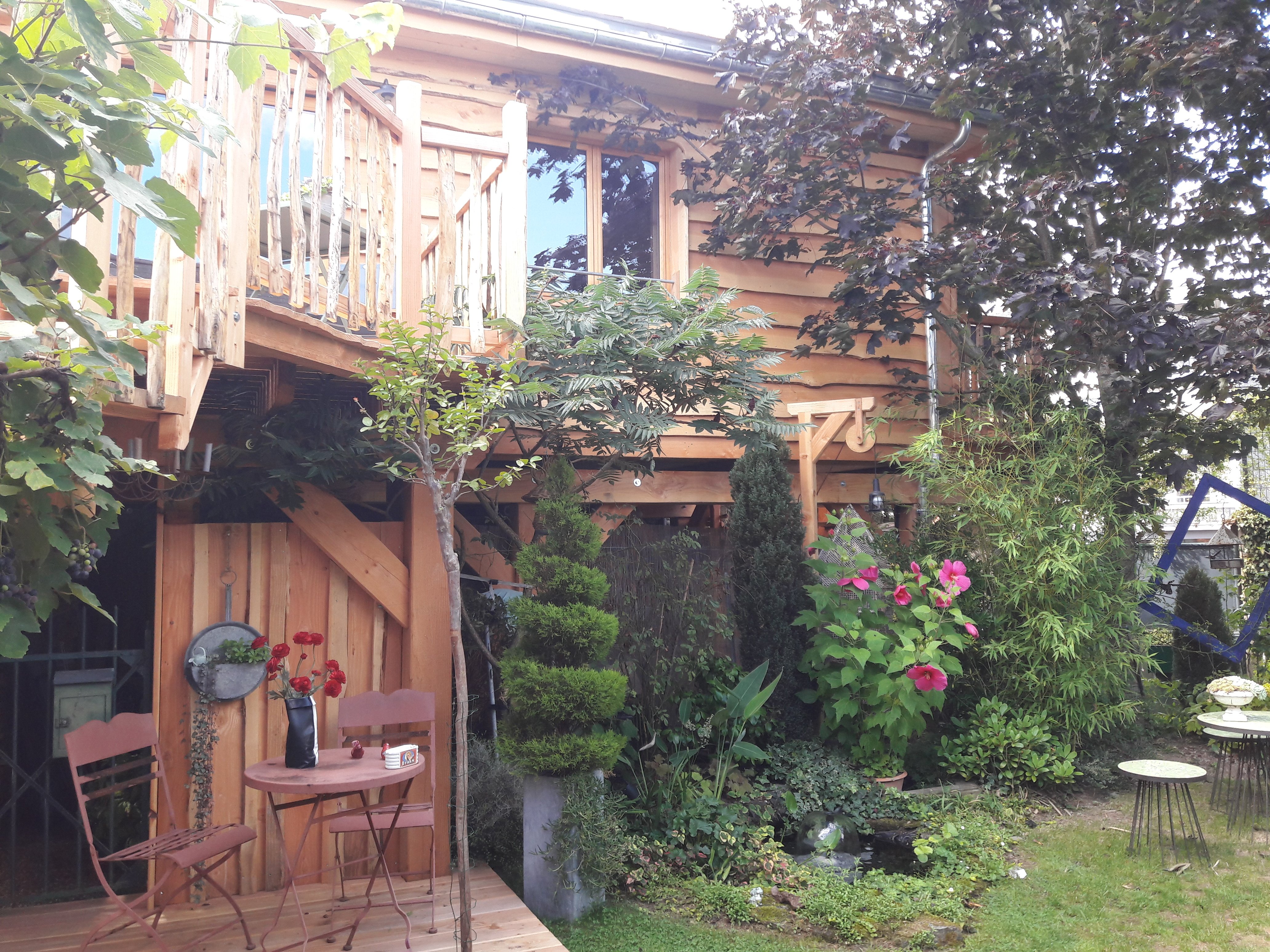 Olivier et Denis vous invitent à séjourner dans leur cabane perchée au fond du jardin fleuri.