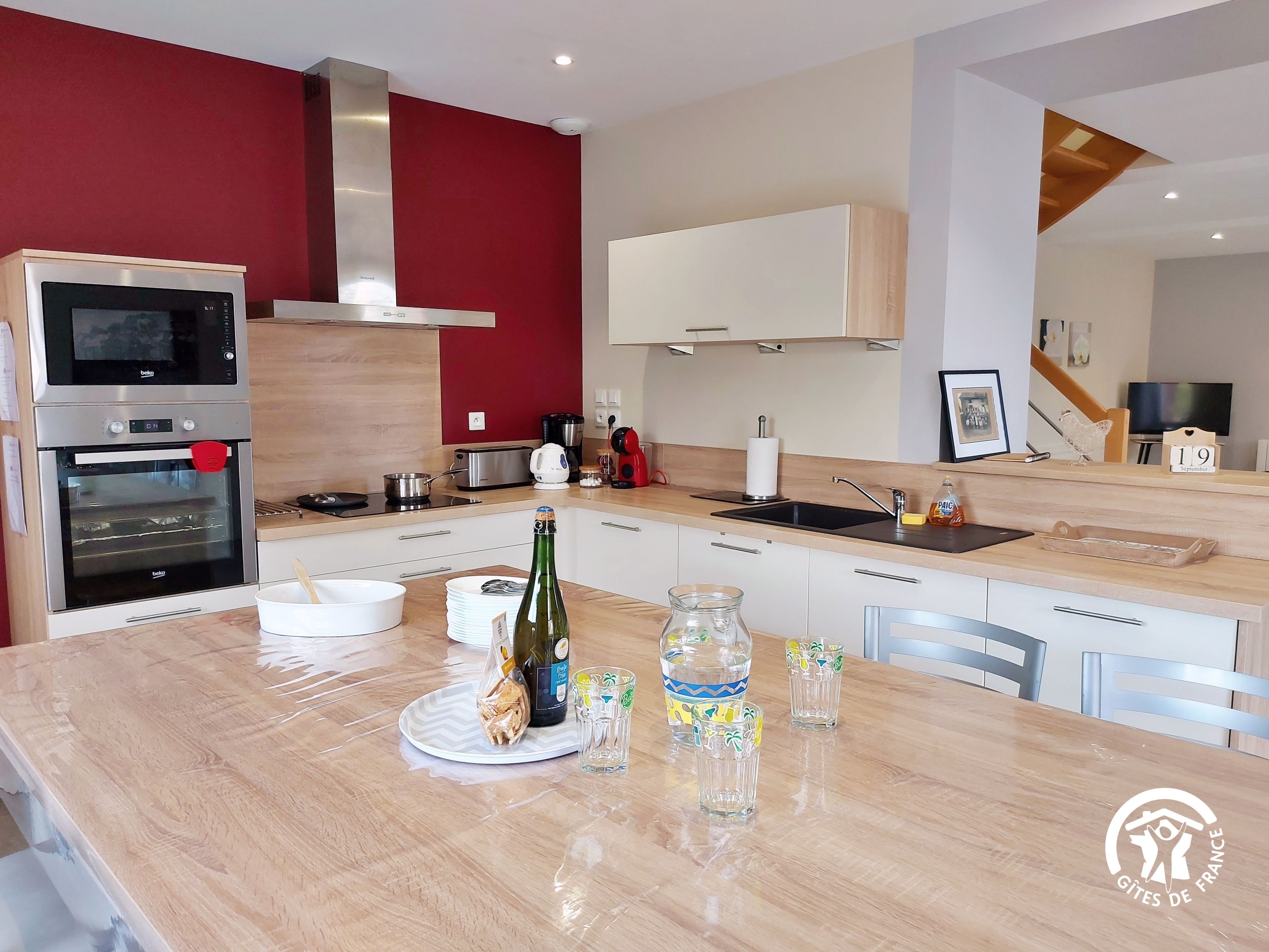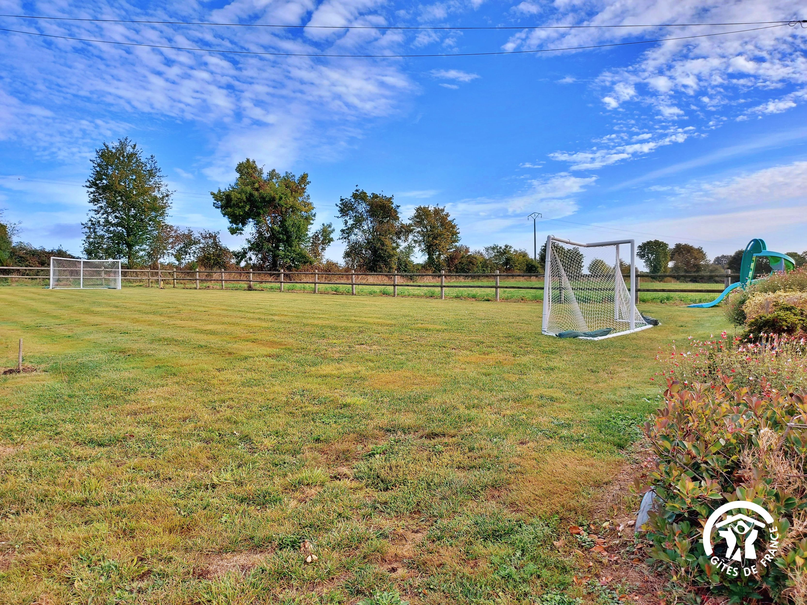 Ce grand gîte est lumineux : le séjour ouvre sur les terrasses, la cuisine est très bien équipée, une chambre, une salle d’eau et un wc en rez-de-chaussée, les 3 autres chambres sont à l’étage avec une 2e salle d’eau un 1 wc indépendant. Le terrain est aménagée avec une vaste partie en herbe avec 2 buts de foot, 1 petit toboggan, une autre partie avec un terrain de pétanque, nombreux jeux extérieurs (palets, raquettes…). Et abrité dans une grange, une table de ping-pong. Le petit plus : les chèvres dans leur enclos, et les canard auprès de leur mare. Un plaisir de les observer et de leur parler !