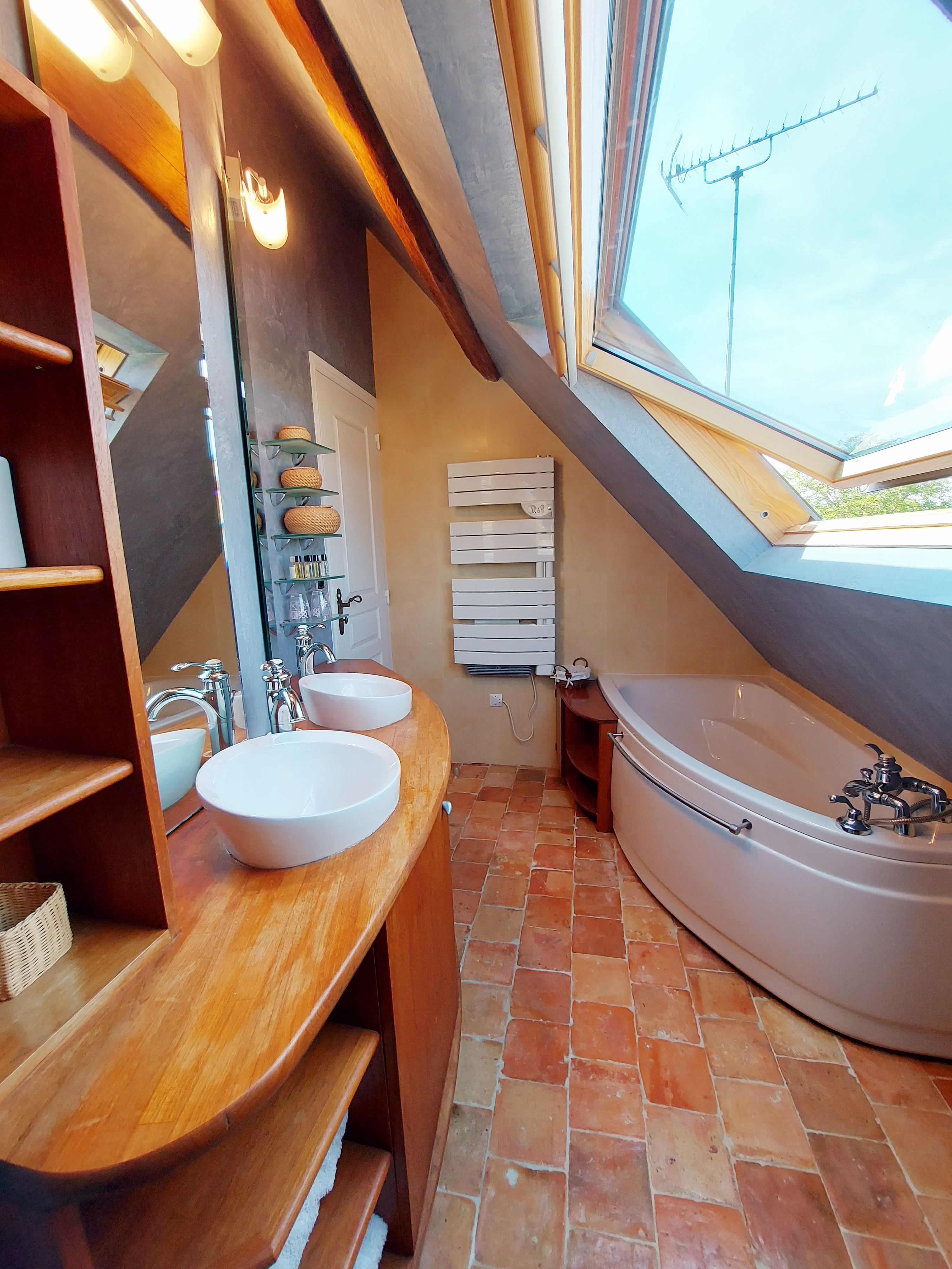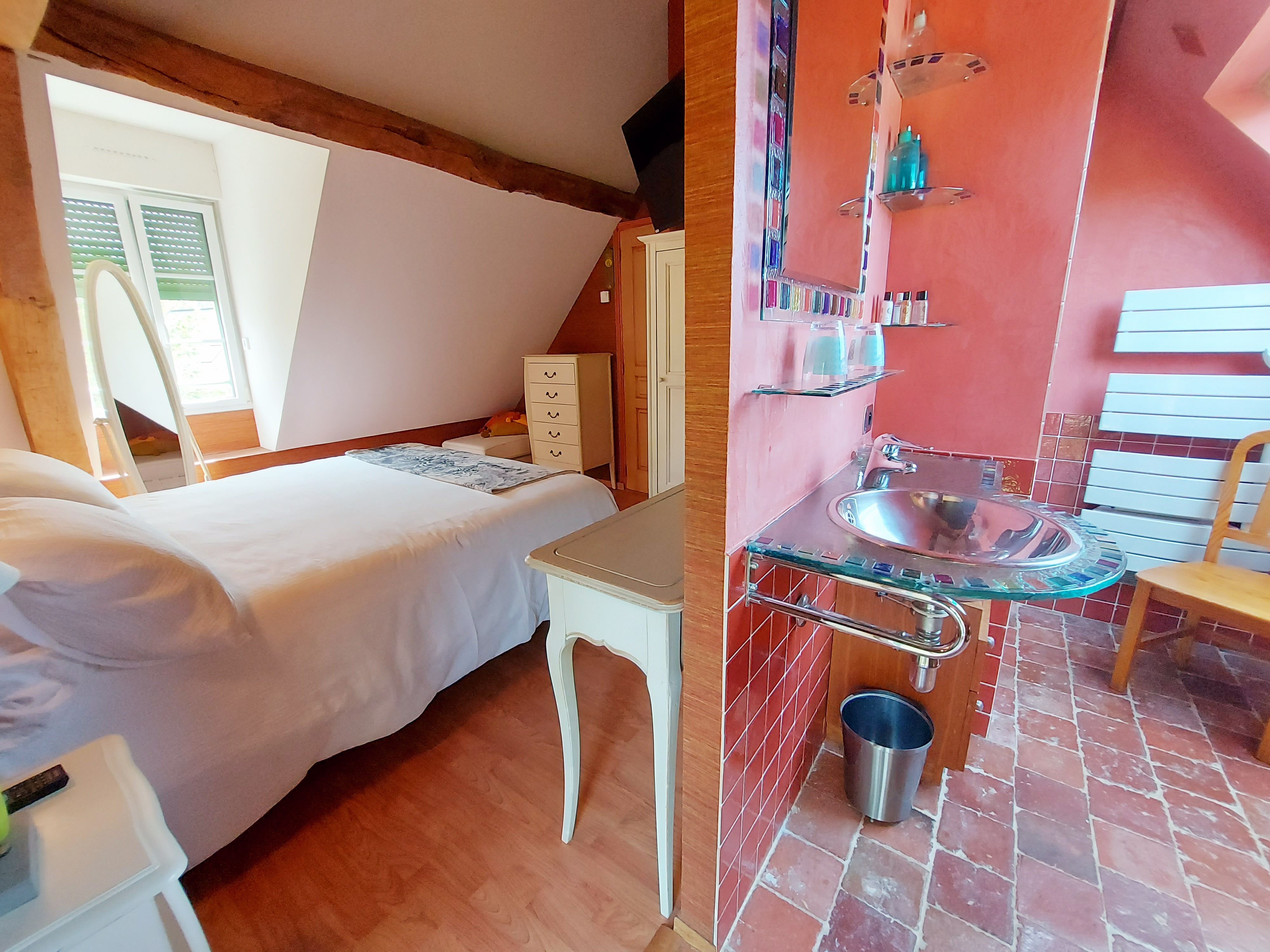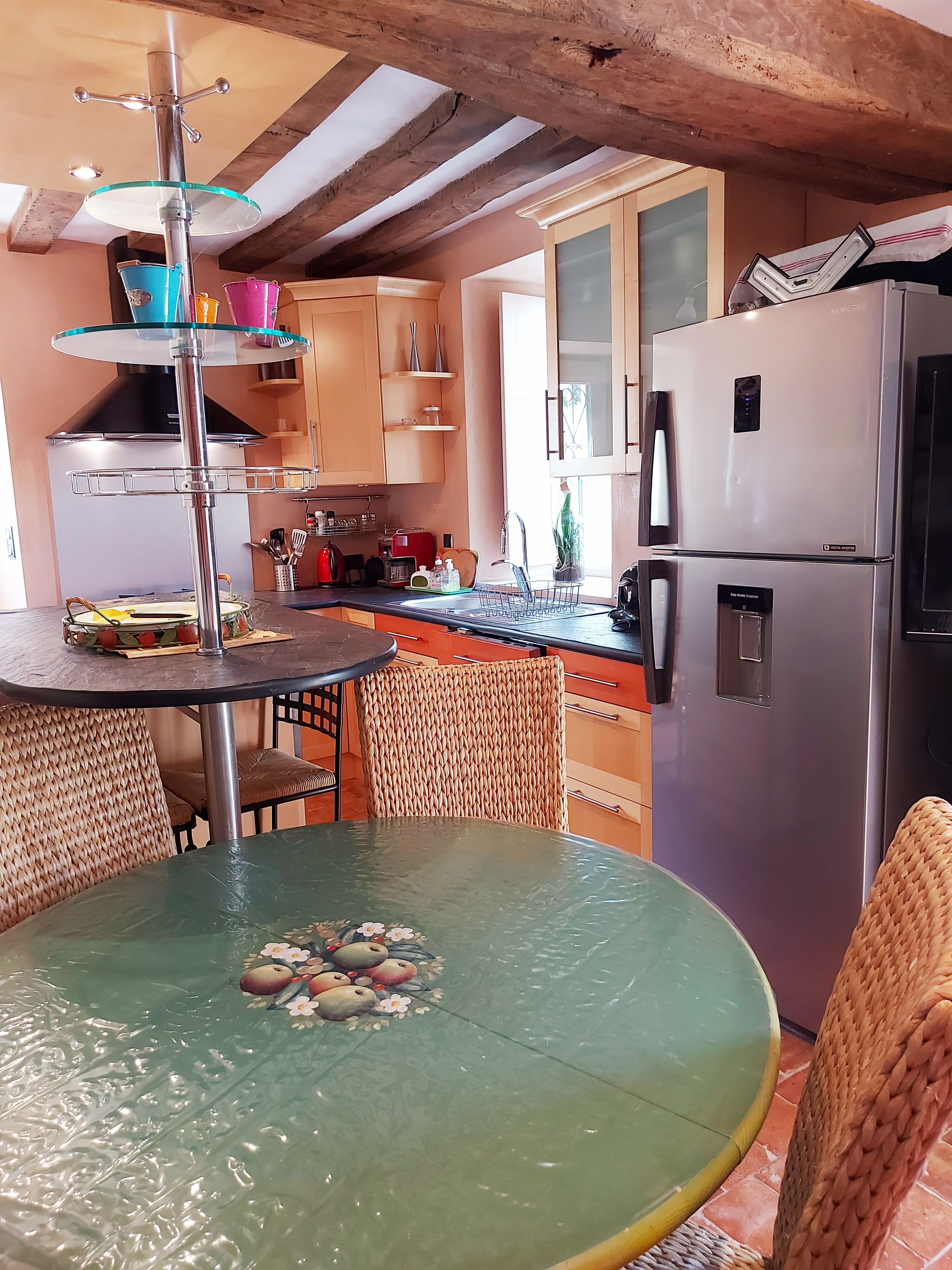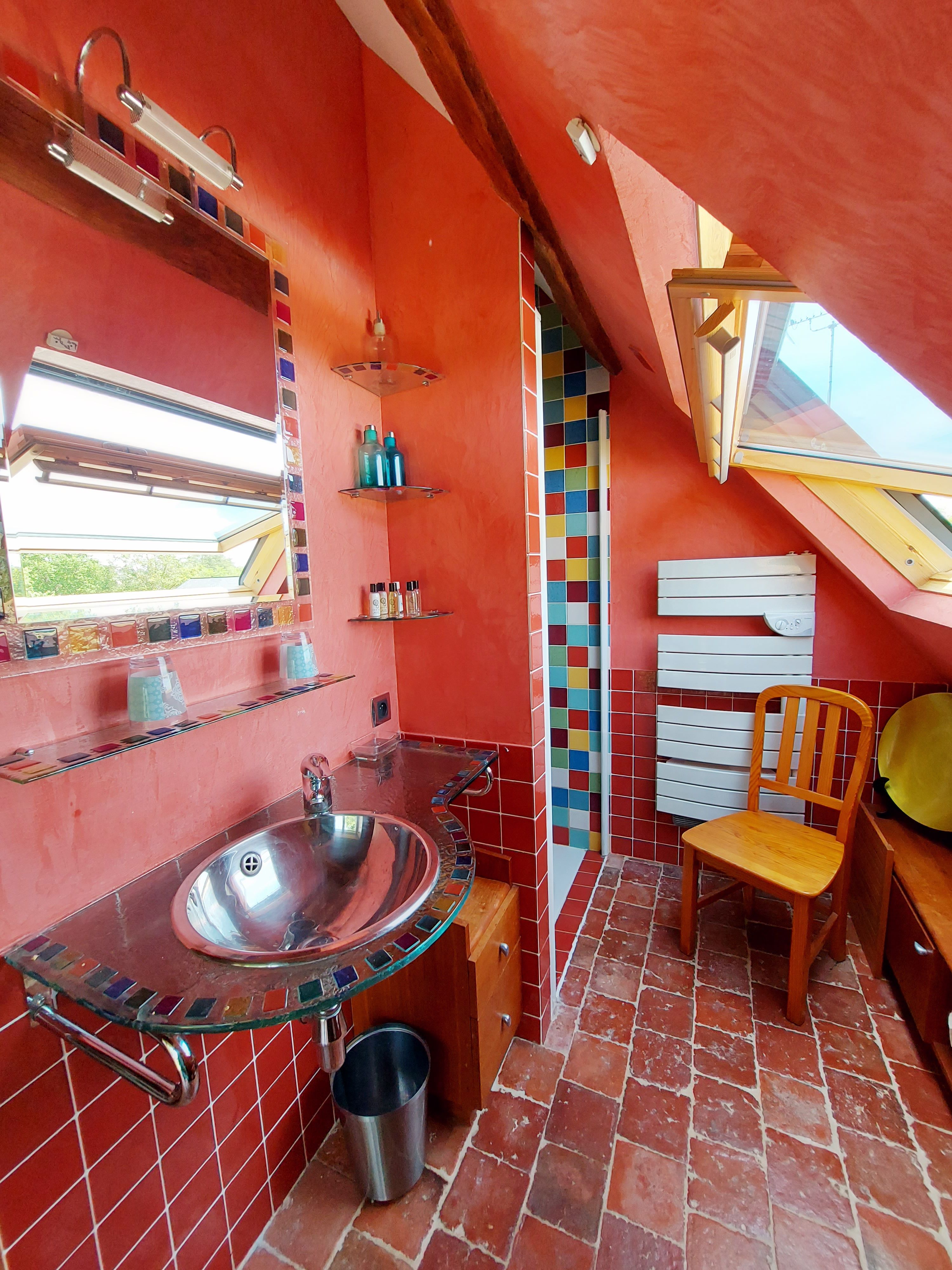 2 maisons communicantes comprenant chacune sa cuisine équipée, ses chambres, salles d’eau et wc. Vous vivrez ensemble tout en bénéficiant d’espace privatifs. Au total, c’est 5 chambres, 3 salles d’eau avec douche, 1 salle de bain et 4 wc, pour 9 à 12 personnes (clic-clac pour 2 personnes et 1 lit pliant pour 1 personne). La décoration est truffée d’objets déco singuliers, des ambiances variées avec un souhait constant de confort.