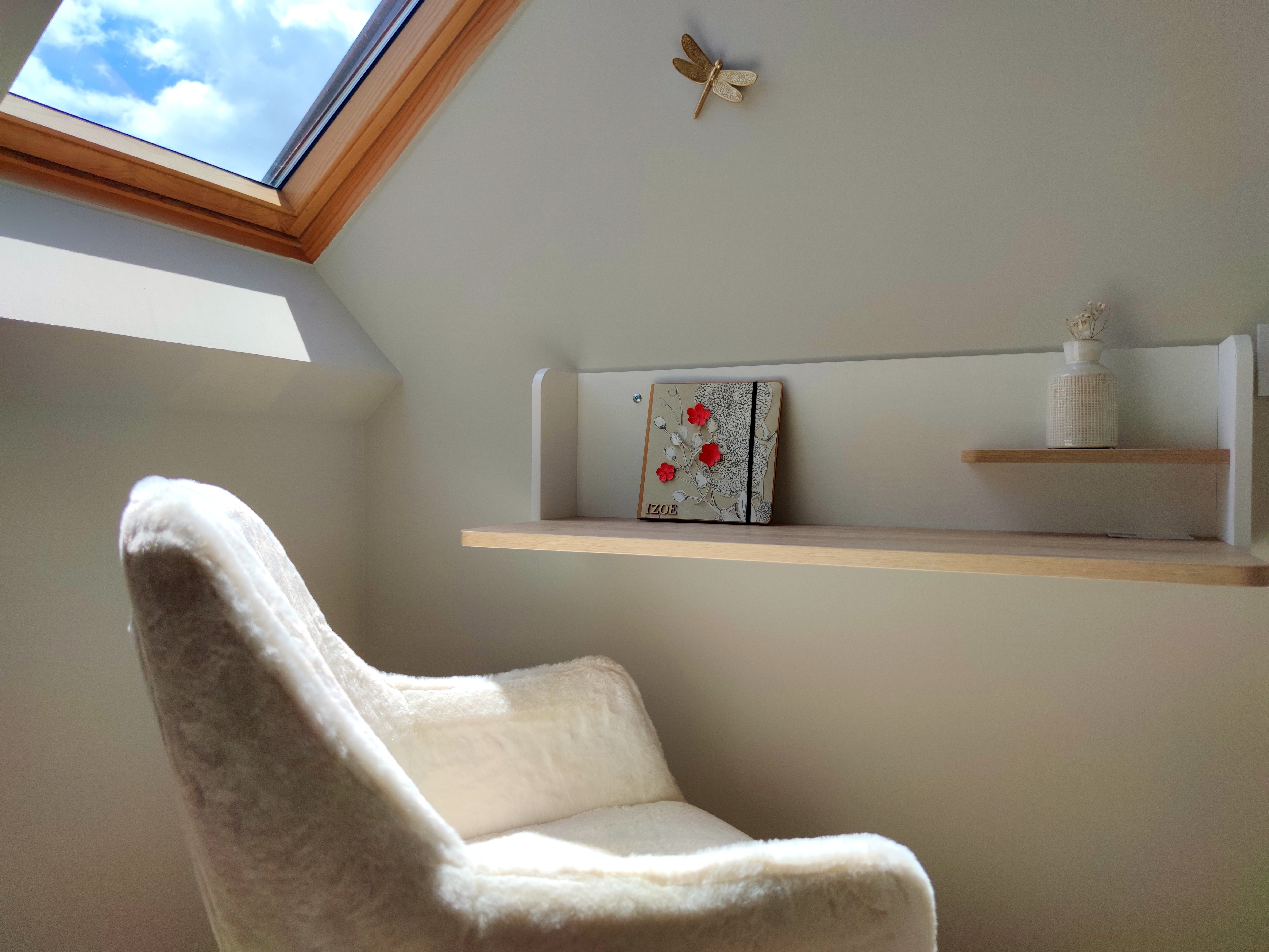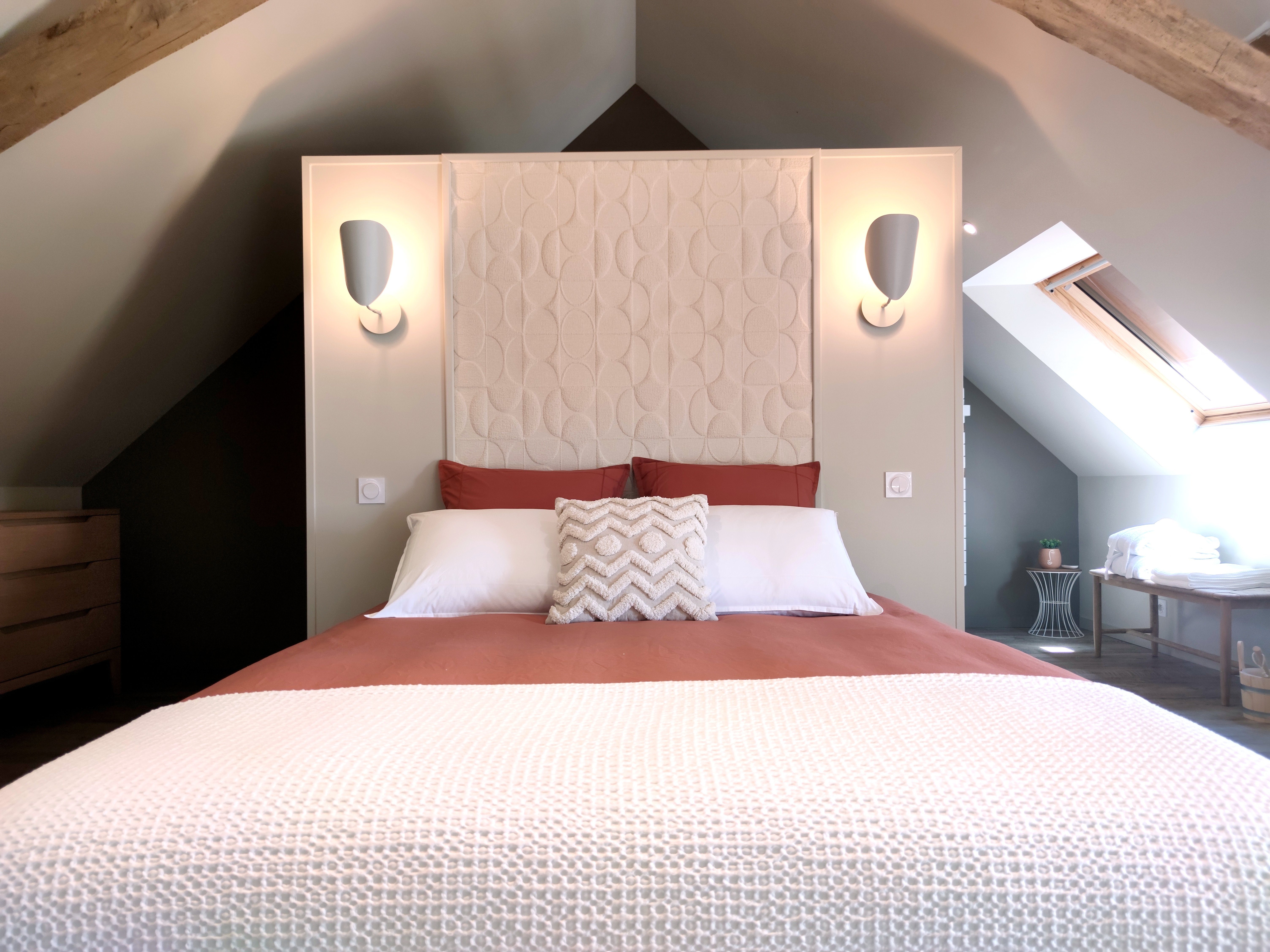 La suite Izoë dans un esprit bohème chic, aux teintes naturelles, avec ses poutres apparentes est un véritable écrin de douceur. La décoration y est soignée et raffinée.