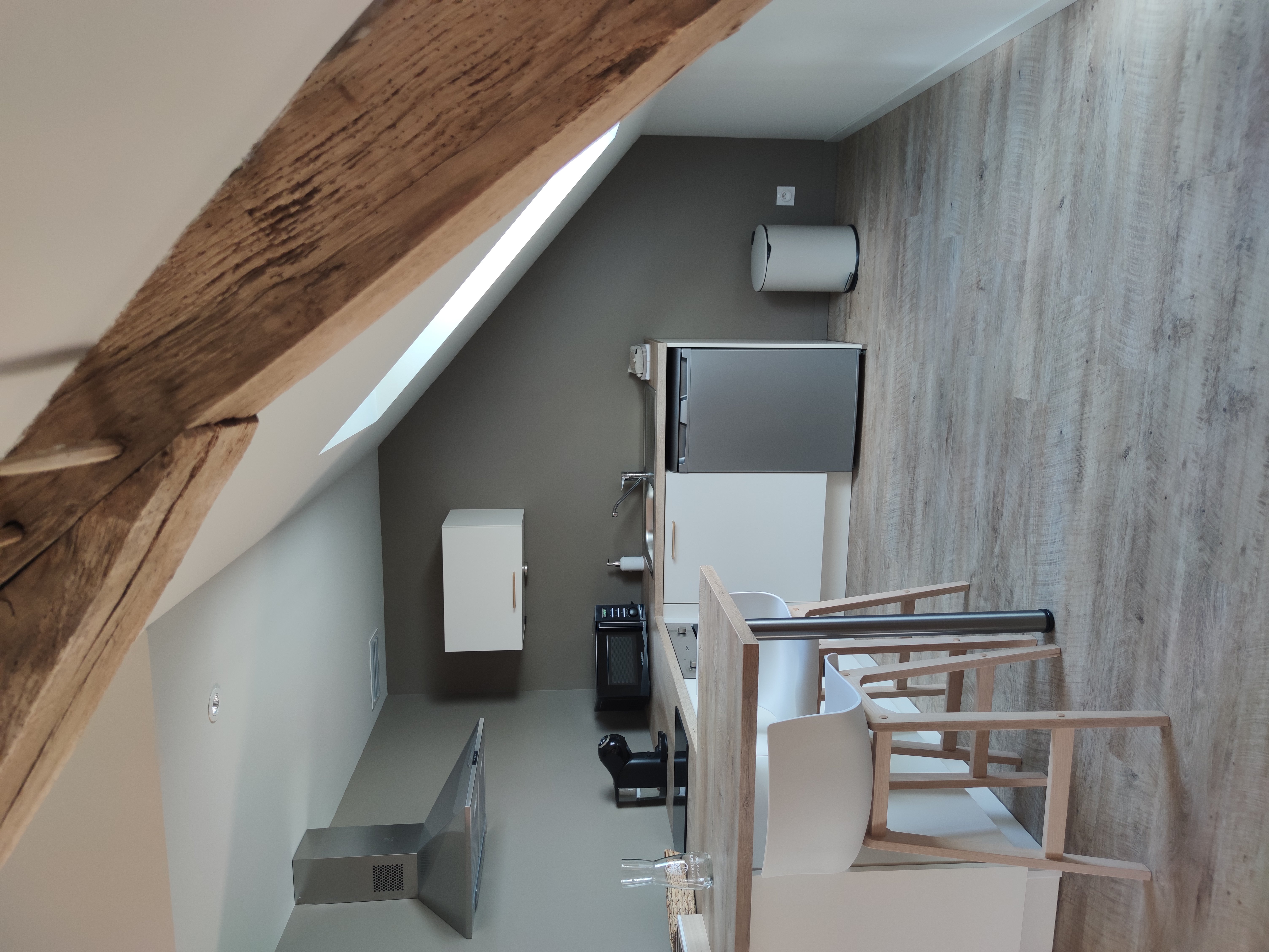 Côté cuisine, elle est aménagée et équipée avec tout le nécessaire pour cuisiner si vous le souhaitez. L’équipement est le suivant : four, four micro-ondes, plaques induction, hotte, réfrigérateur, bouilloire, cafetière à dosettes, plateau de courtoisie avec sachets de thé et dosettes café et chocolat.