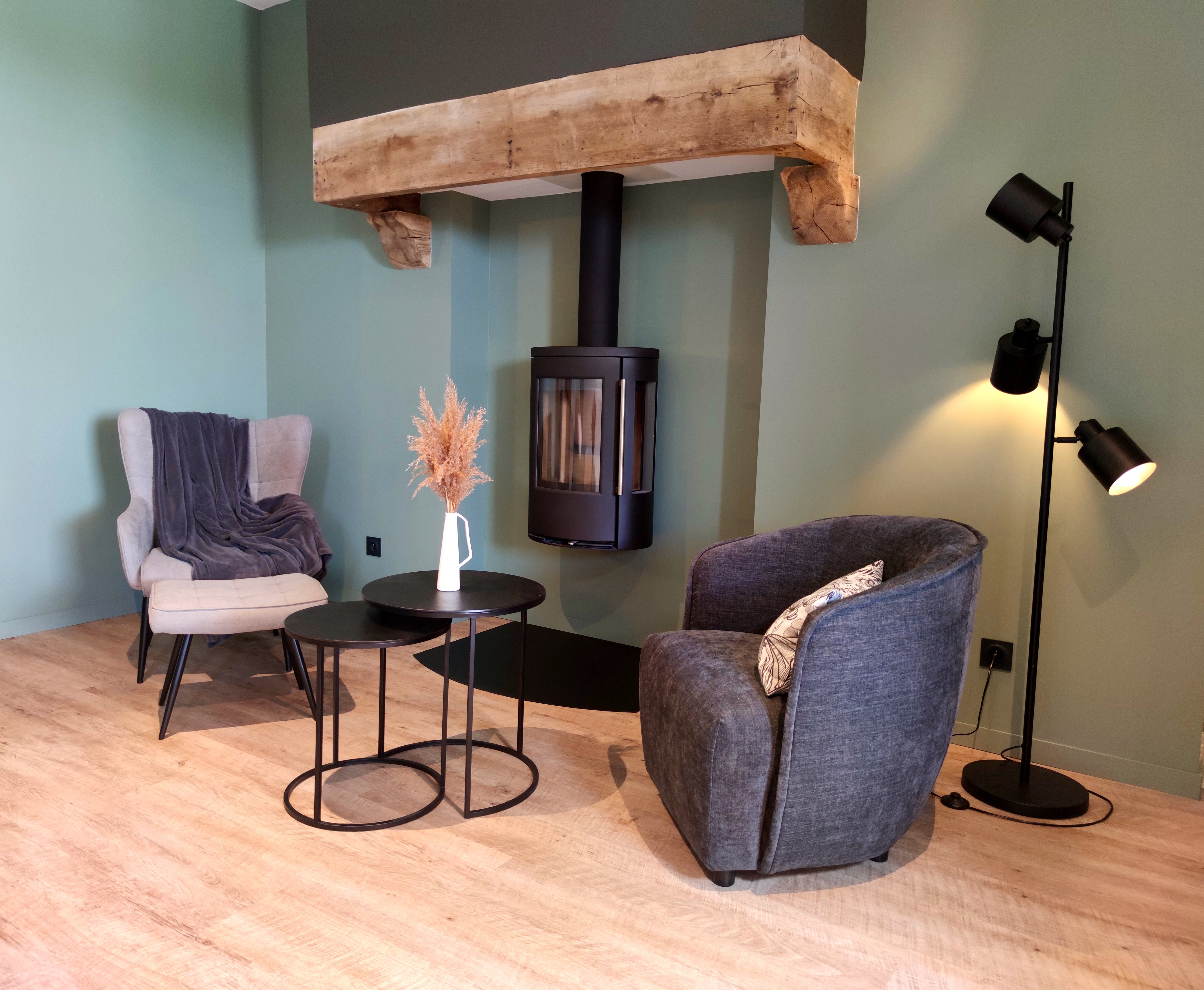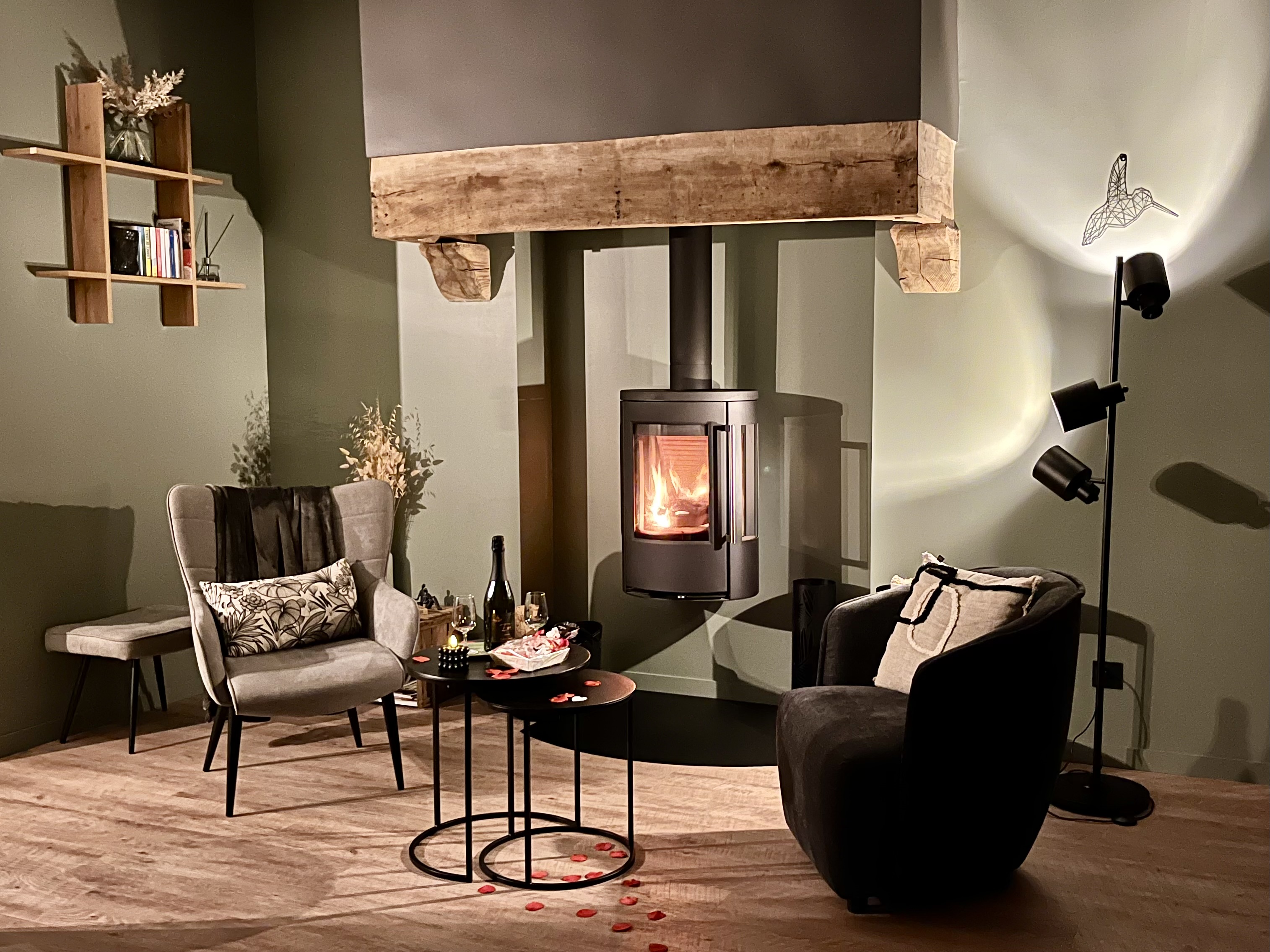 Côté salon, le poêle à bois vous offrira d’agréables soirées devant la flambée.