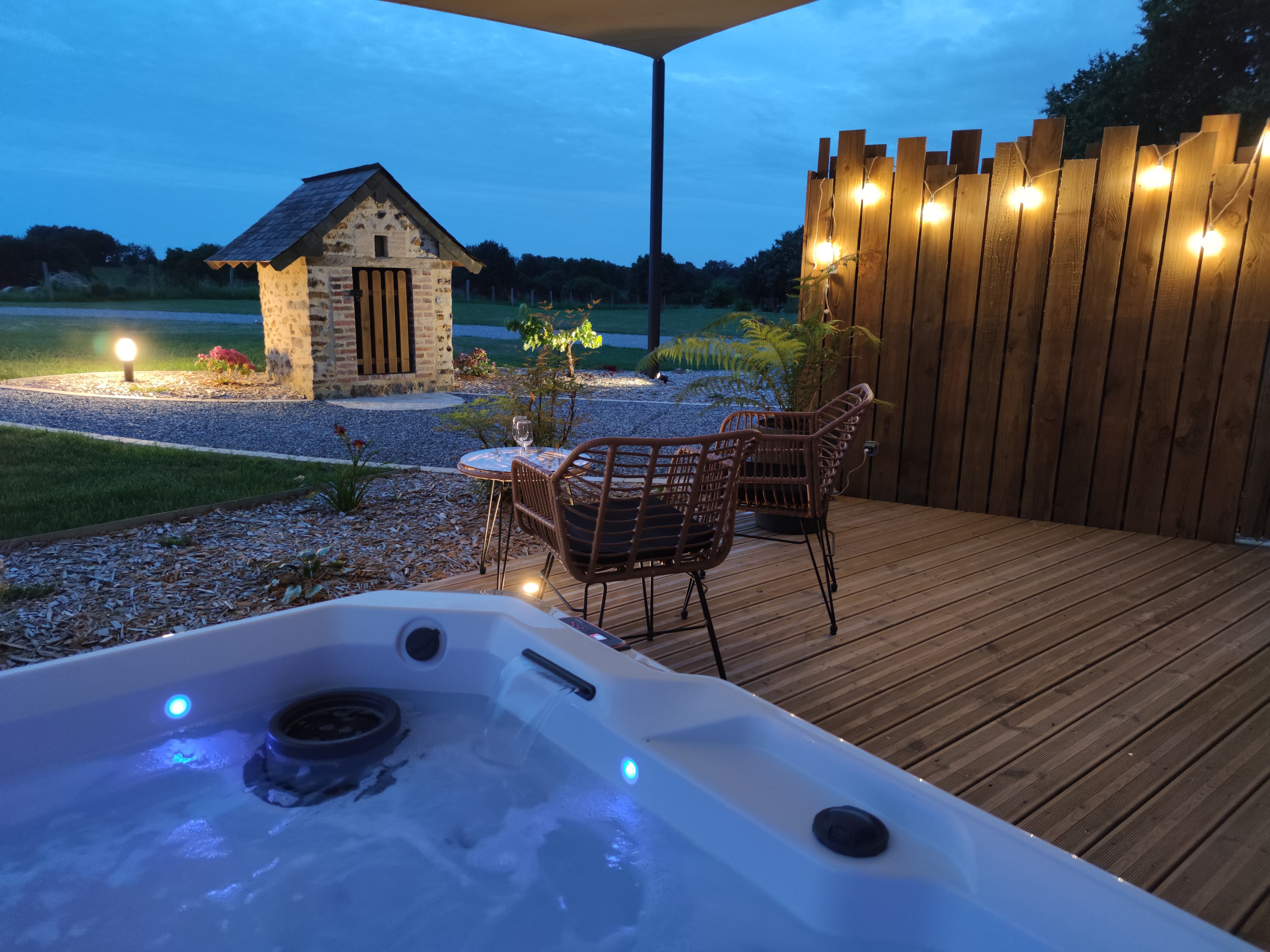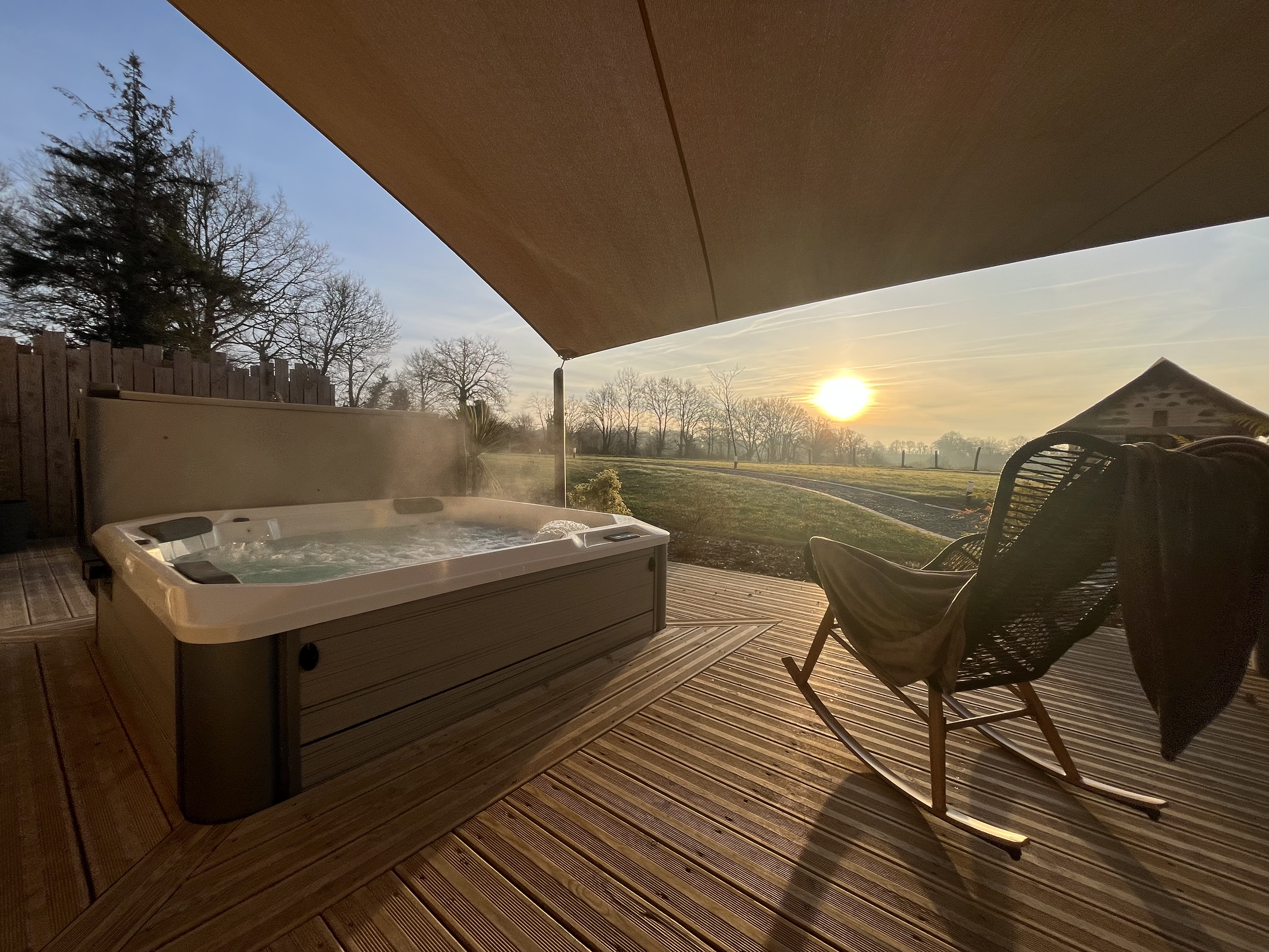 Sur la grande terrasse arborée, avec le Spa privatif, relaxez-vous et vivez un moment de décontraction, sous la voile d’ombrage, en toutes saisons.