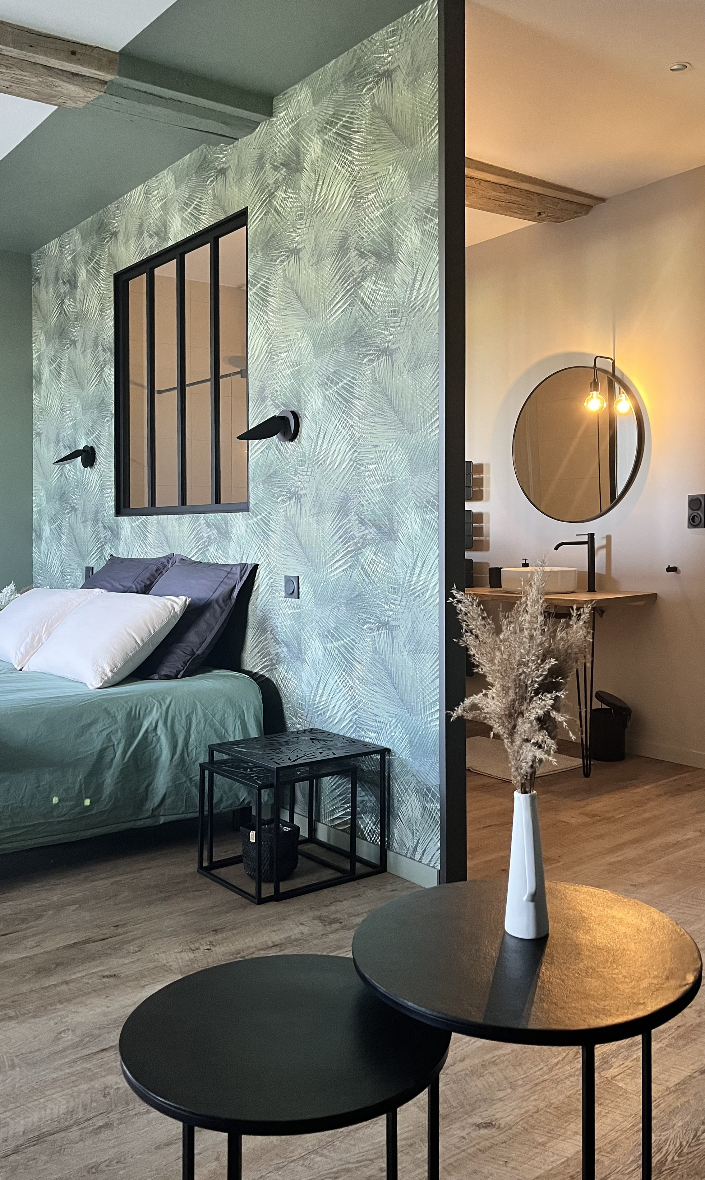La suite Manaë (env 45 m2) est de plain-pied et est donc accessible aux personnes à mobilité réduite.