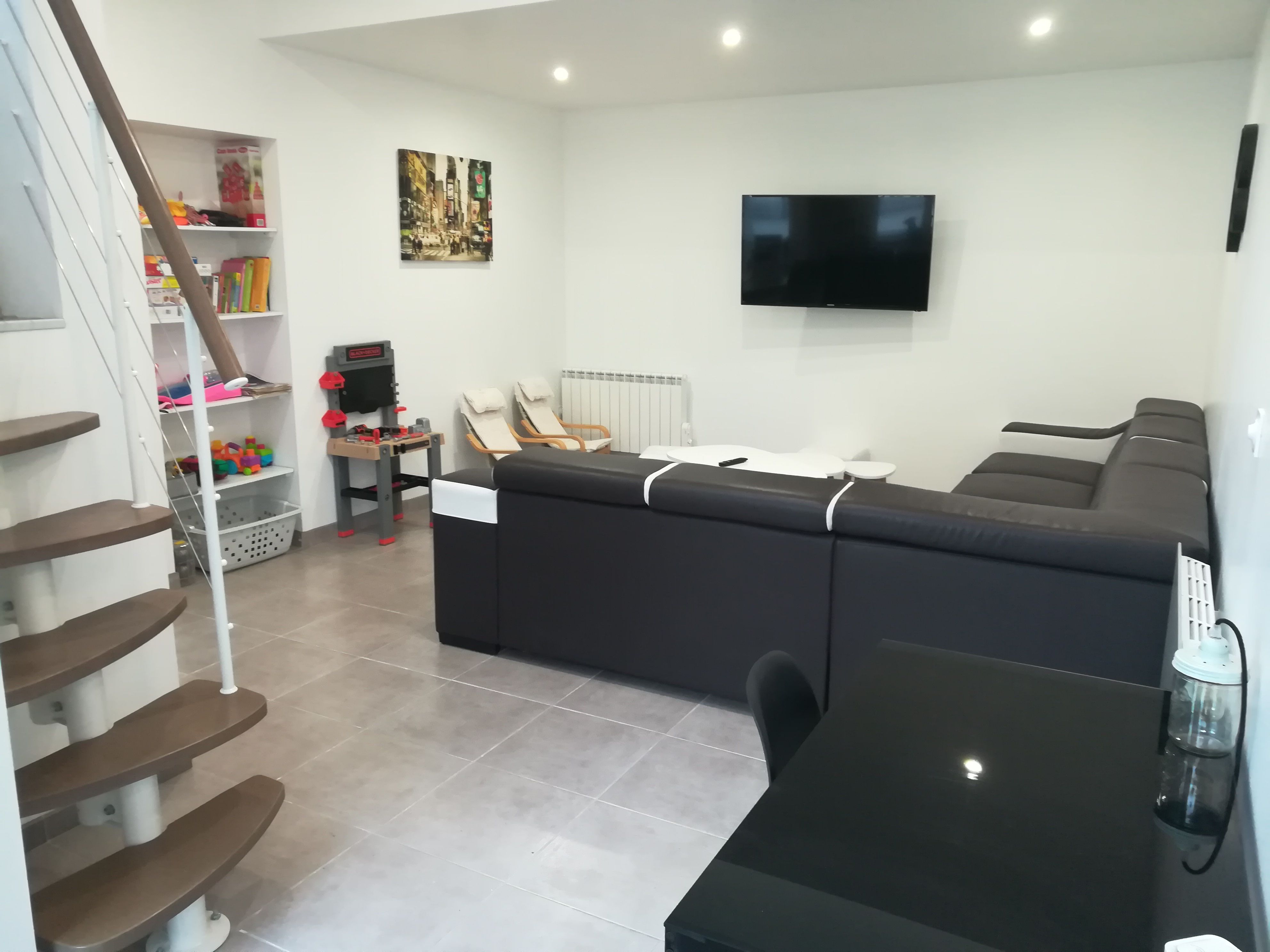 Le confort ne manque pas au salon -TV très grand écran, grand canapé, comme dans les chambres.