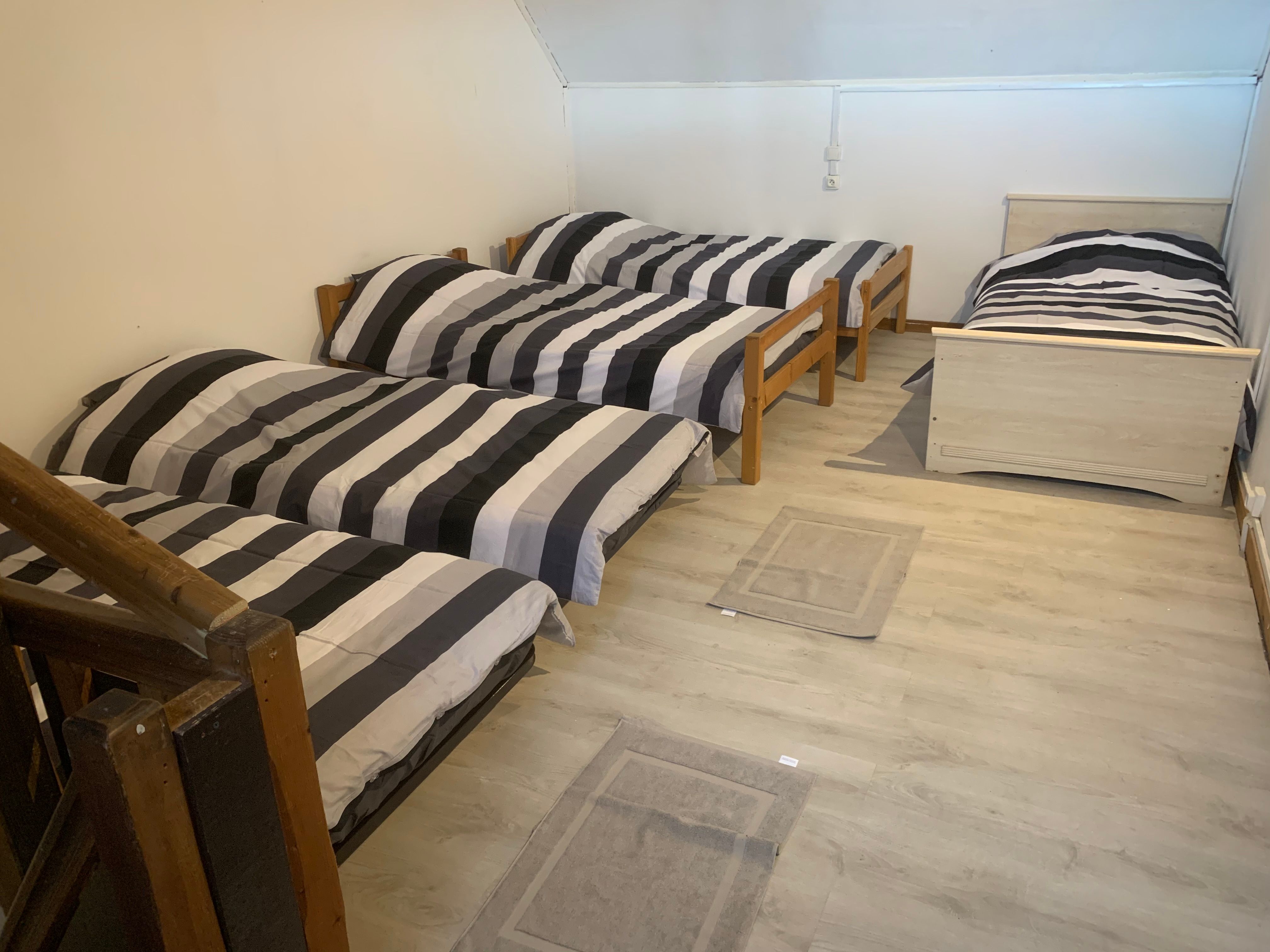 Maison indépendante dans un cadre arboré à proximité de la forêt de la Charnie. A 5 minutes de l’autoroute et à 40 minutes du Mans et de Laval. Cuisine toute équipée, une salle à manger avec cheminée. 3 chambres + 1 mezzanine: 1 ch avec 1 lit 140, 1 ch avec 1 lit 140 et…