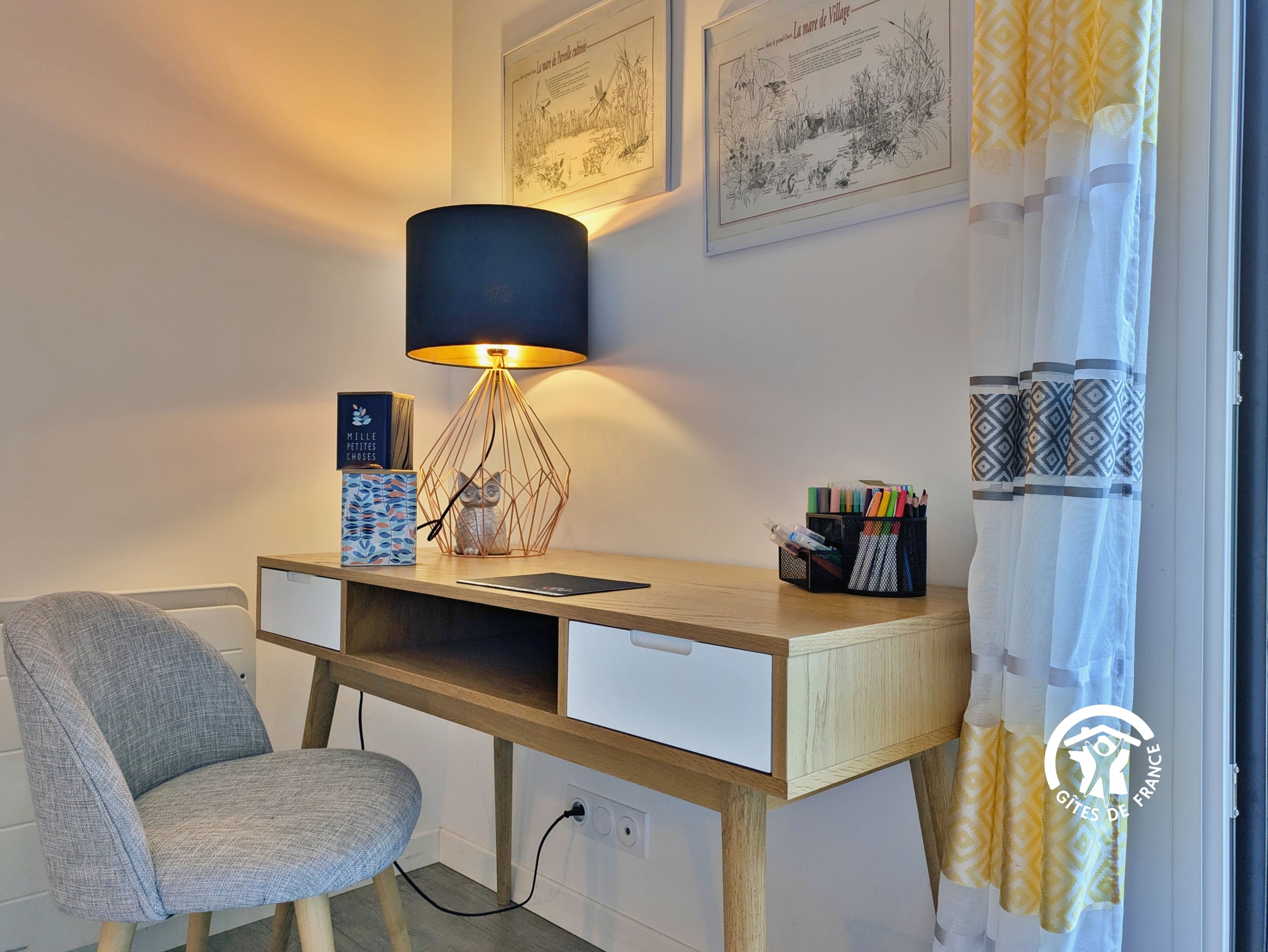 Durant la belle saison (de juin à septembre inclus), vous pourrez profiter du SPA. À l’extérieur, vous trouverez également divers jeux tels que le mikado géant, le Molkky, le jeu de palets, des raquettes et une balançoire. L’hébergement est joliment décoré sur le thème des chouettes. Le rez-de-chaussée est accessible aux personnes à mobilité réduite, avec des portes et des couloirs de plus de 93 cm de largeur.