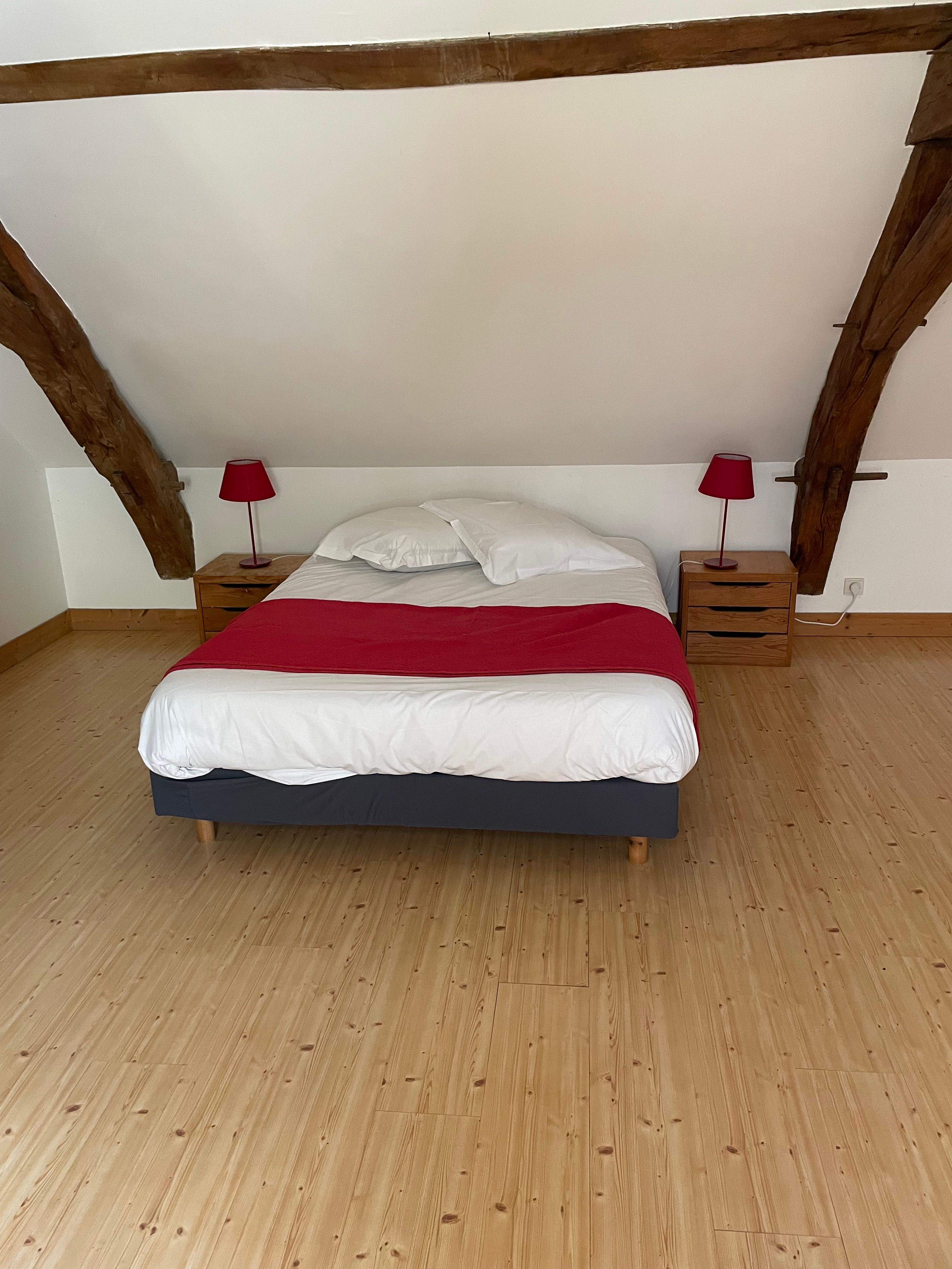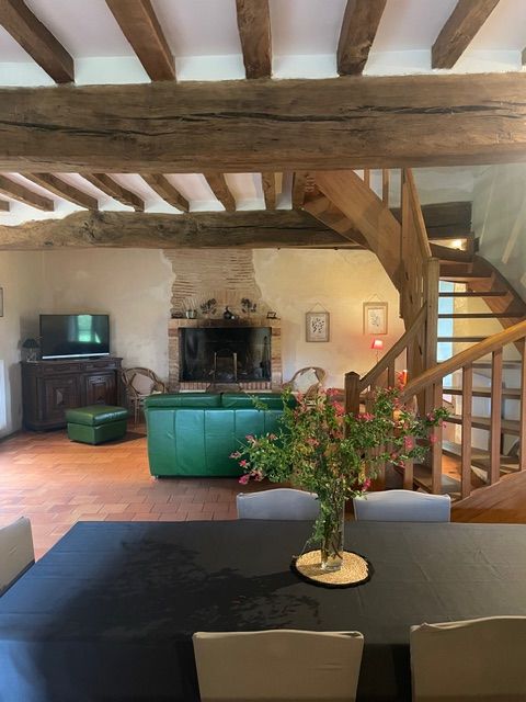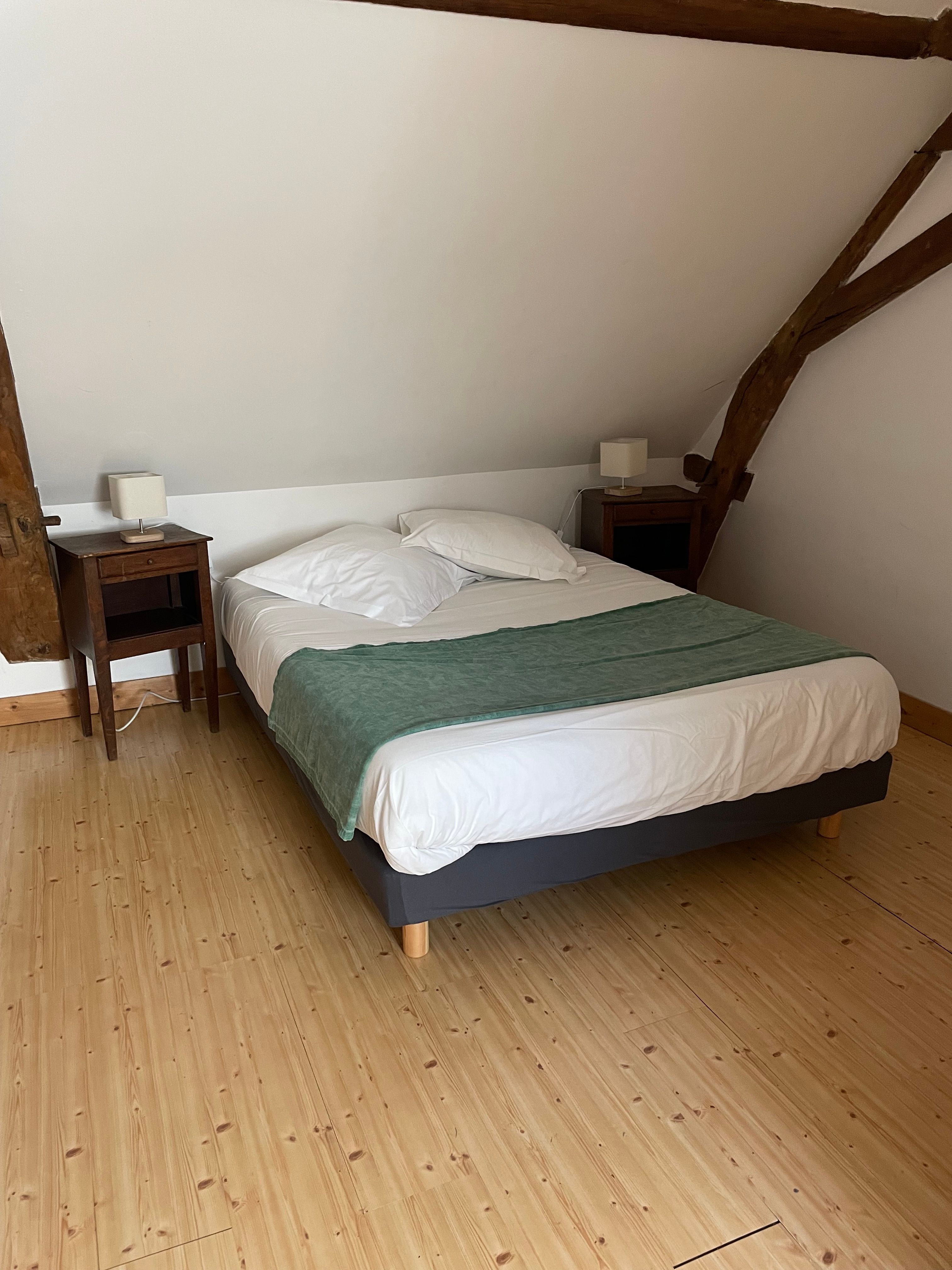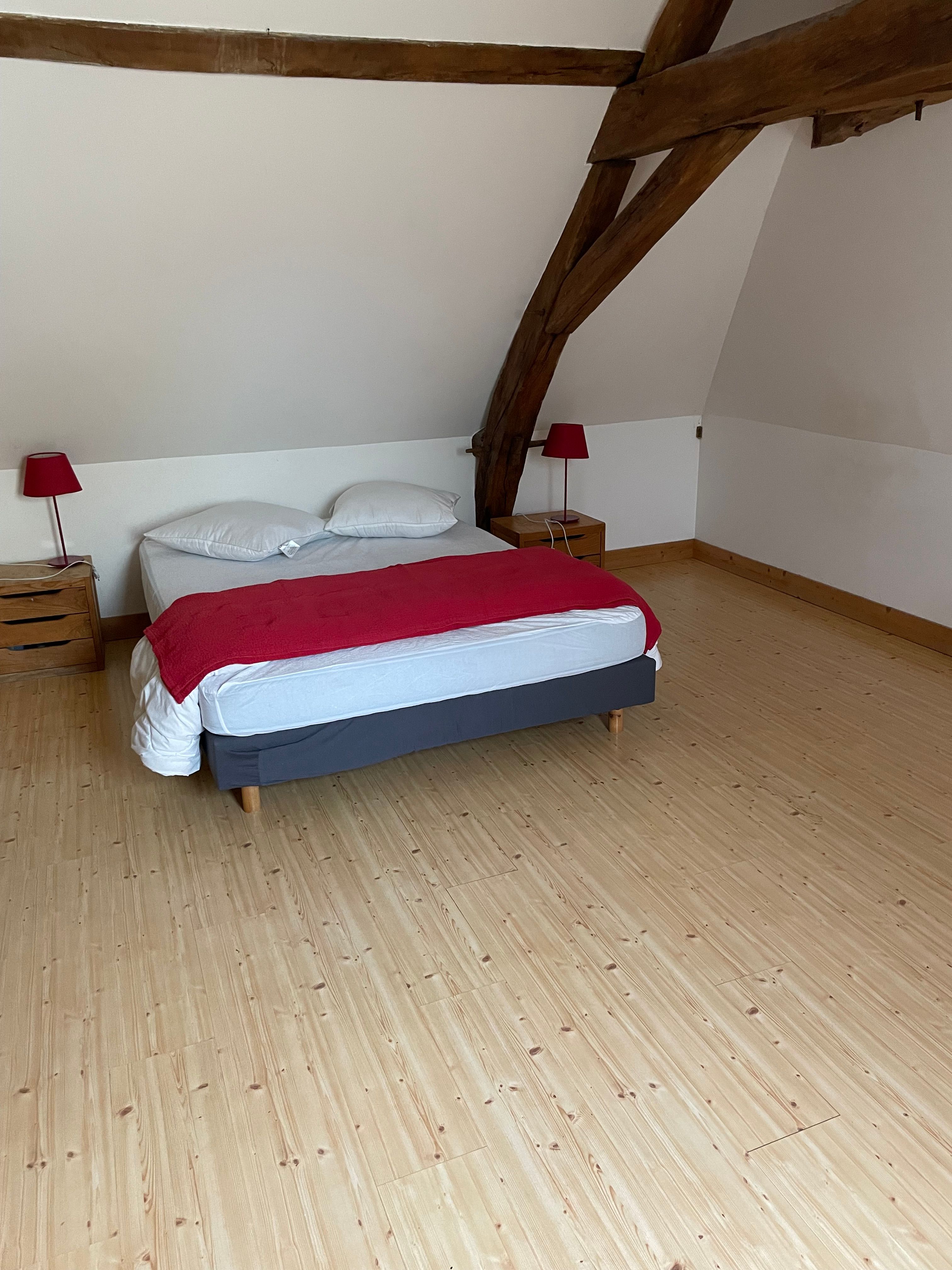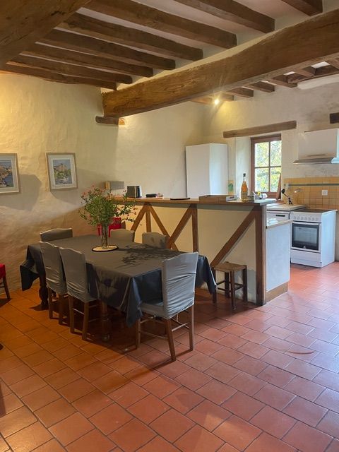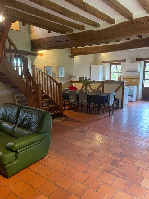 Maison indépendante spacieuse nichée dans un écrin de verdure le long de la rivière, sur un terrain non-clos de 1,5 ha, à proximité de la maison des prop. (ch. d’hôtes) et à 35 mn du circuit des 24 Heures du Mans. RDC: salon/séjour avec cuisine aménagée ouverte, WC indép. 1er étage: 3 ch (1 ch…