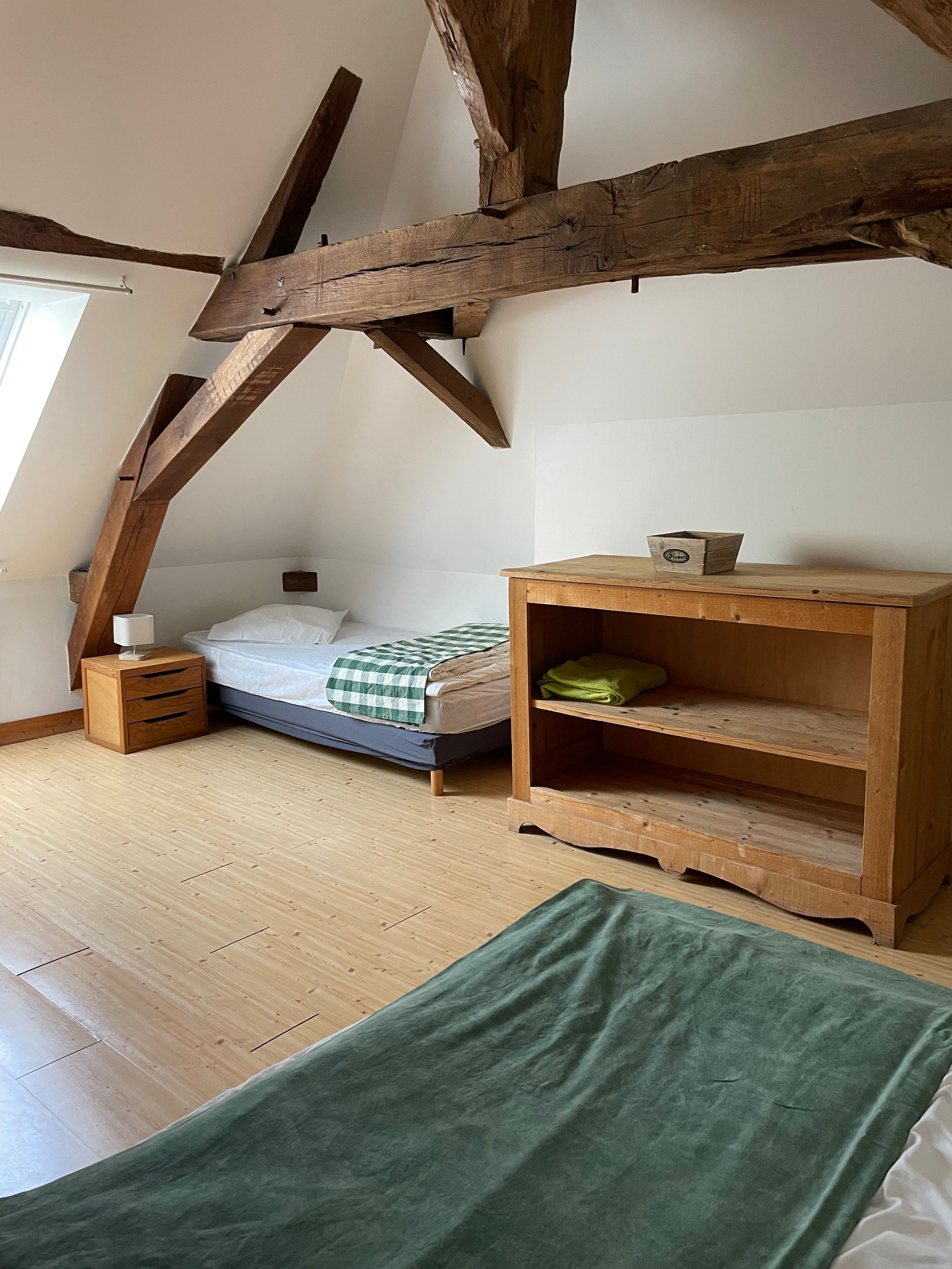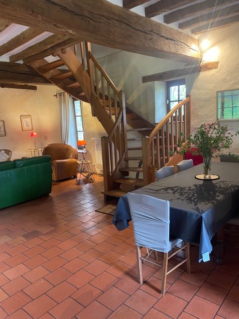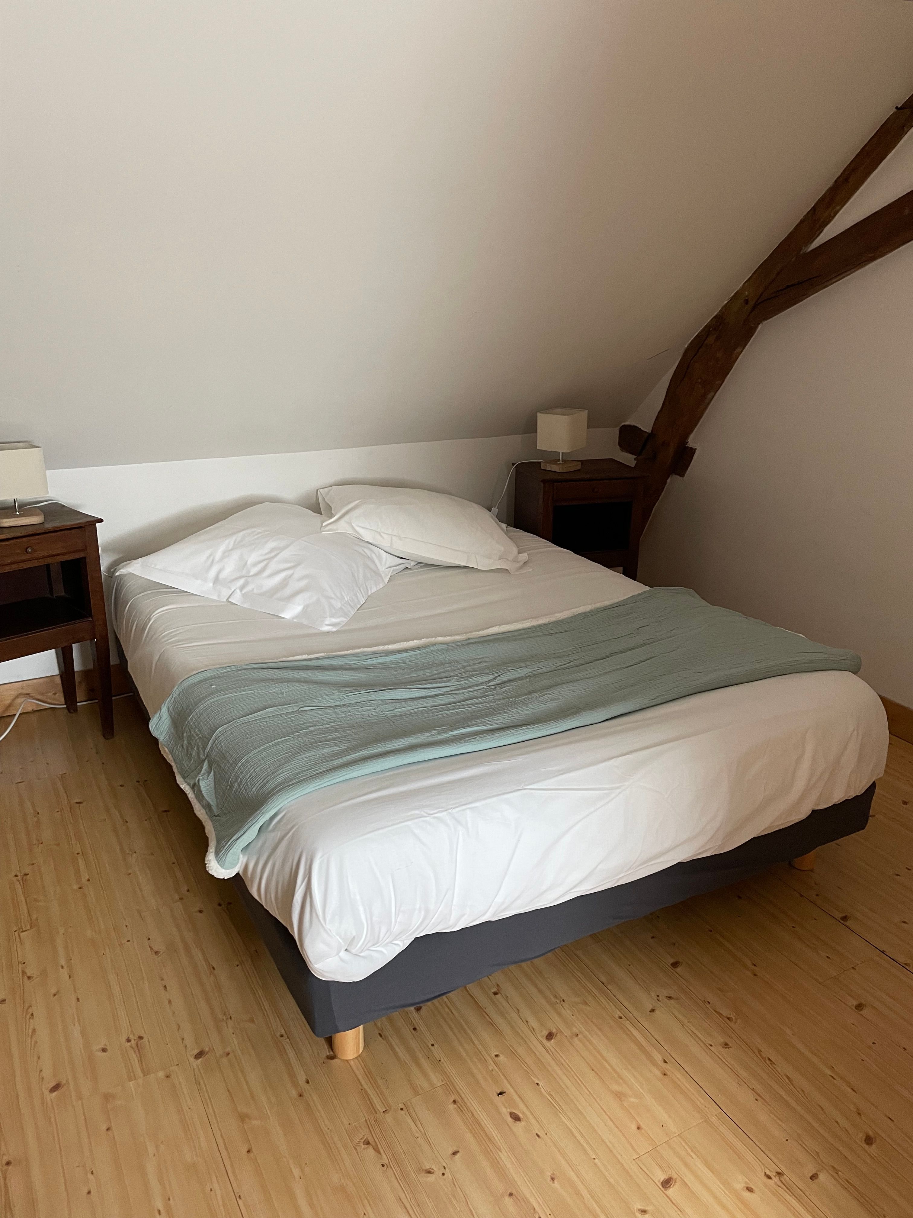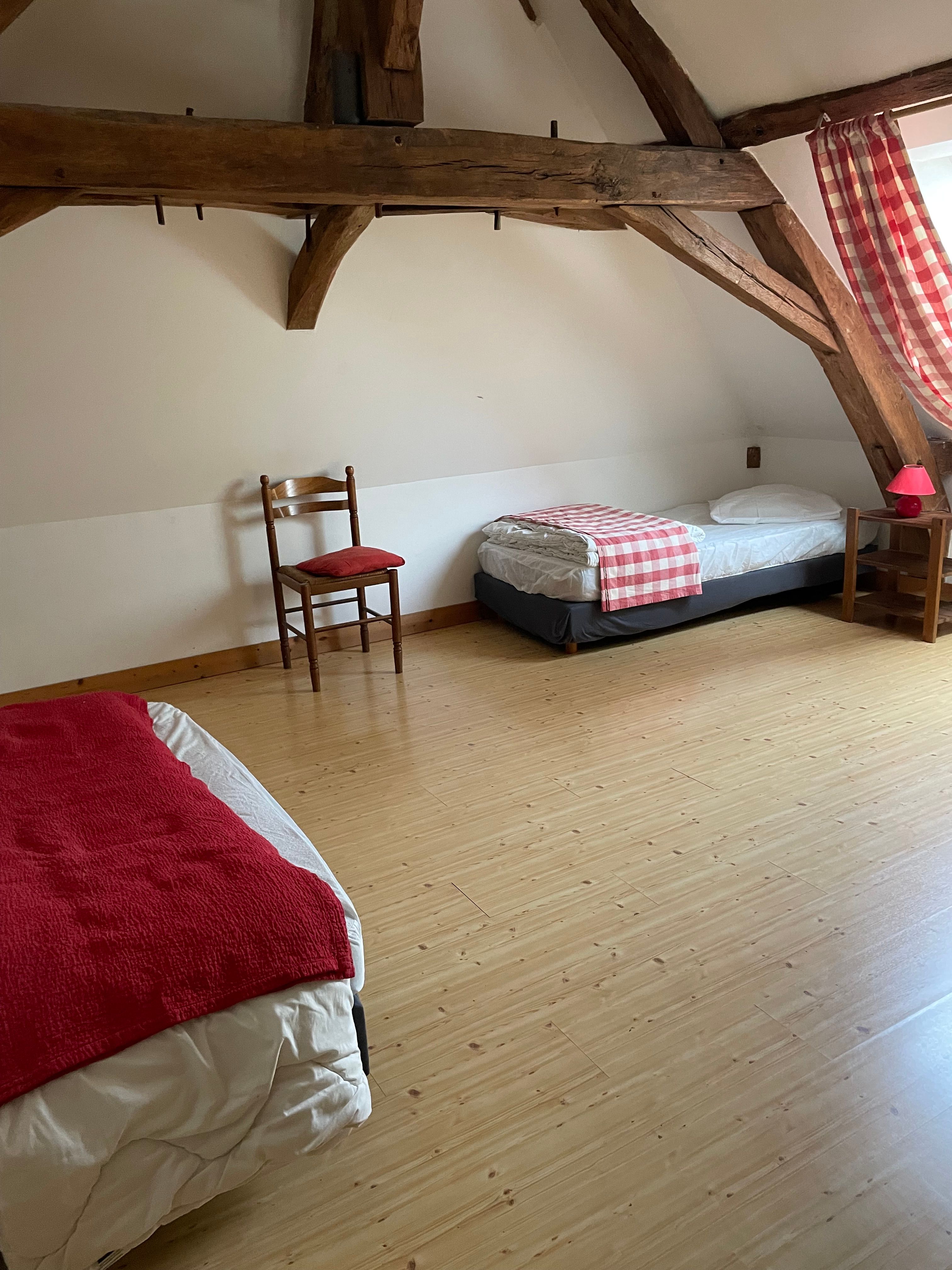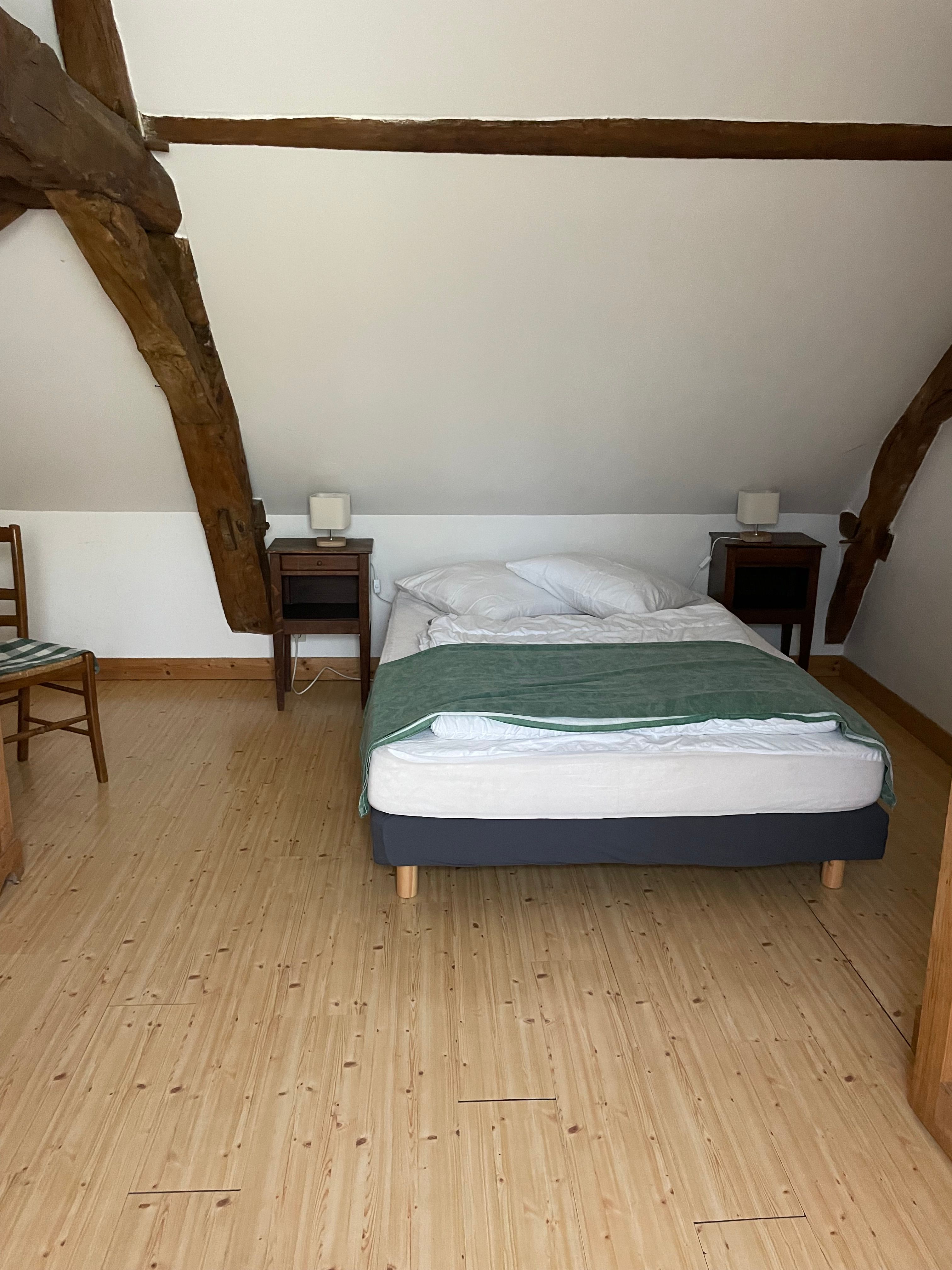 Maison indépendante spacieuse nichée dans un écrin de verdure le long de la rivière, sur un terrain non-clos de 1,5 ha, à proximité de la maison des prop. (ch. d’hôtes) et à 35 mn du circuit des 24 Heures du Mans. RDC: salon/séjour avec cuisine aménagée ouverte, WC indép. 1er étage: 3 ch (1 ch…