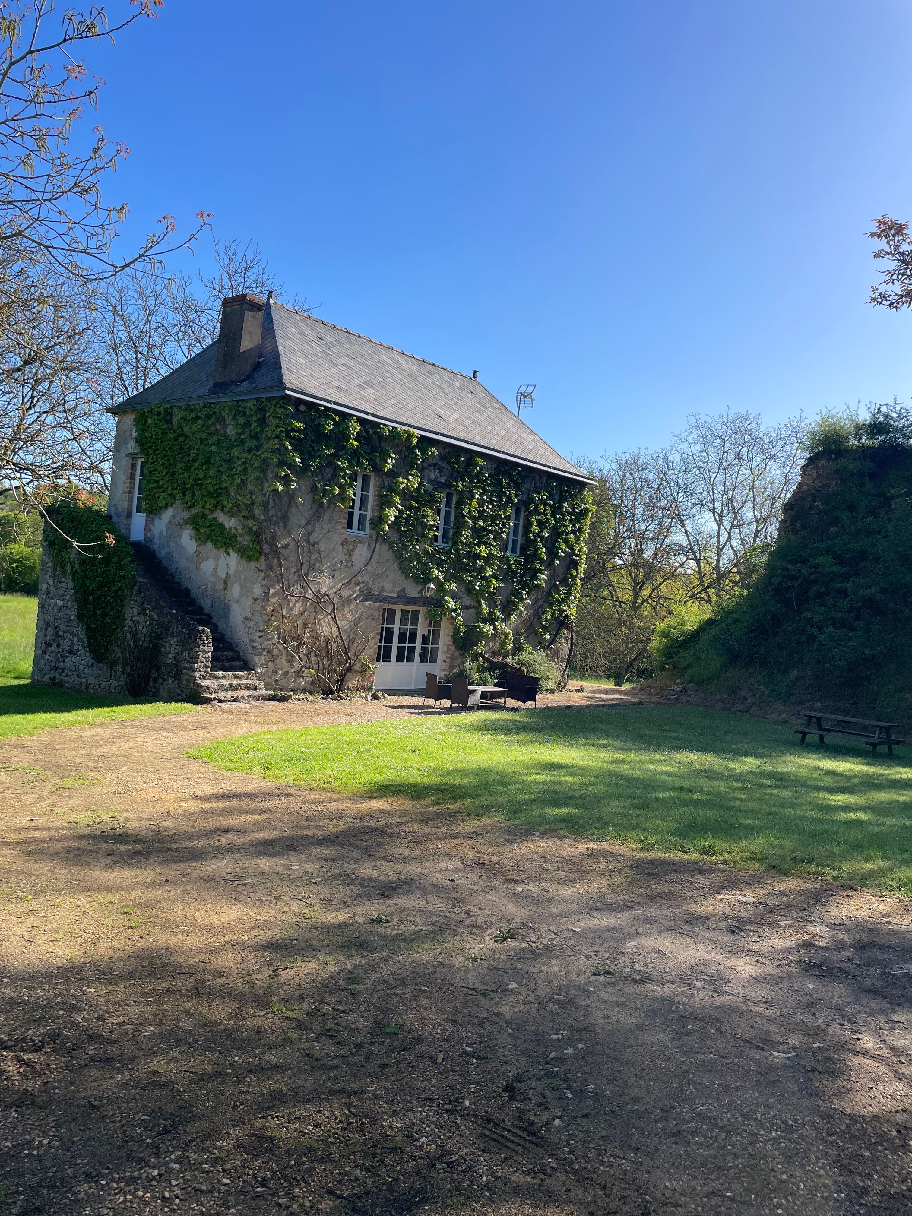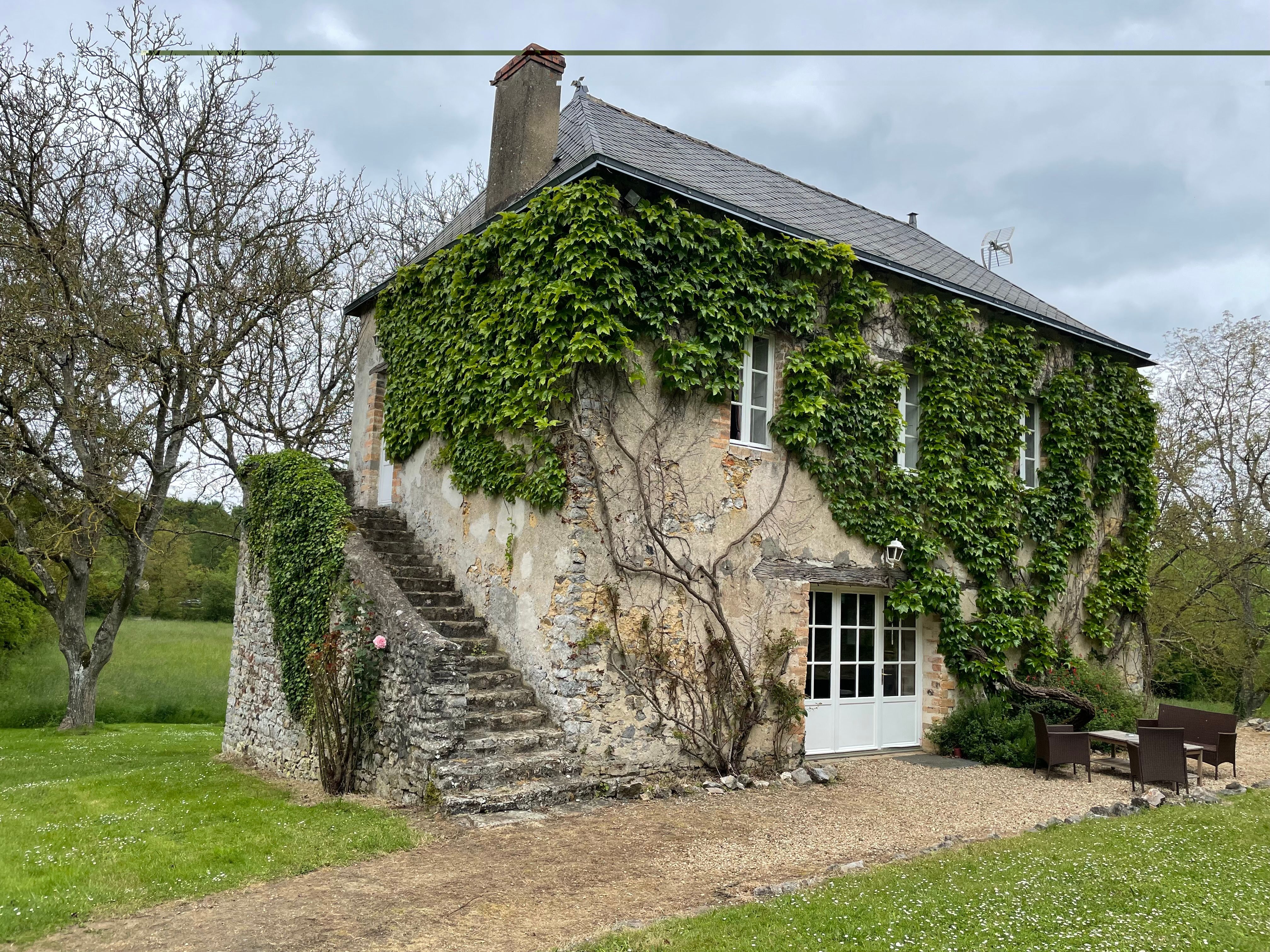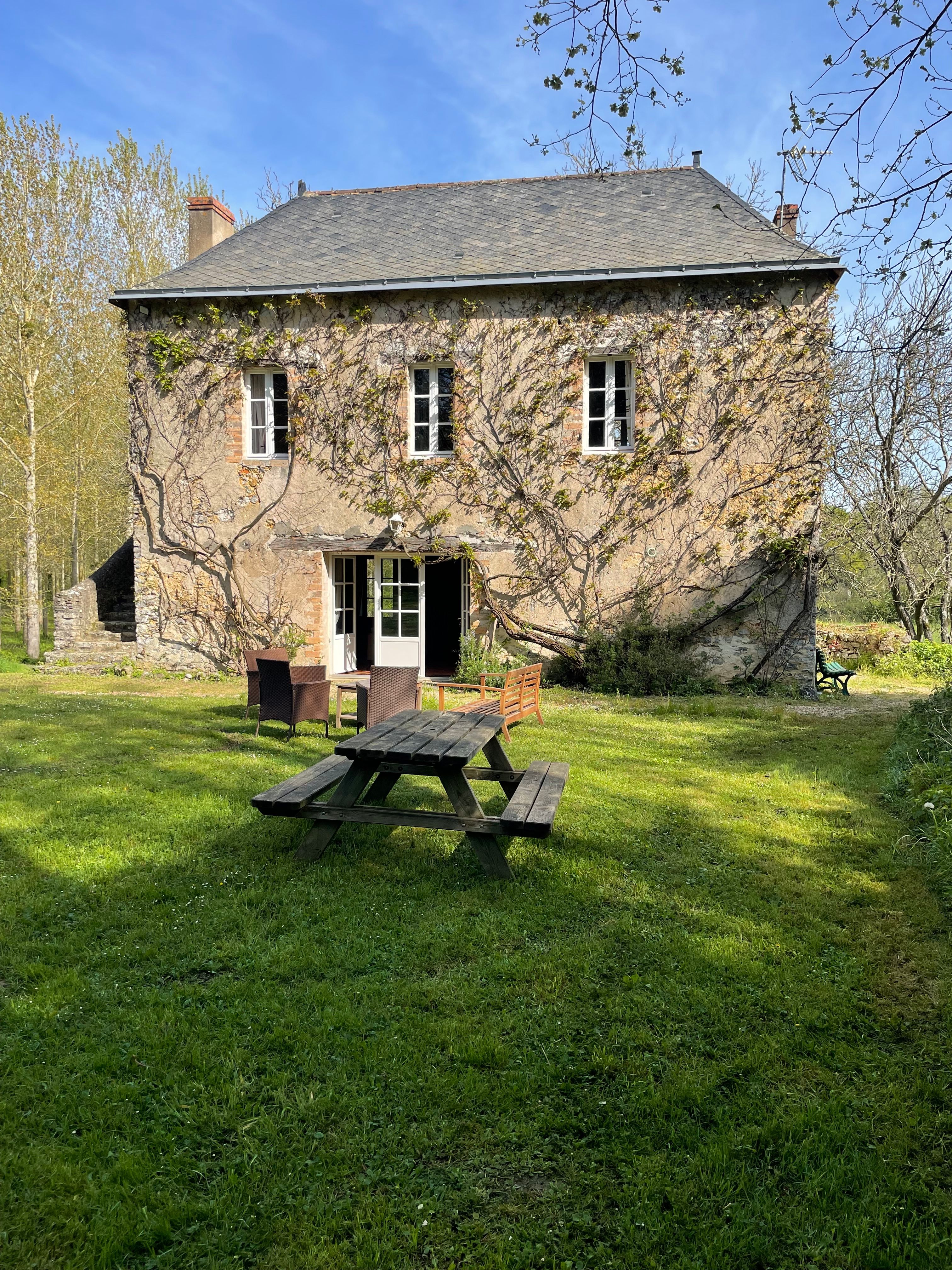 Maison indépendante spacieuse nichée dans un écrin de verdure le long de la rivière, sur un terrain non-clos de 1,5 ha, à proximité de la maison des prop. (ch. d’hôtes) et à 35 mn du circuit des 24 Heures du Mans.