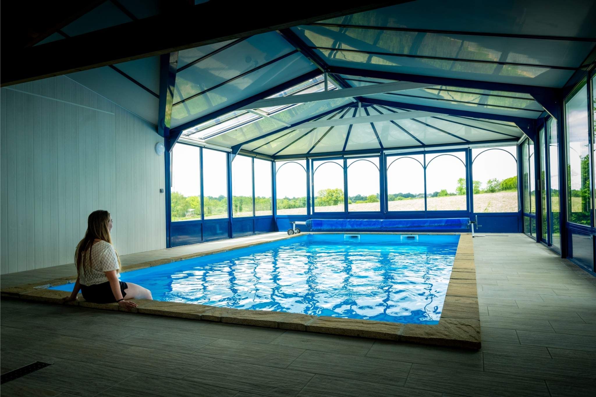 Un bâtiment pour la piscine accolé à la maison, isolé et vitré de 98m² chauffé au sol ravira petits et grands !