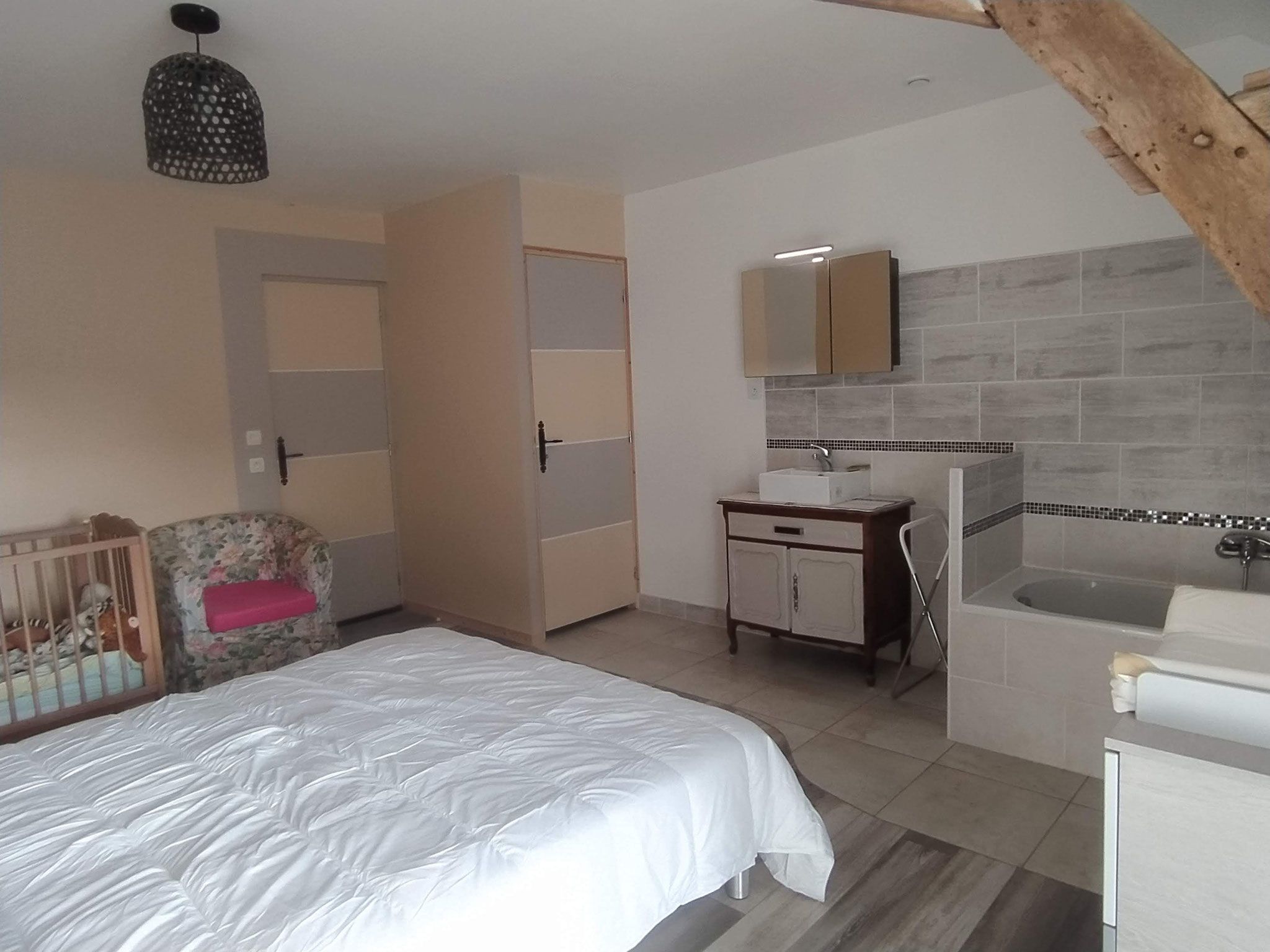 – 1 ch avec 1 lit 160, salle de bains (baignoire) , un lit bébé et wc privatif à la chambre