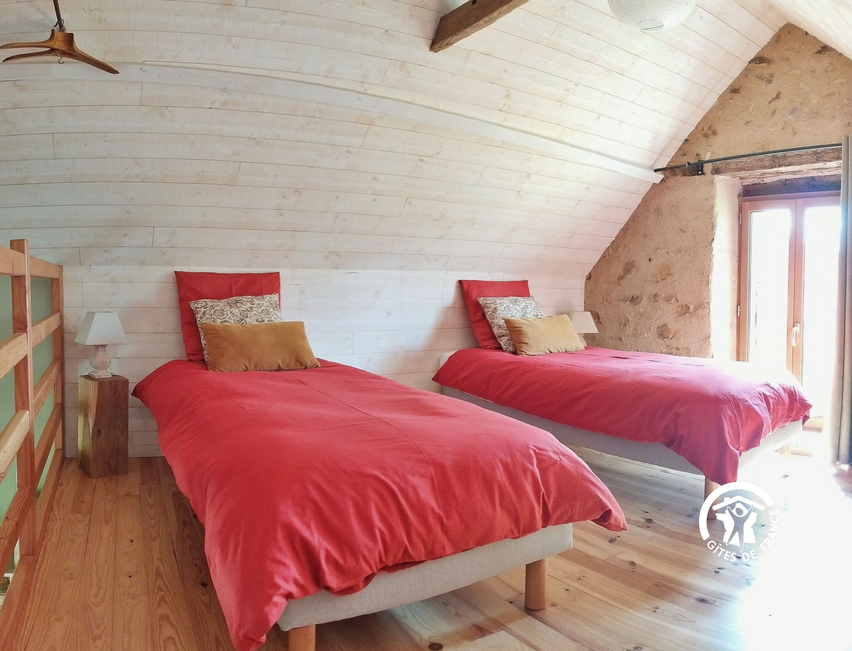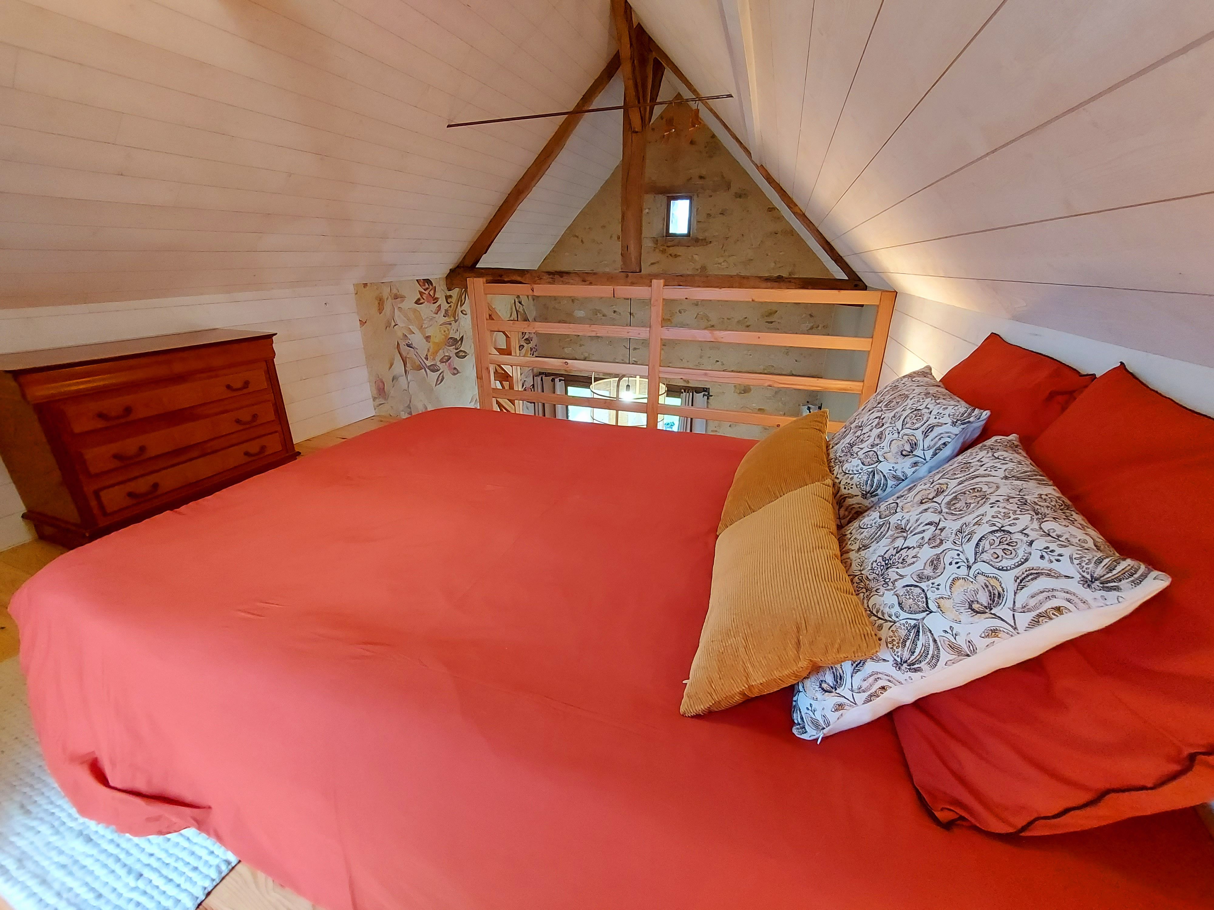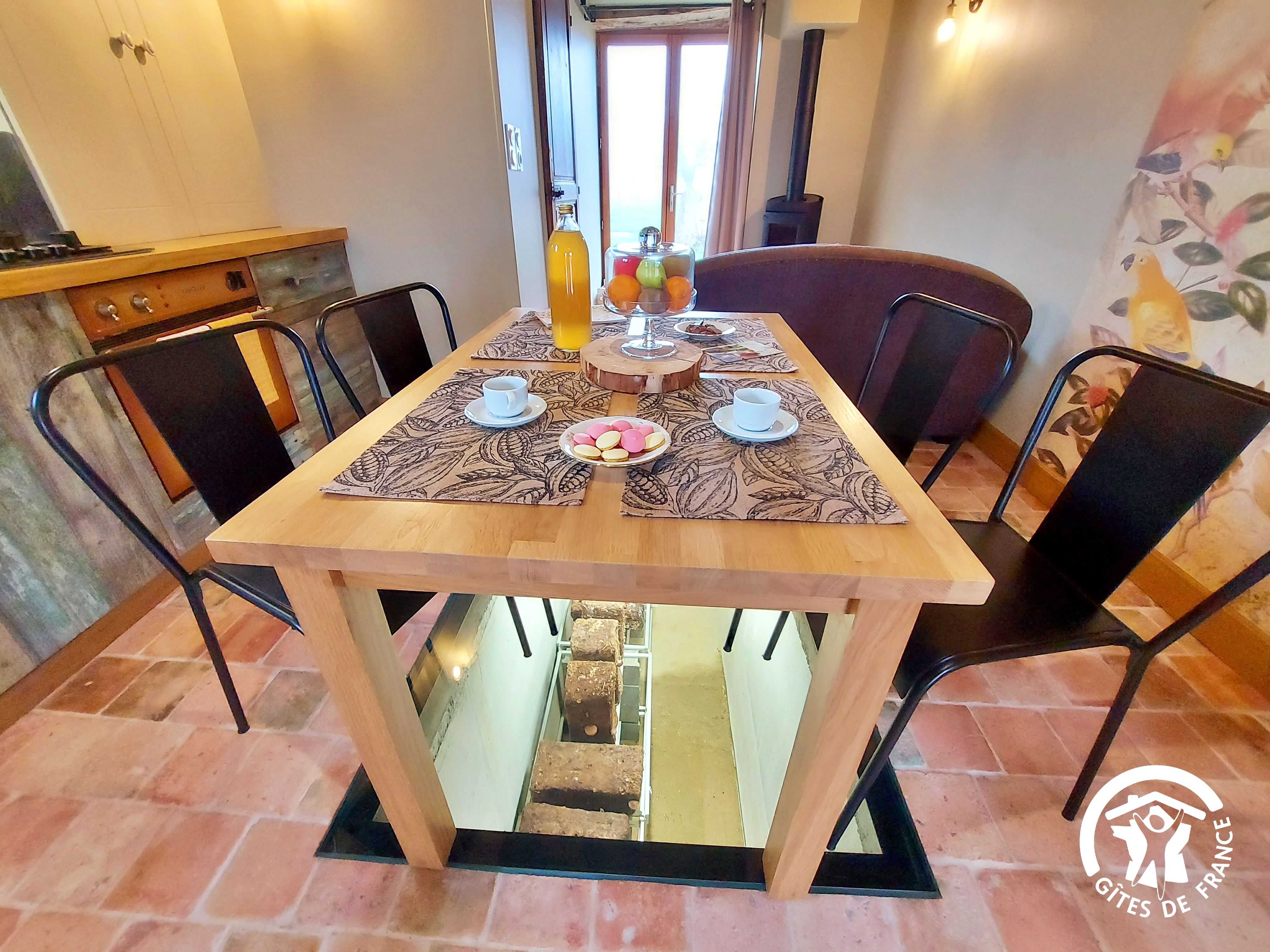 Besoin de vous ressourcer ? Ce gîte décoré avec beaucoup de goût et offrant tout le confort est idéal pour faire une coupure ! Entouré de prairies, sa terrasse abritée vous permet de vivre dedans et dehors. L’espace cuisine est au-dessus d’une cave de production de champignons, une vitre vous permet de les observer de début septembre jusqu’à fin juin. La chambre en mezzanine offre une belle vue sur la campagne.