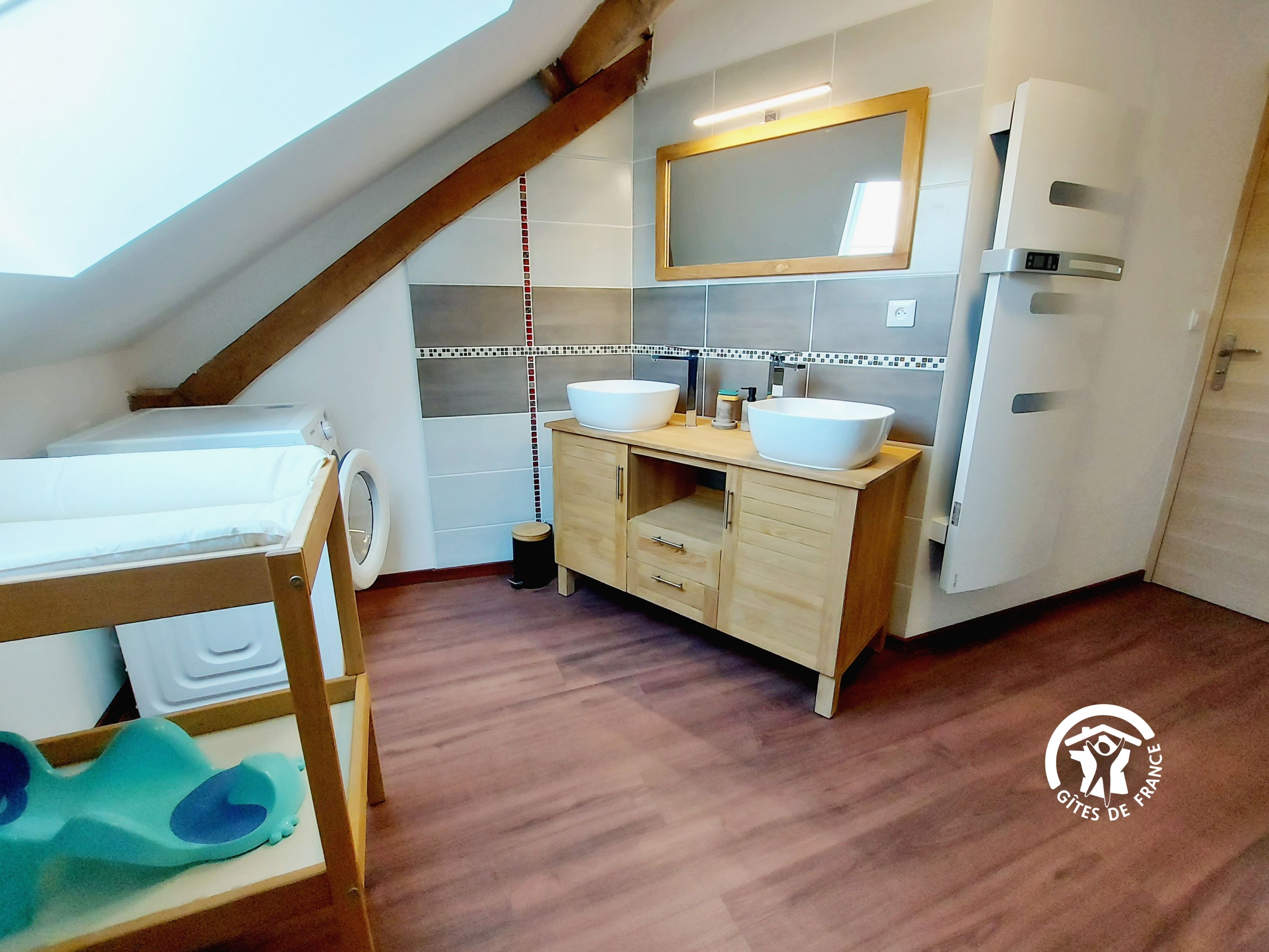 Au cœur de la Mayenne, à 20km de Laval, découvrez ce grand gîte au grand confort, lumineux avec des pièces spacieuses. En tribu, famille ou amis, l’espace est très bien conçu. En rez-de-chaussée les pièces de vie avec une cuisine équipée, un très grand séjour 39m² avec un espace salon et espace salle à manger et une petite salle de jeu ou de sieste pour les jeunes enfants. Accès à la terrasse et au jardin directement depuis la cuisine et le salon par une baie vitrée.