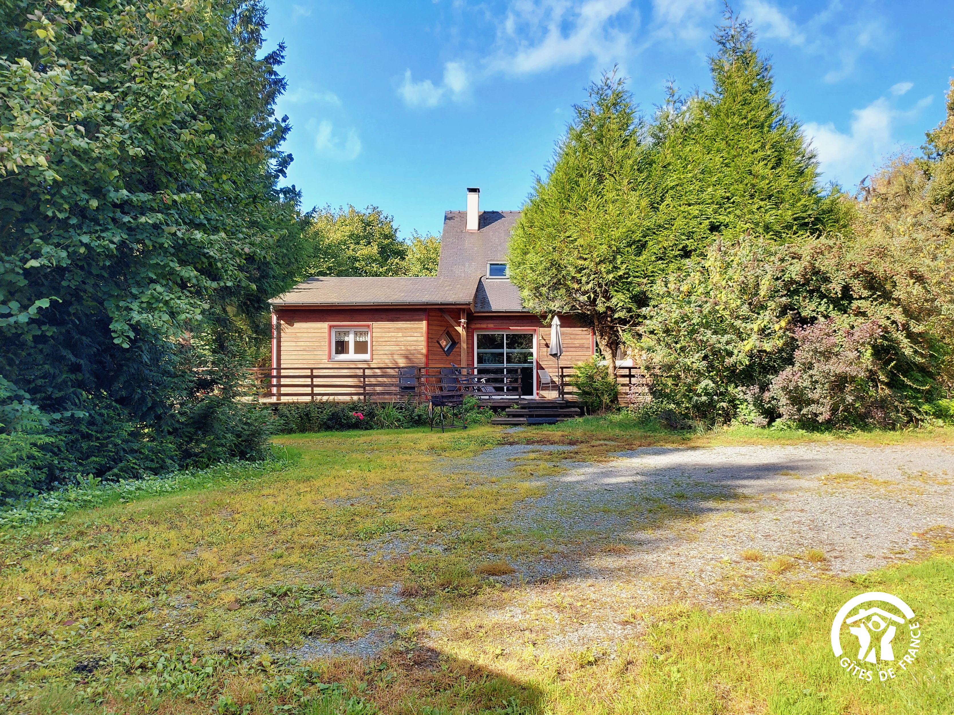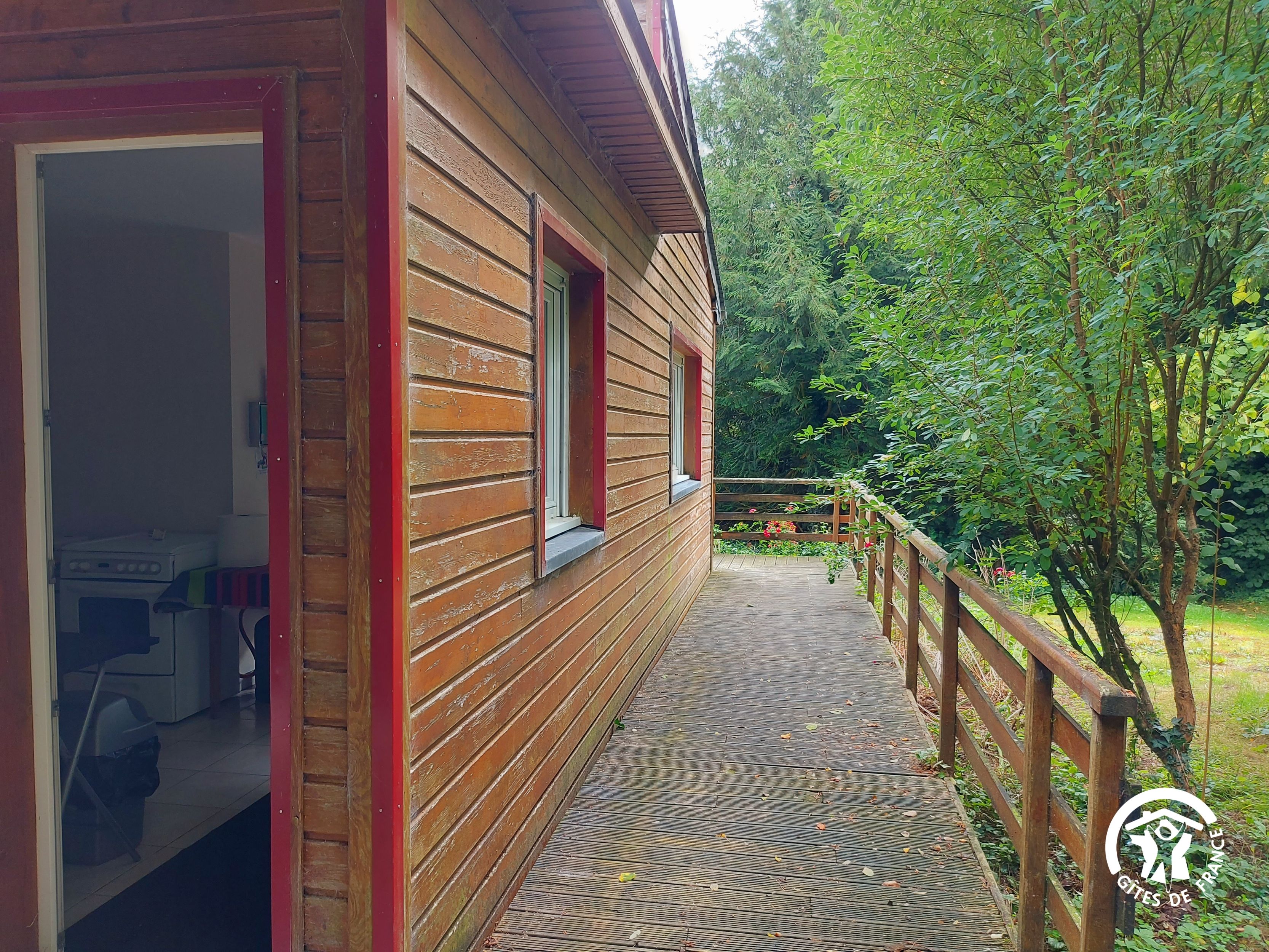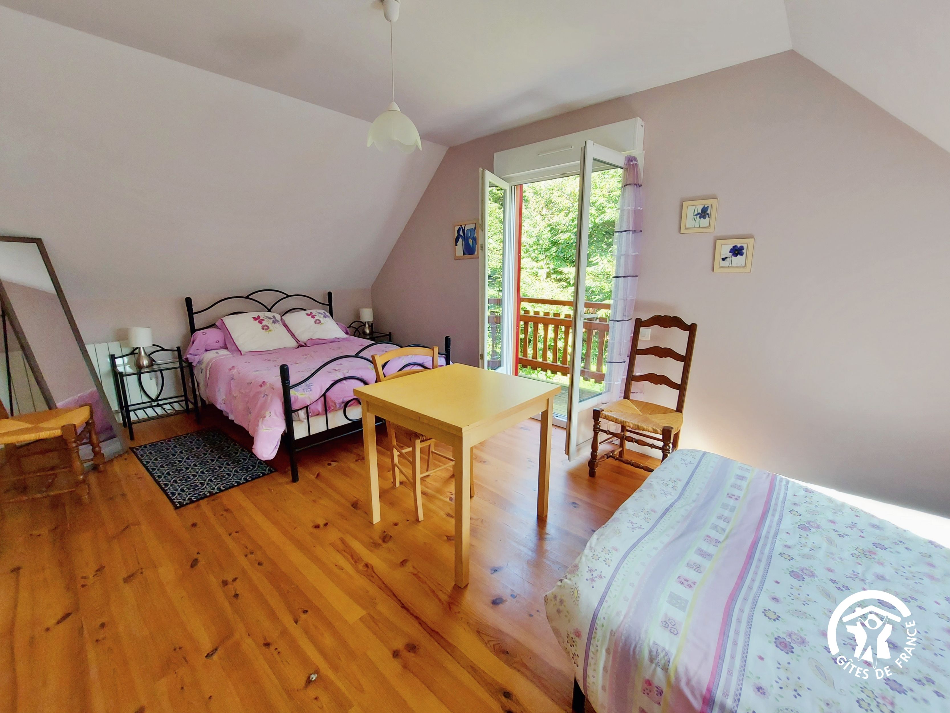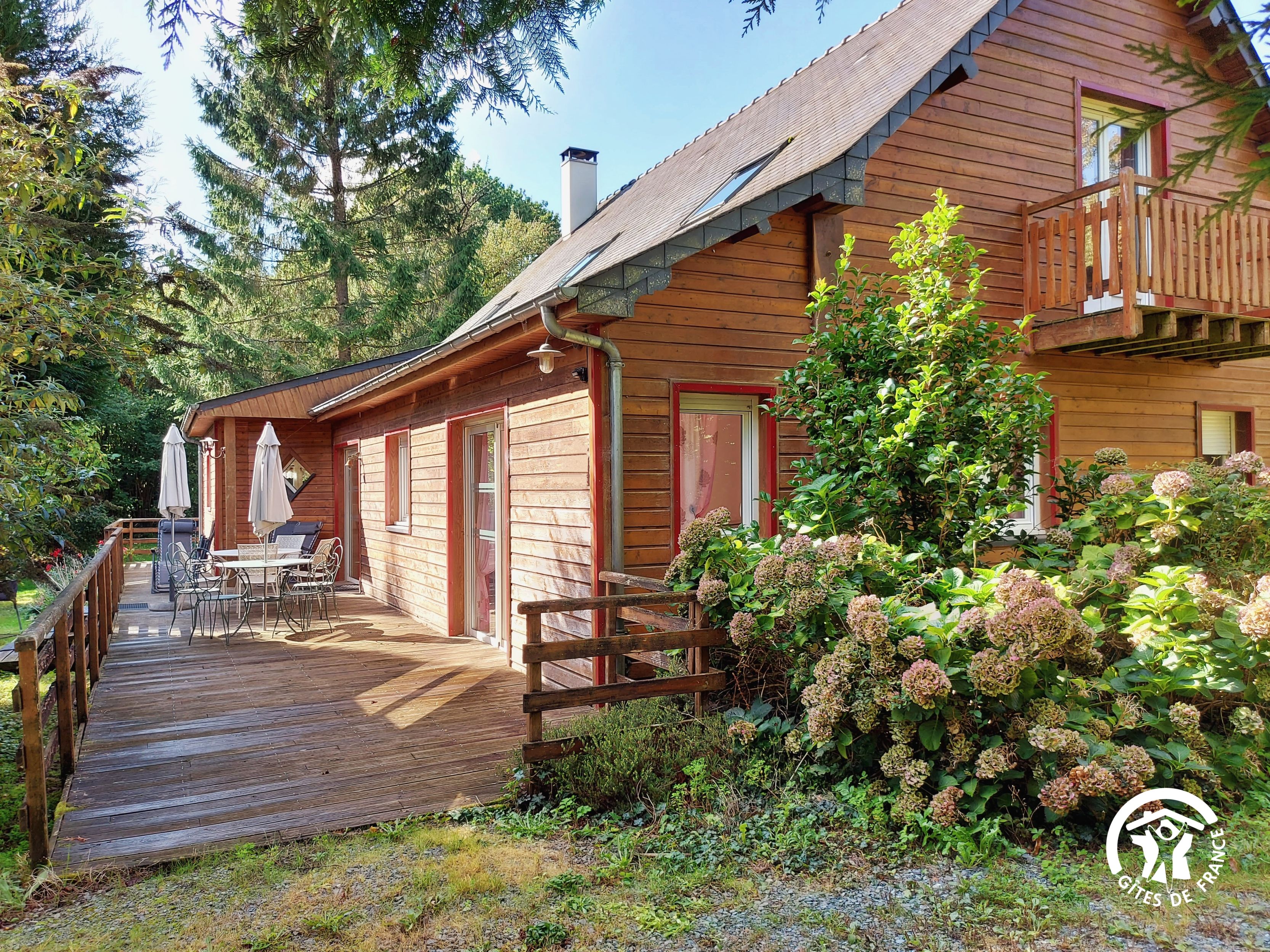 Conçu pour 8 personnes, le rez-de-chaussée est dévolu aux pièces de vie, cuisine et séjour, ainsi qu’une chambre avec sa salle d’eau et wc privatifs. Ce niveau avait été conçu pour les personnes à mobilité réduite : accès à la terrasse par une rampe, sans marche entre les pièces de vie. A l’étage, deux chambres supplémentaires, une salle de bain et un wc indépendant. Au total 4 lits de 90*190 (dont 1 lit pliant) et 3 lits 140*190. Le poêle à bois offre une chaleur agréable en inter-saison et l’hiver (bois inclus). Longue terrasse en surplomb, avec mobilier de jardin et garage avec table de ping-pong.