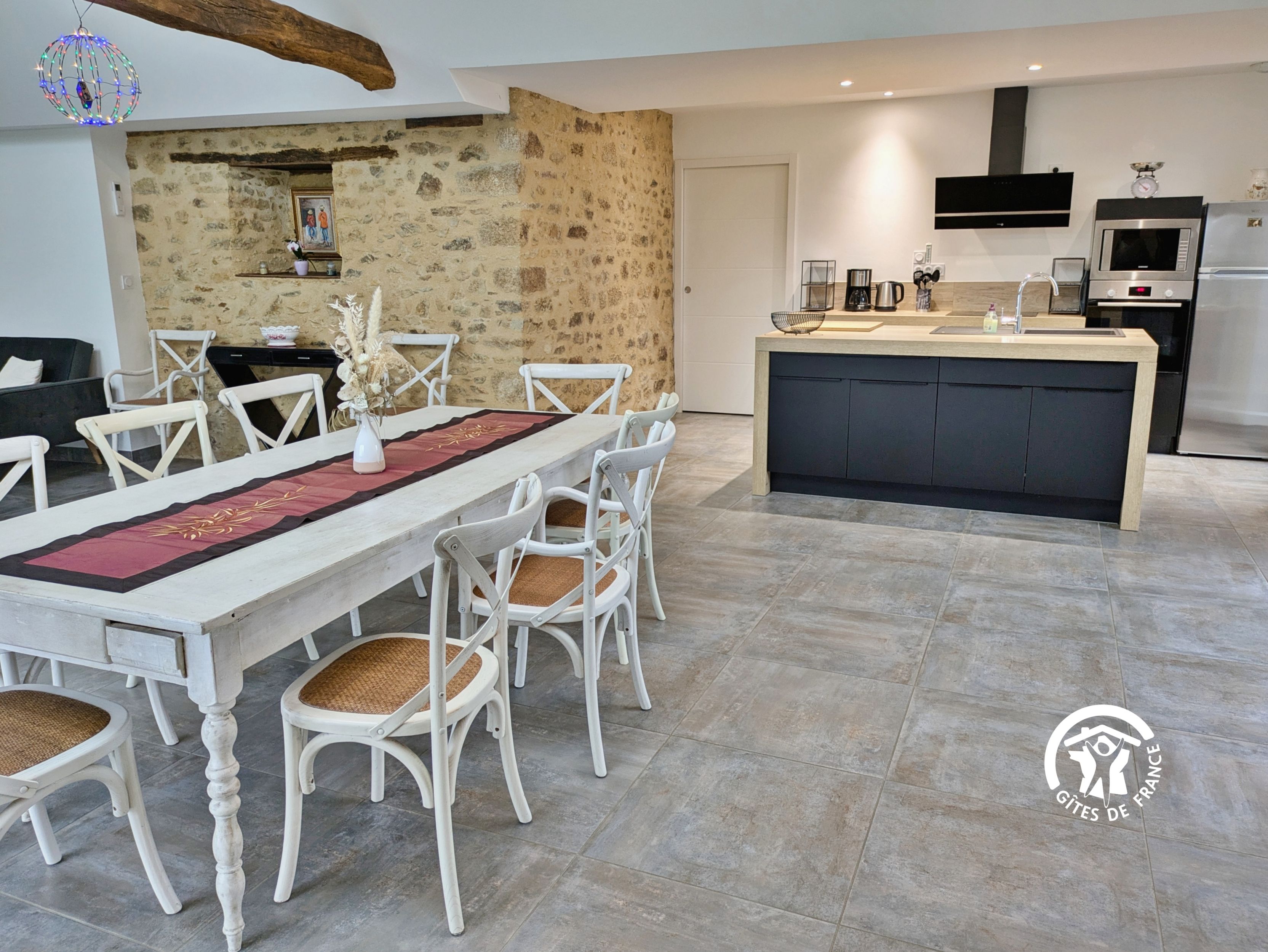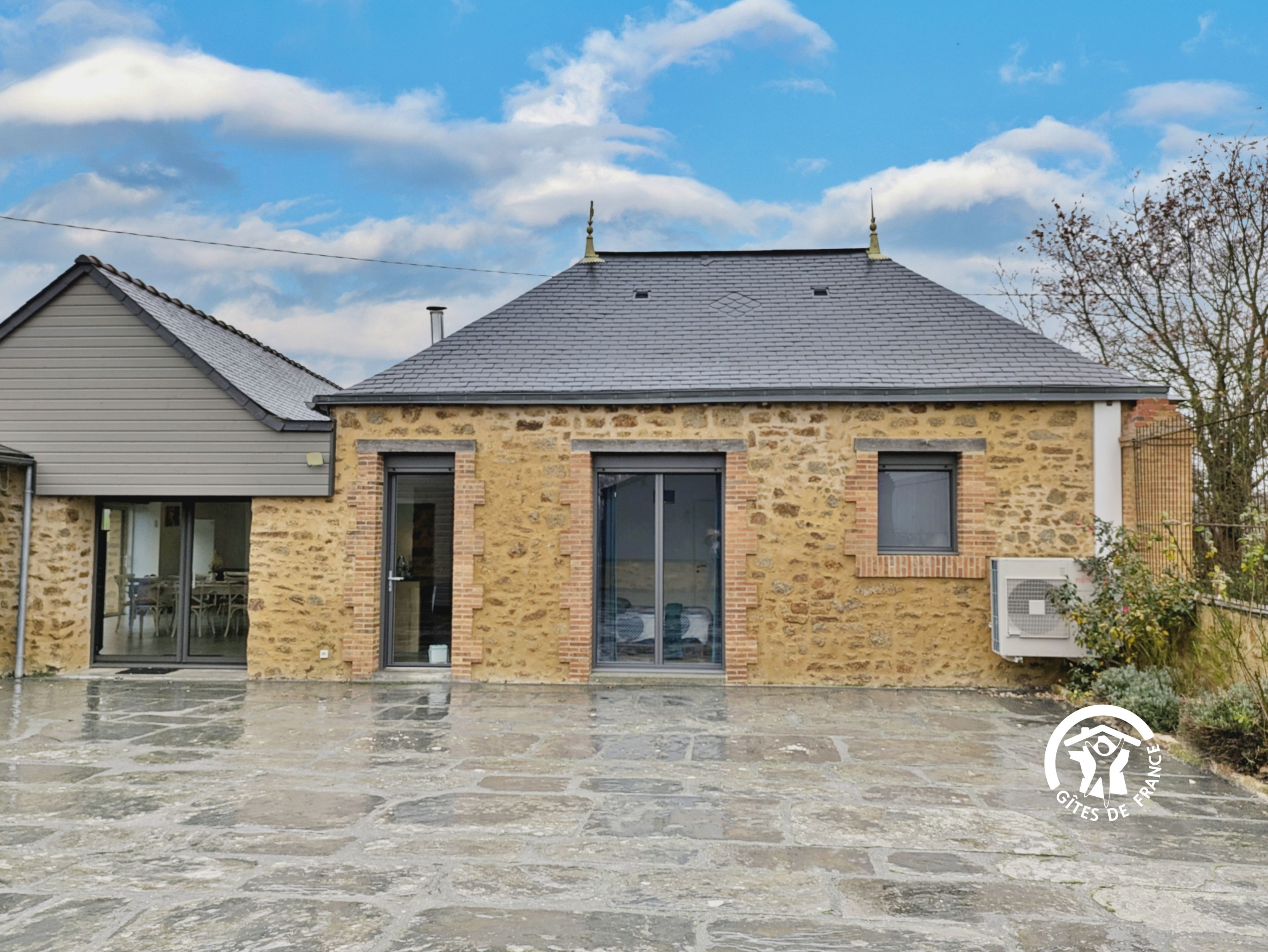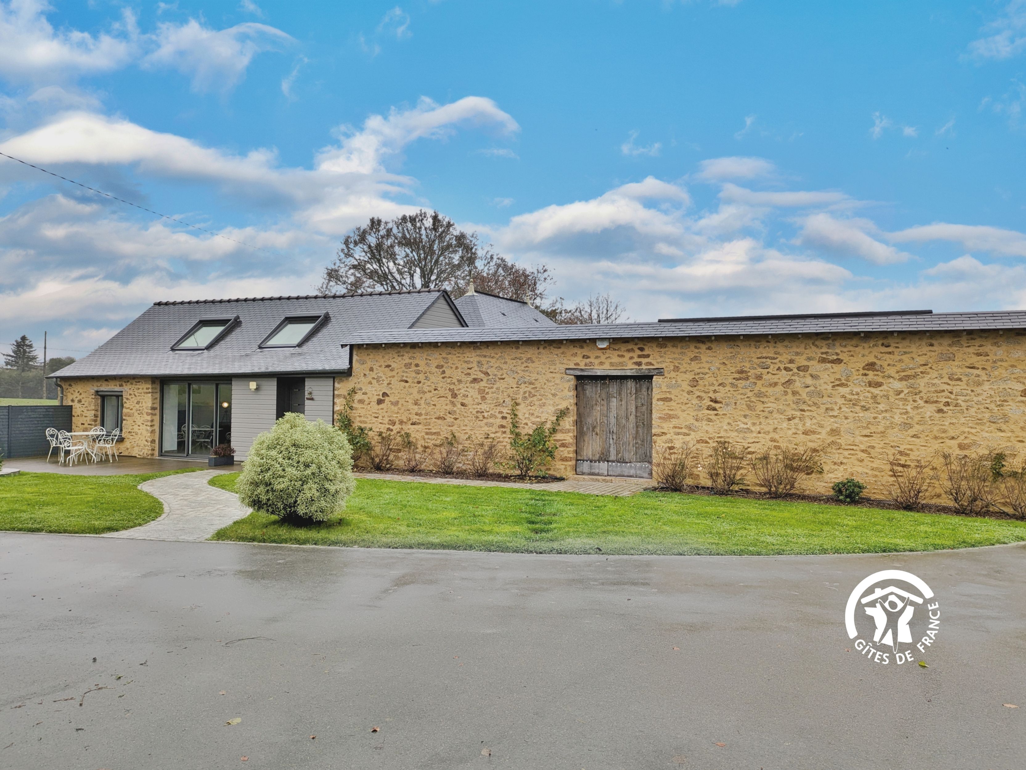 Dans la campagne mayennaise, cette magnifique maison de famille en pierre vous offre une prestation complète et haut de gamme : de plain-pied, elle dispose de vastes pièces, d’un mobilier confortable, de jeux de société, de jeux extérieurs (table de ping-pong, palets…), d’un spa indépendant, ainsi que d’une belle cour-terrasse abritée des vents, avec une vue sur la campagne environnante et un jardin.