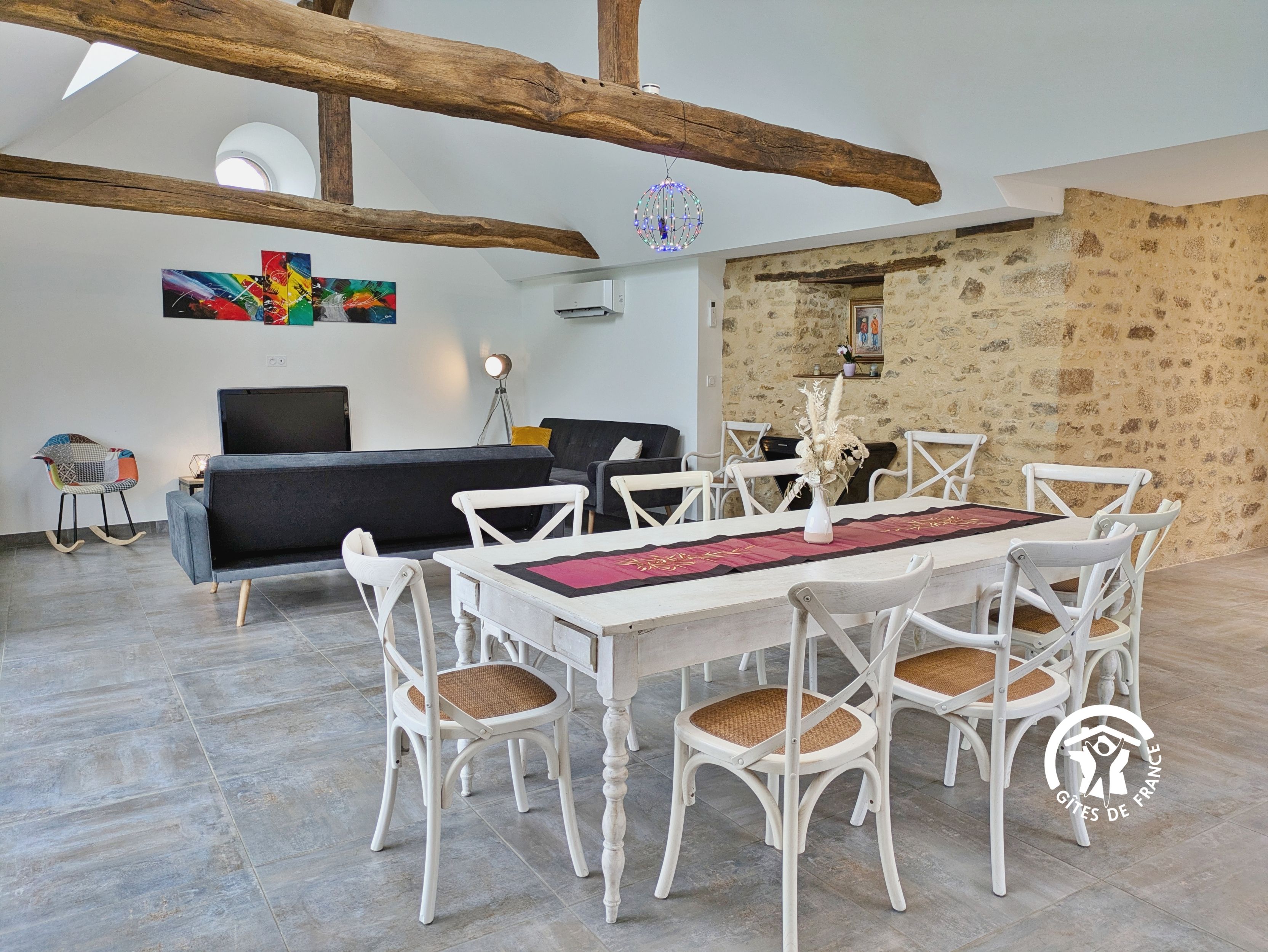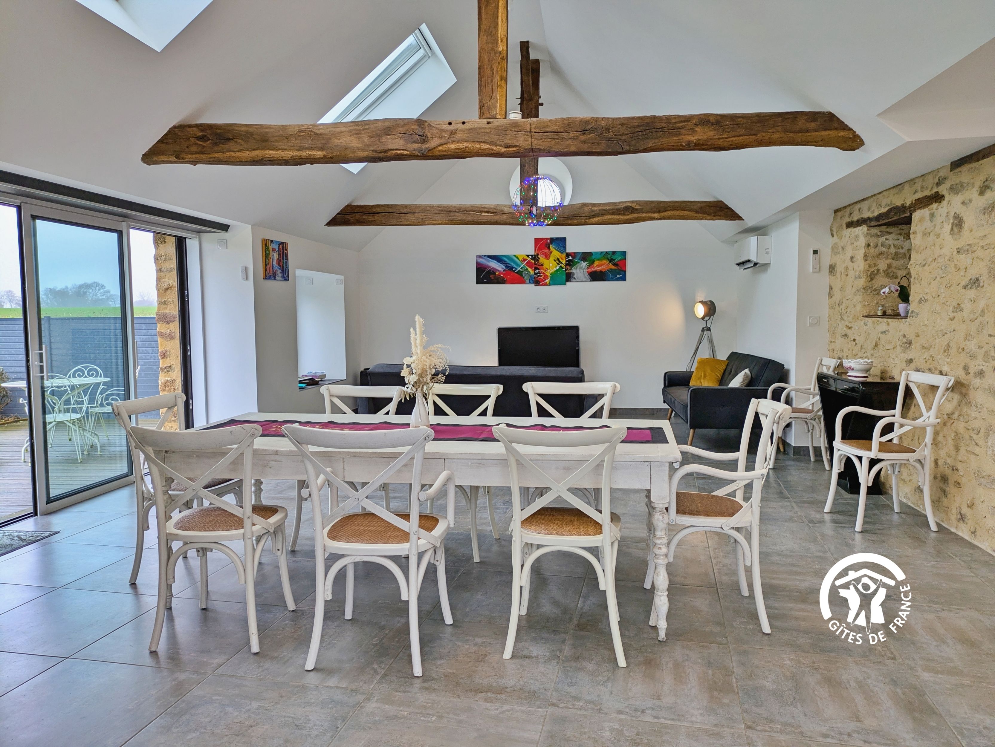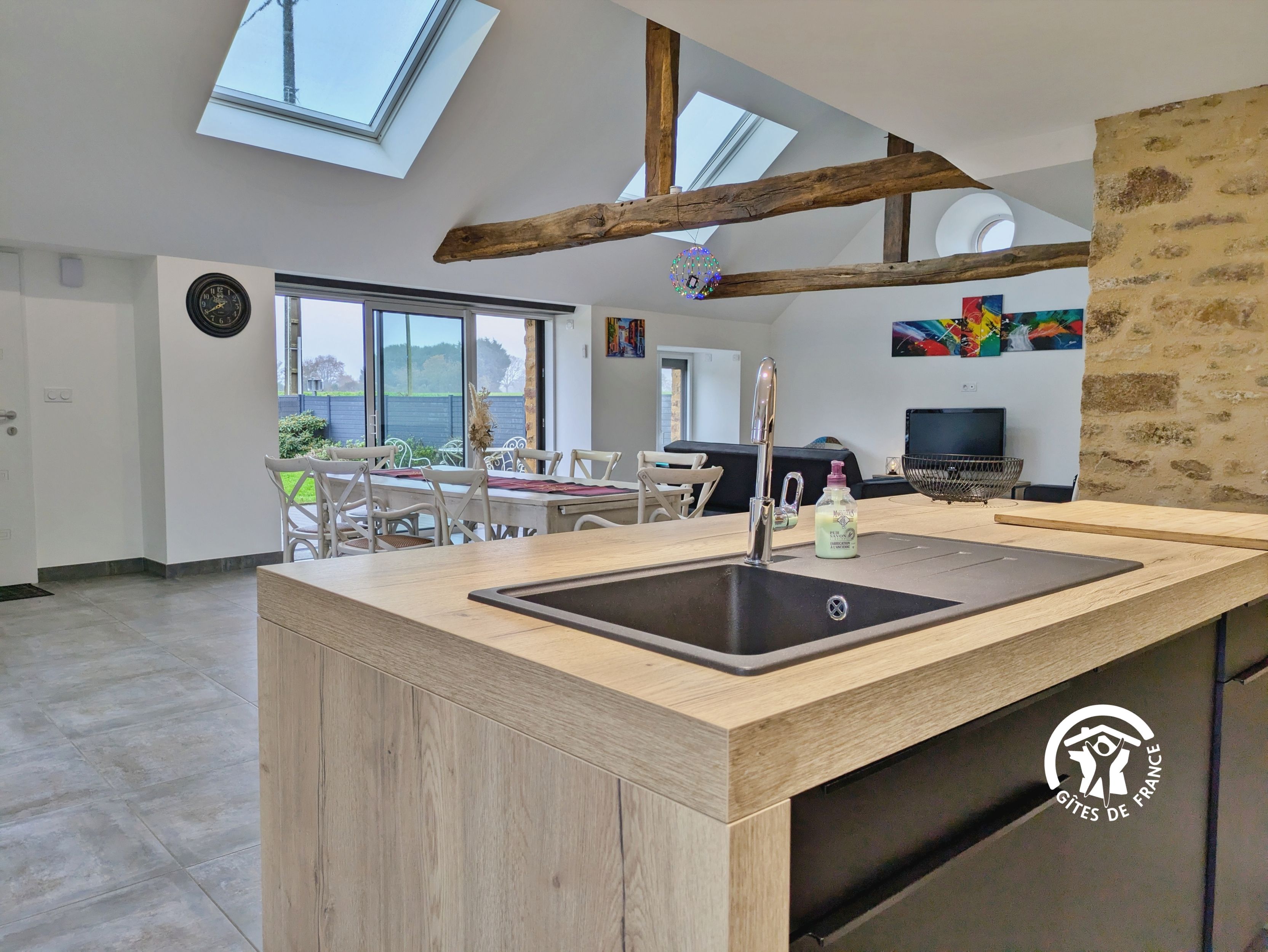 Dans la campagne mayennaise, cette magnifique maison de famille en pierre vous offre une prestation complète et haut de gamme : de plain-pied, elle dispose de vastes pièces, d’un mobilier confortable, de jeux de société, de jeux extérieurs (table de ping-pong, palets…), d’un spa indépendant, ainsi que d’une belle cour-terrasse abritée des vents, avec une vue sur la campagne environnante et un jardin.