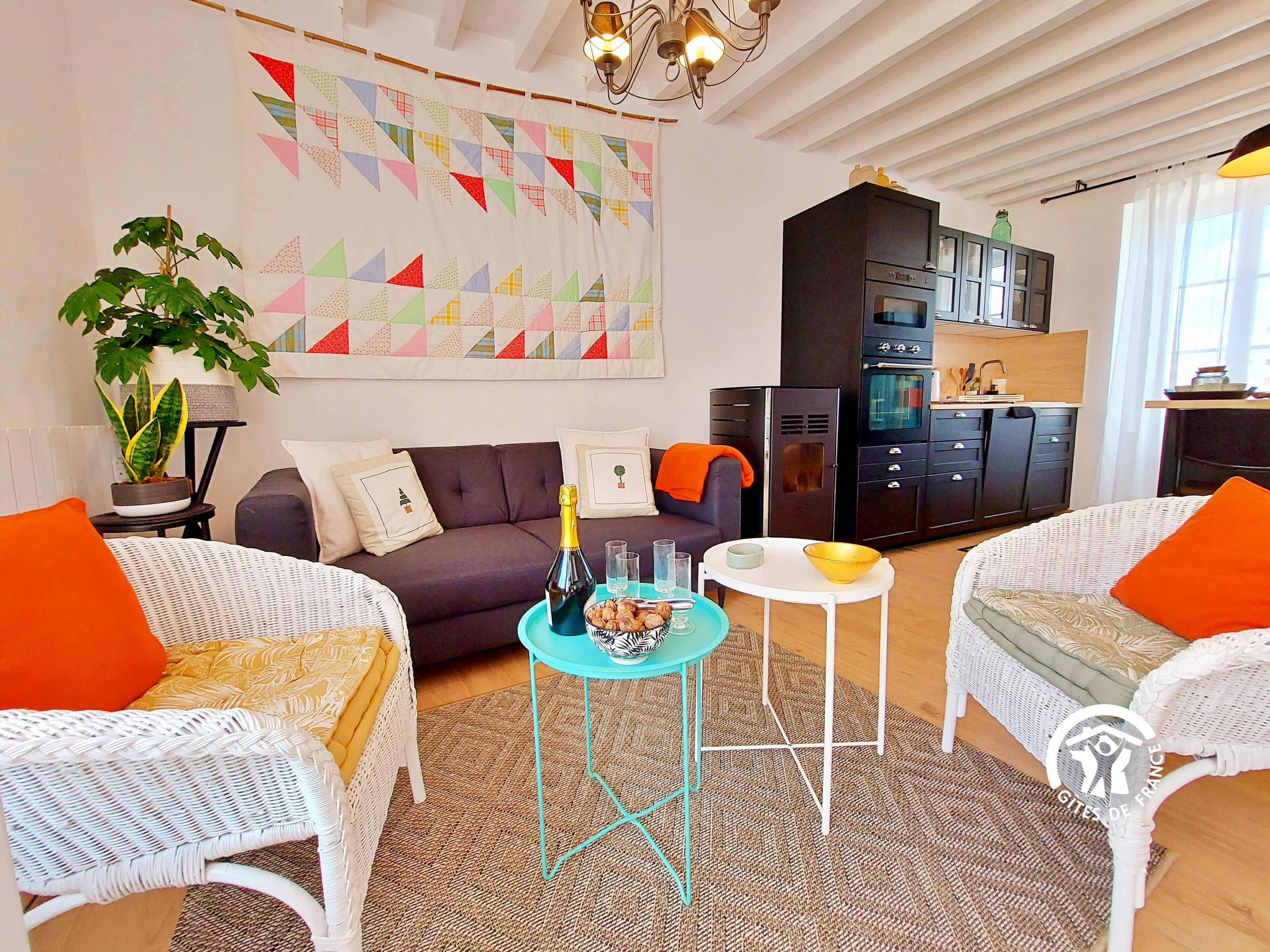 Le Cottage Seguin, c’est aussi un gîte au grand confort avec une décoration soignée. Tout est bien pensé pour vous permettre de passer un séjour agréable, ressourçant. Les pièces sont lumineuses, la véranda permet de profiter de l’extérieur en toute saison. Vous disposez d’un grand jardin avec des arbres fruitiers (cerisier, poirier, noisetier…) et d’un coin repas sous préau.