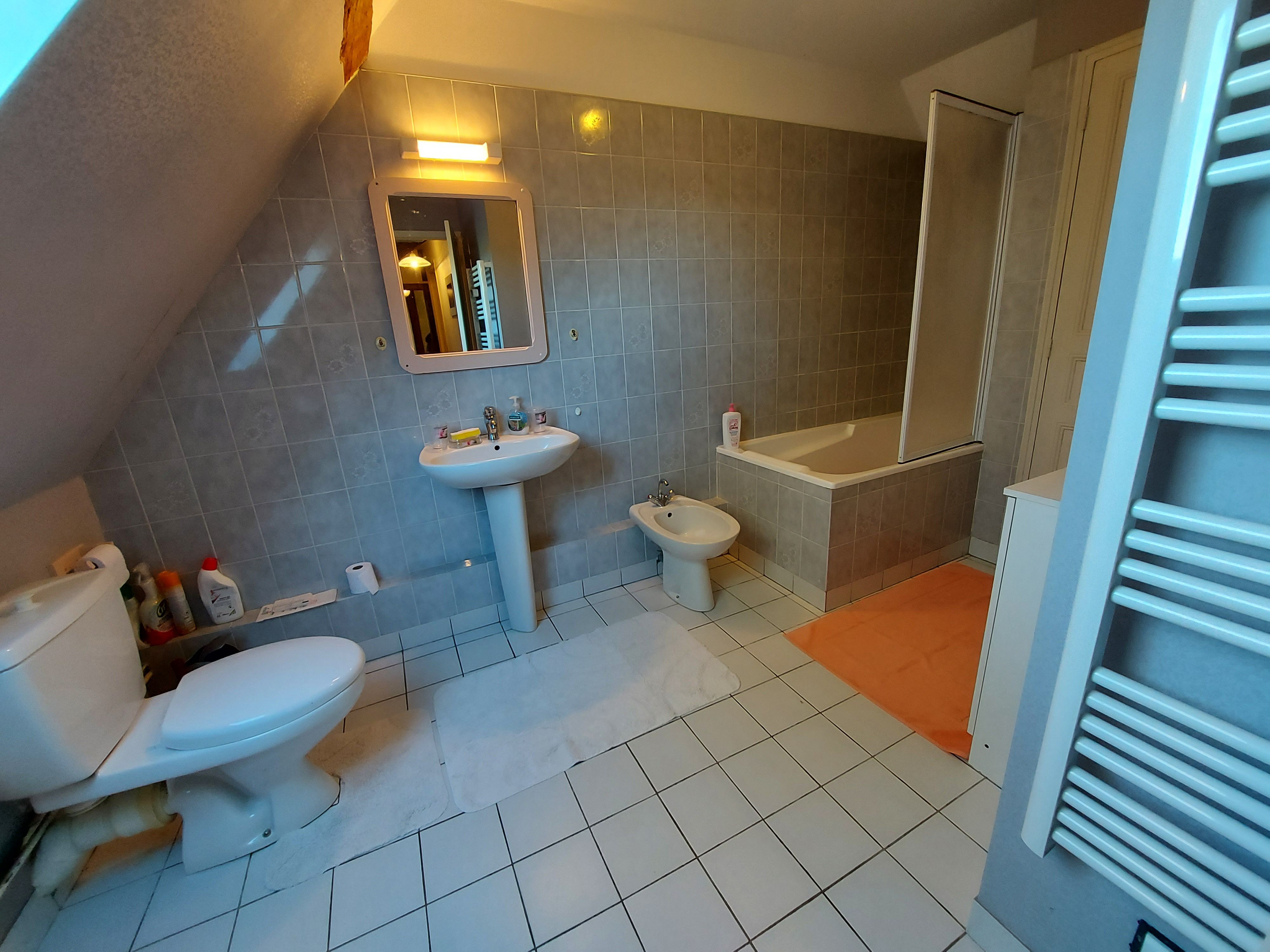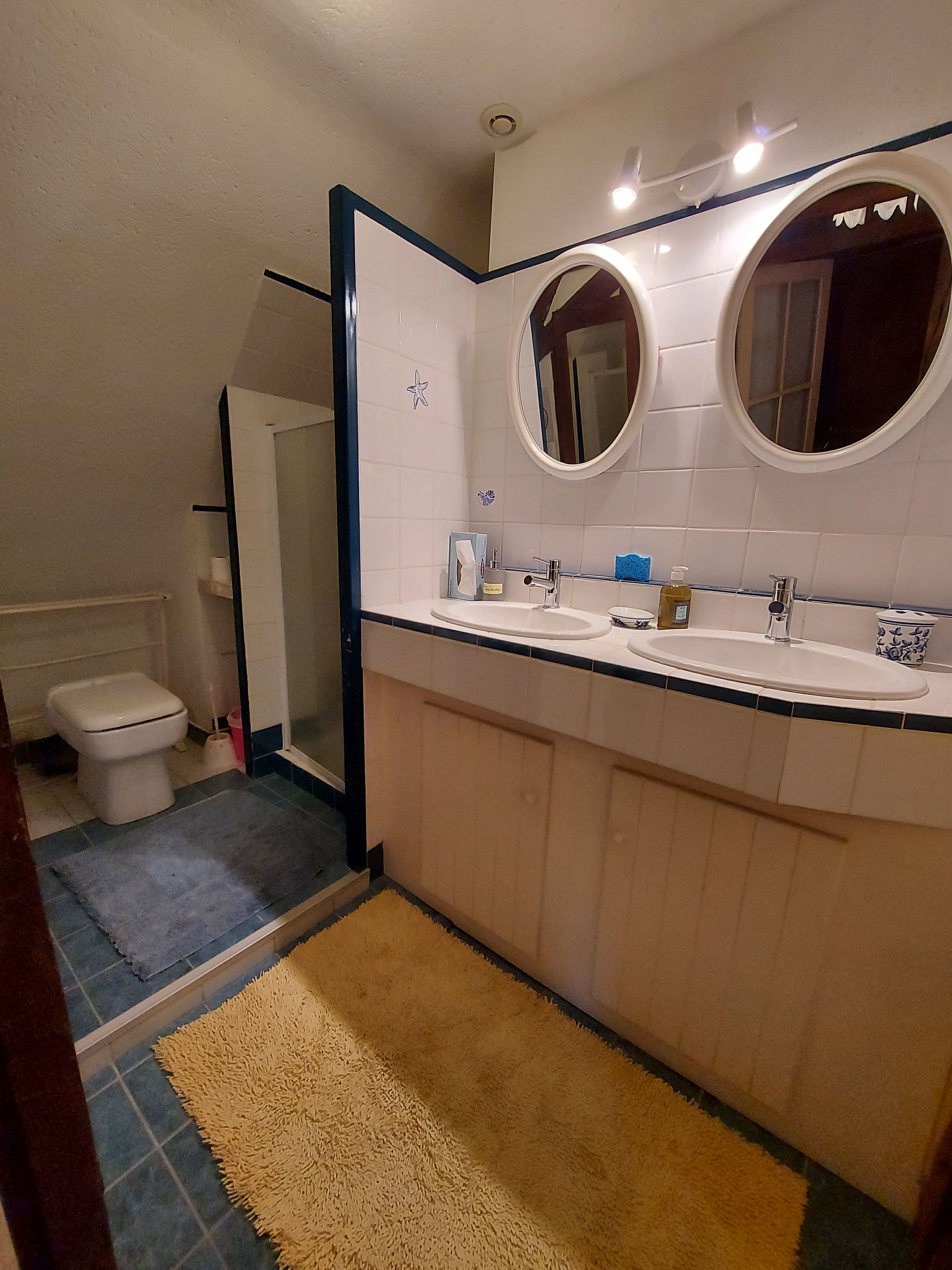 La maison est très spacieuse, composée d’un salon avec une grande cheminée (35m²), une salle à manger (30m²), une cuisine équipée et 3 grandes chambres de 12 à 20m² dont une suite avec sa salle d’eau et wc privatifs. Une salle d’eau (RDC), 1 salle de bain (1er) et 2 wc complémentaires. L’escalier menant à l’étage est large et confortable.