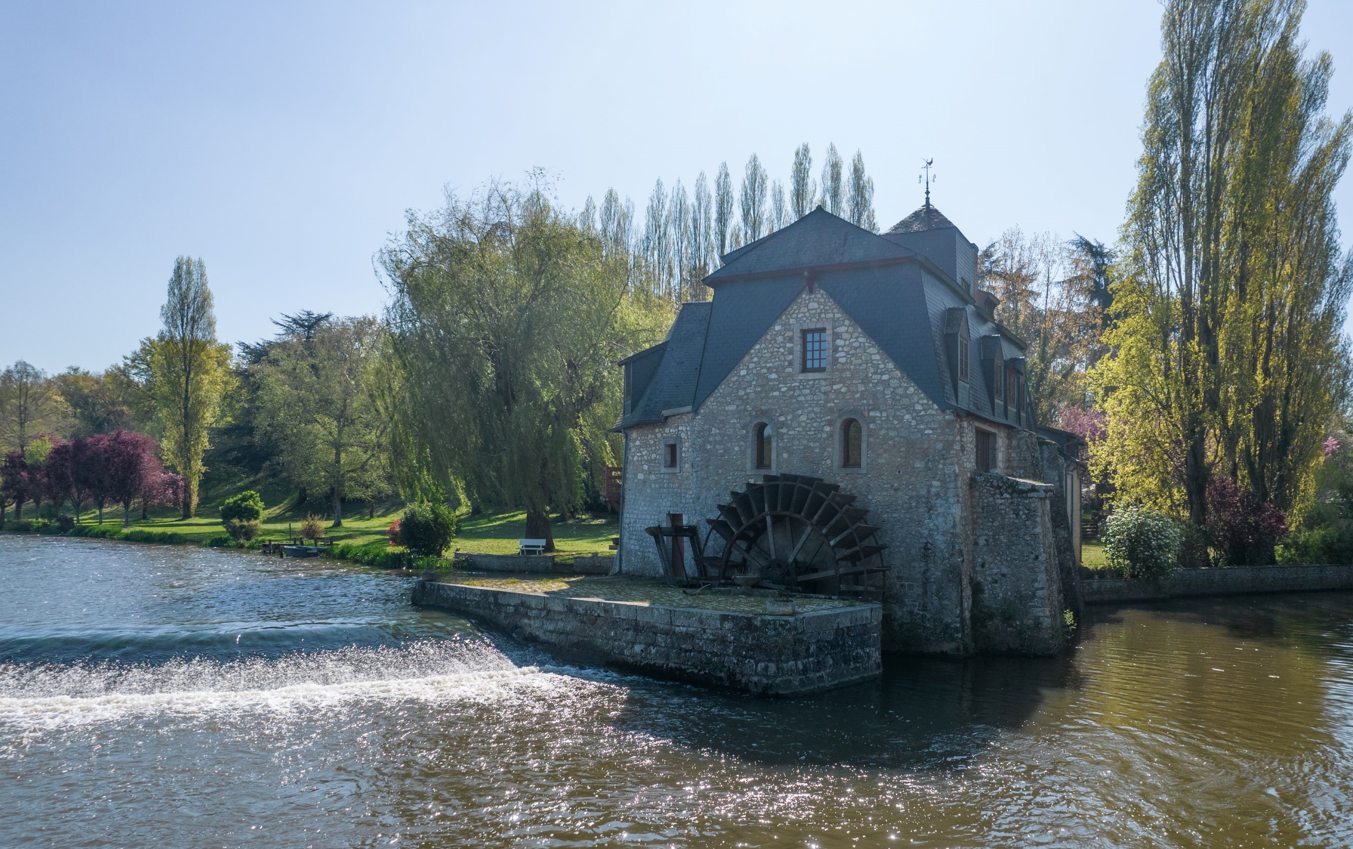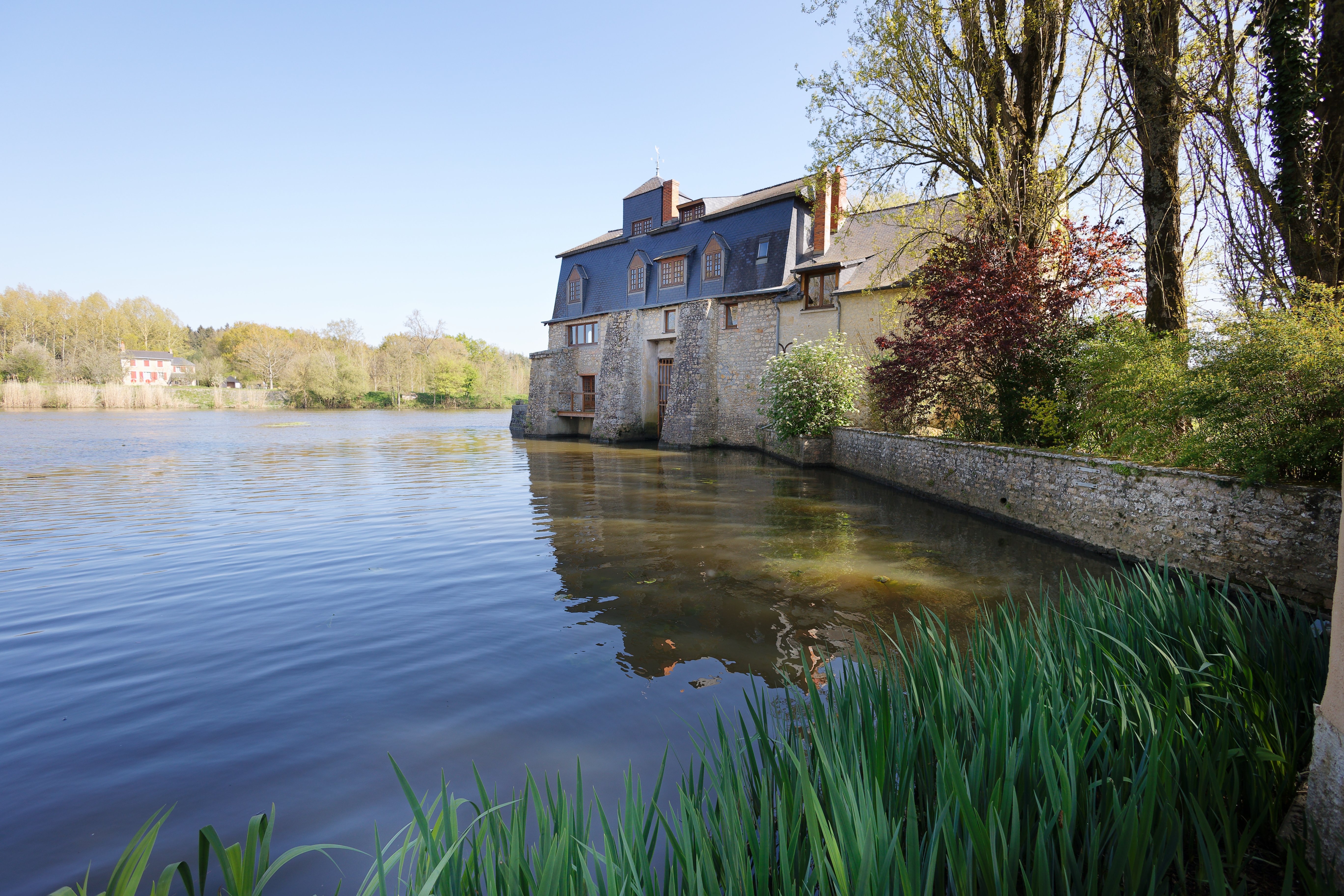 Majestueusement posé sur les rives de la Sarthe, le Moulin d’Ignieres offre un panorama à couper le souffle sur la rivière et son interminable barrage.