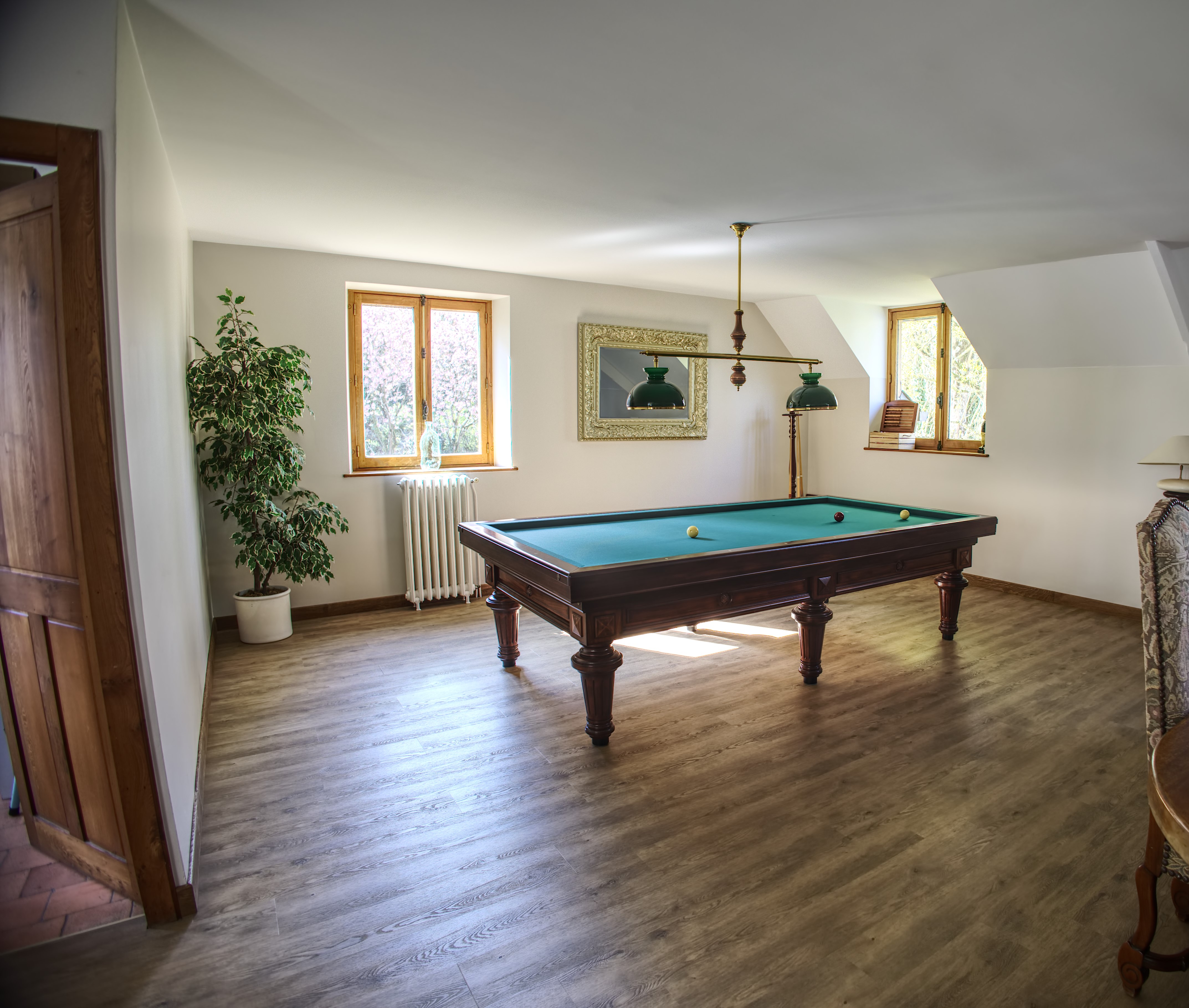 Le Moulin d’Ignières, d’une superficie totale de 350m2 (hors dépendance) est composé de 5 chambres, 3 salles de bain et 3 wc. 2 bureaux vous sont proposés ainsi qu’un salon chaleureux avec cheminée, une entrée et une salle à manger spacieuse avec billard français.