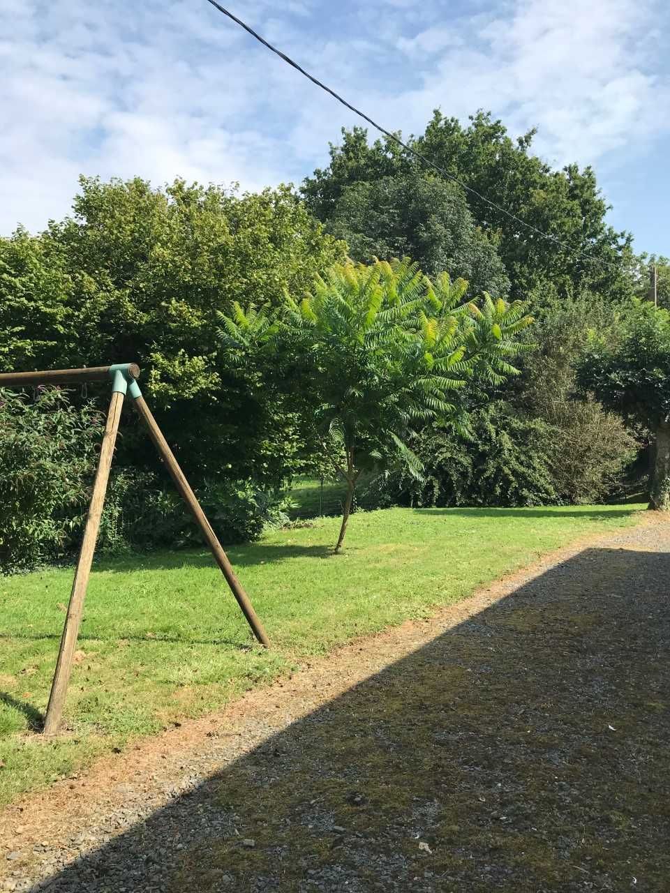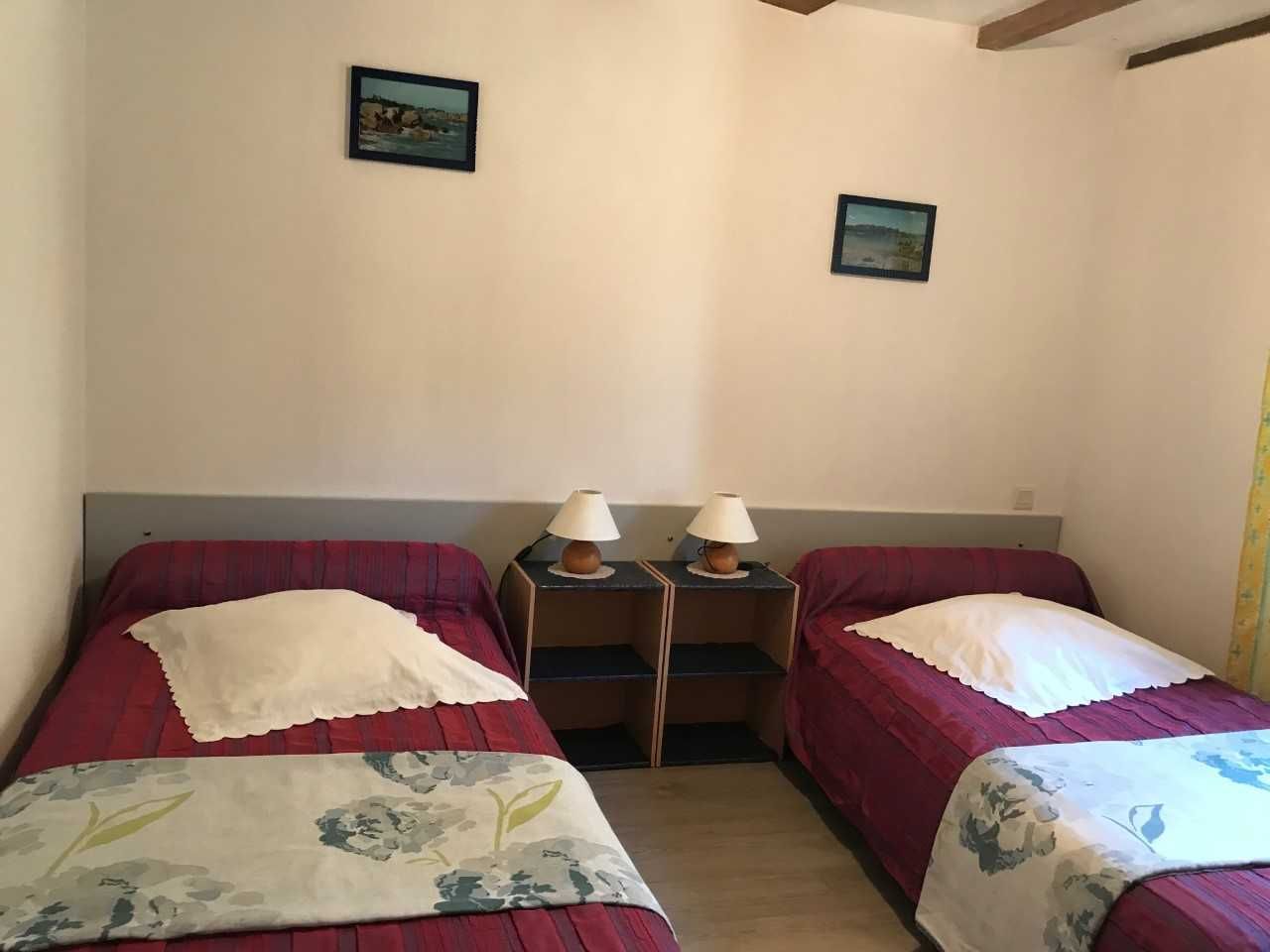 Salle à manger avec coin salon restaurée à l’ancienne avec poutres apparentes et vue paisible sur une vallée de verdure. Canapé-lit 2 pers. Cuisine aménagée (micro-ondes, réfrigérateur-congélateur). 1 chambre (2lits 1 pers.) et 1 chambre (1 lit 2 pers.). Salle d’eau, lave-linge. WC séparé. Chauffage électrique non compris, à payer suivant la consommation. Salon de jardin, barbecue. Balades pédestres sur terrain privé. Charges non-comprises. TS. Autoroute Océane, sortie 8, Le Mans-Université. Portique. Charges non comprises (électricité).