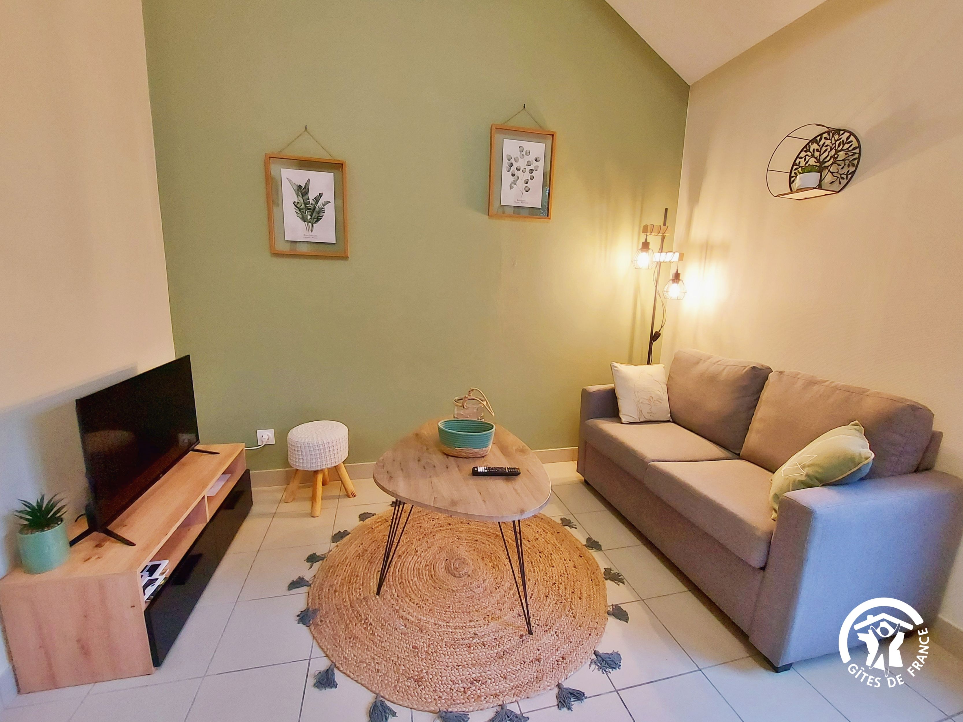Possibilité de séjourner jusqu’à 5 personnes avec le canapé convertible.