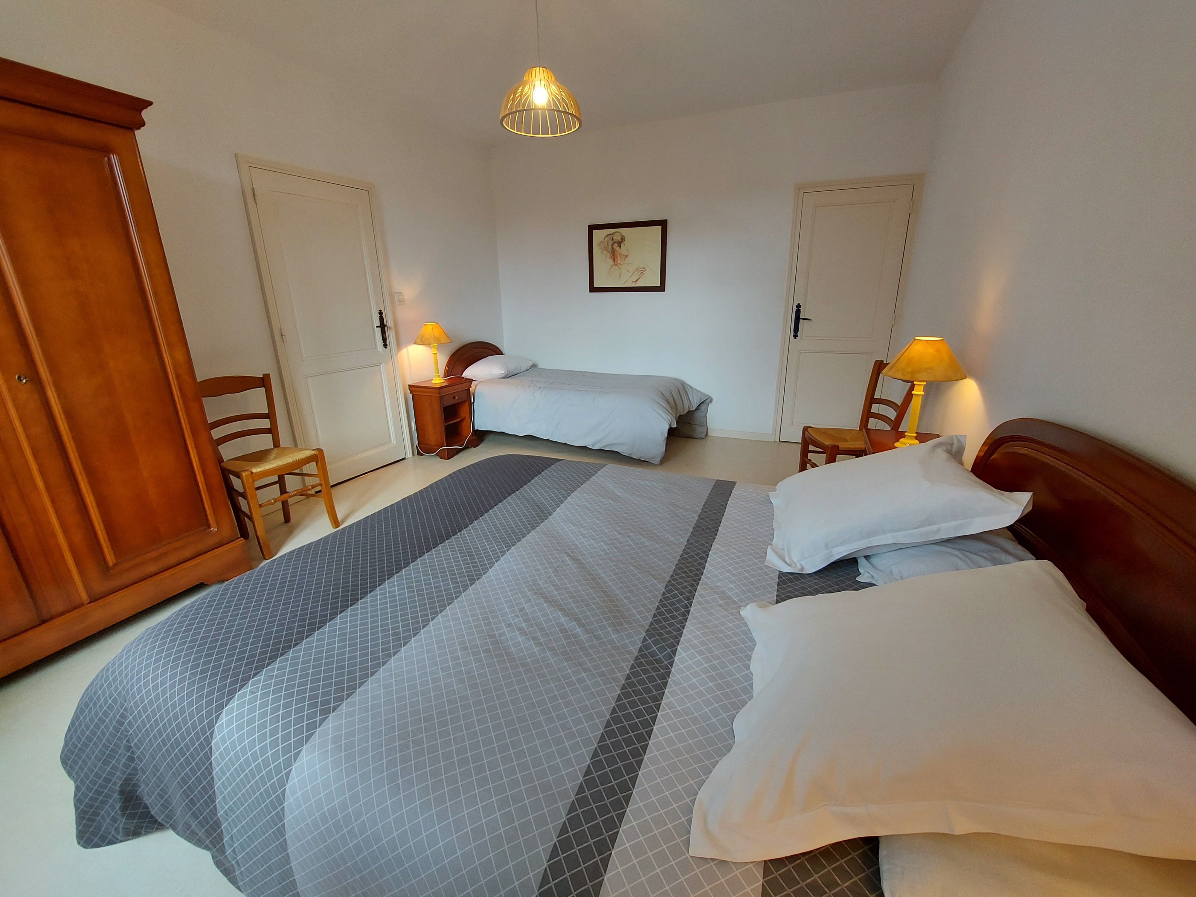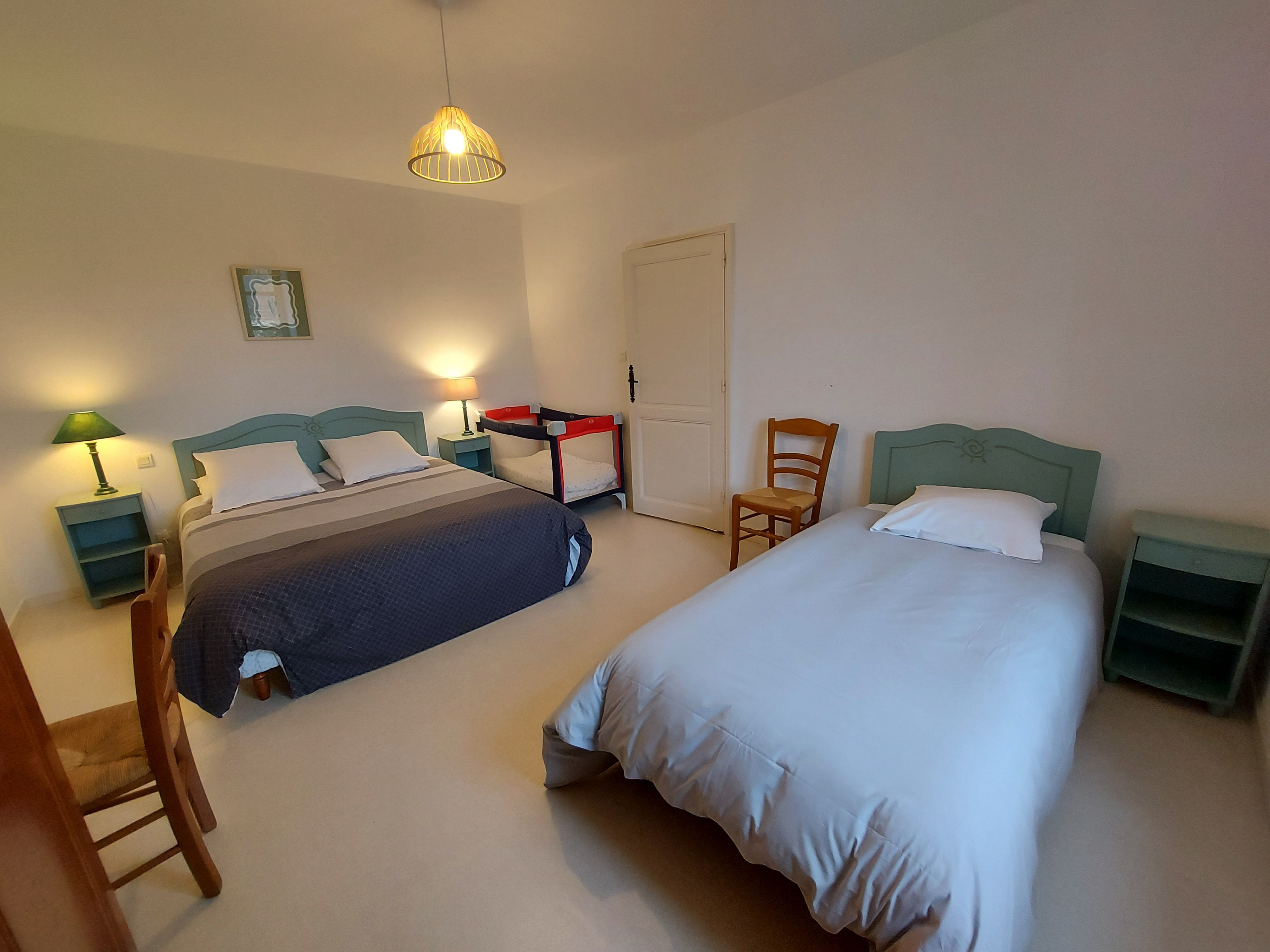 A l’étage, 3 belles chambres : une suite parentale 18m² avec sa salle d’eau (douche) privative -1 lit 160*200 et 1 lit 90*190, une chambre avec lit bébé 18m² – 1 lit 160*200 et 1 lit 90*190 et une chambre 9m² avec 2 lits 90*190. Au total, 2 wc et 3 salles de bain/douche.