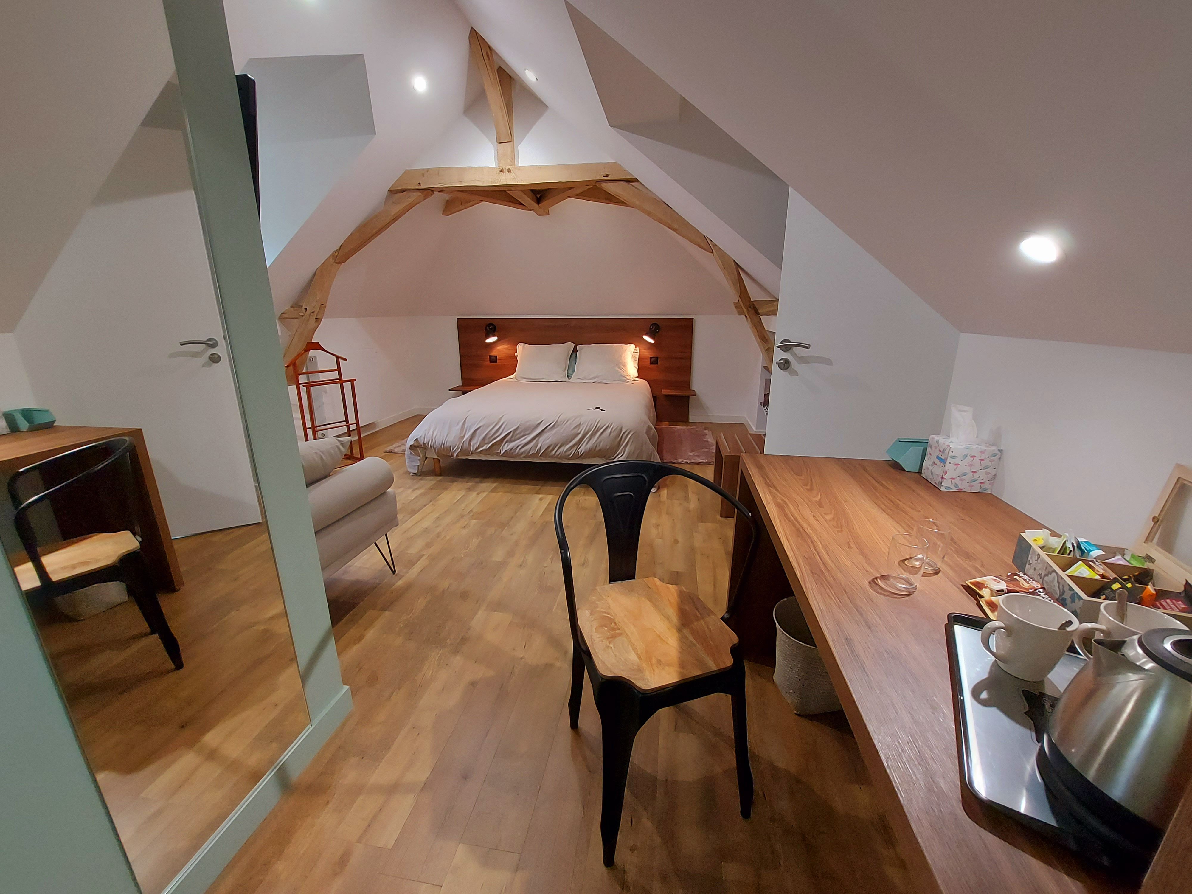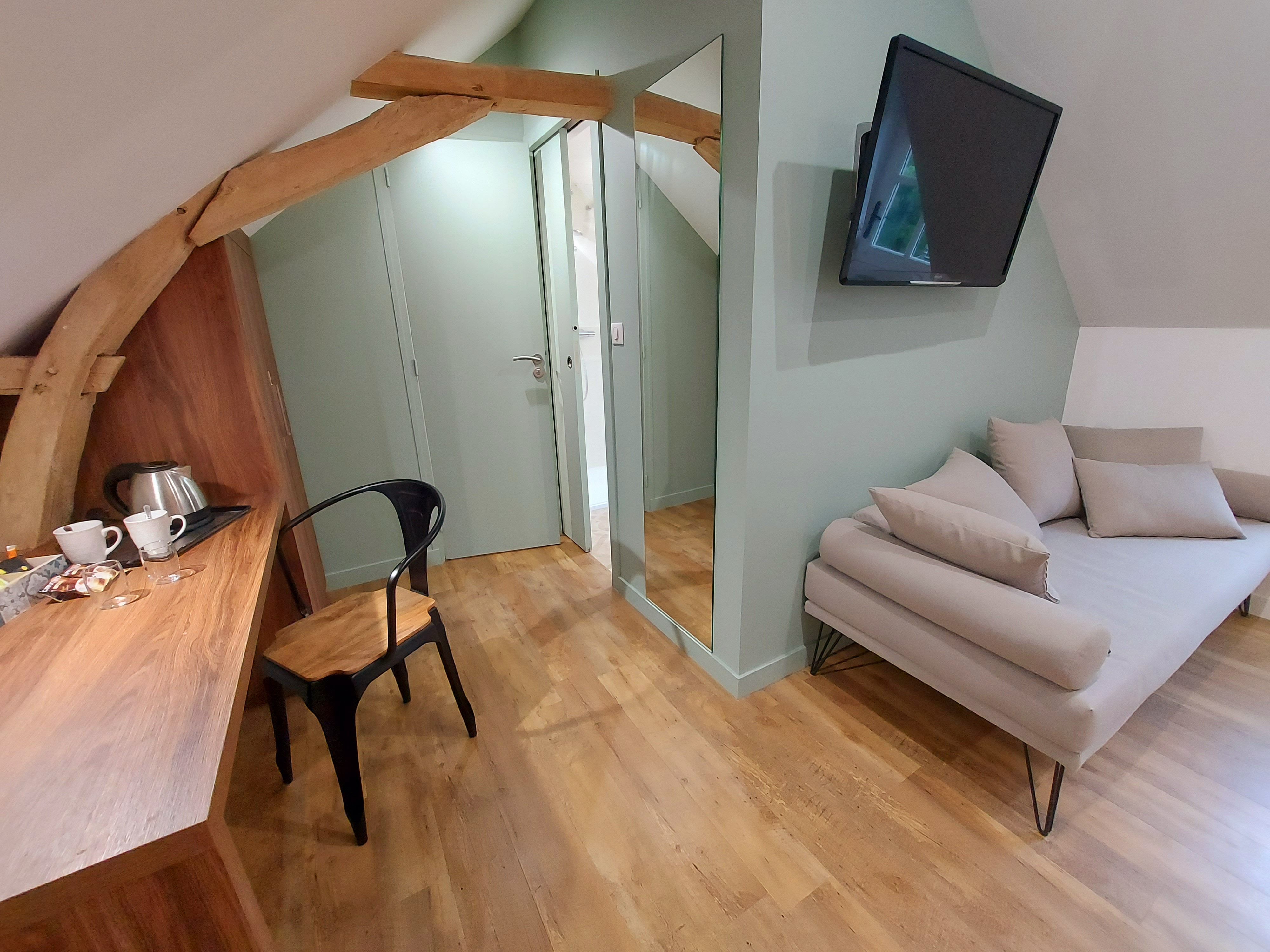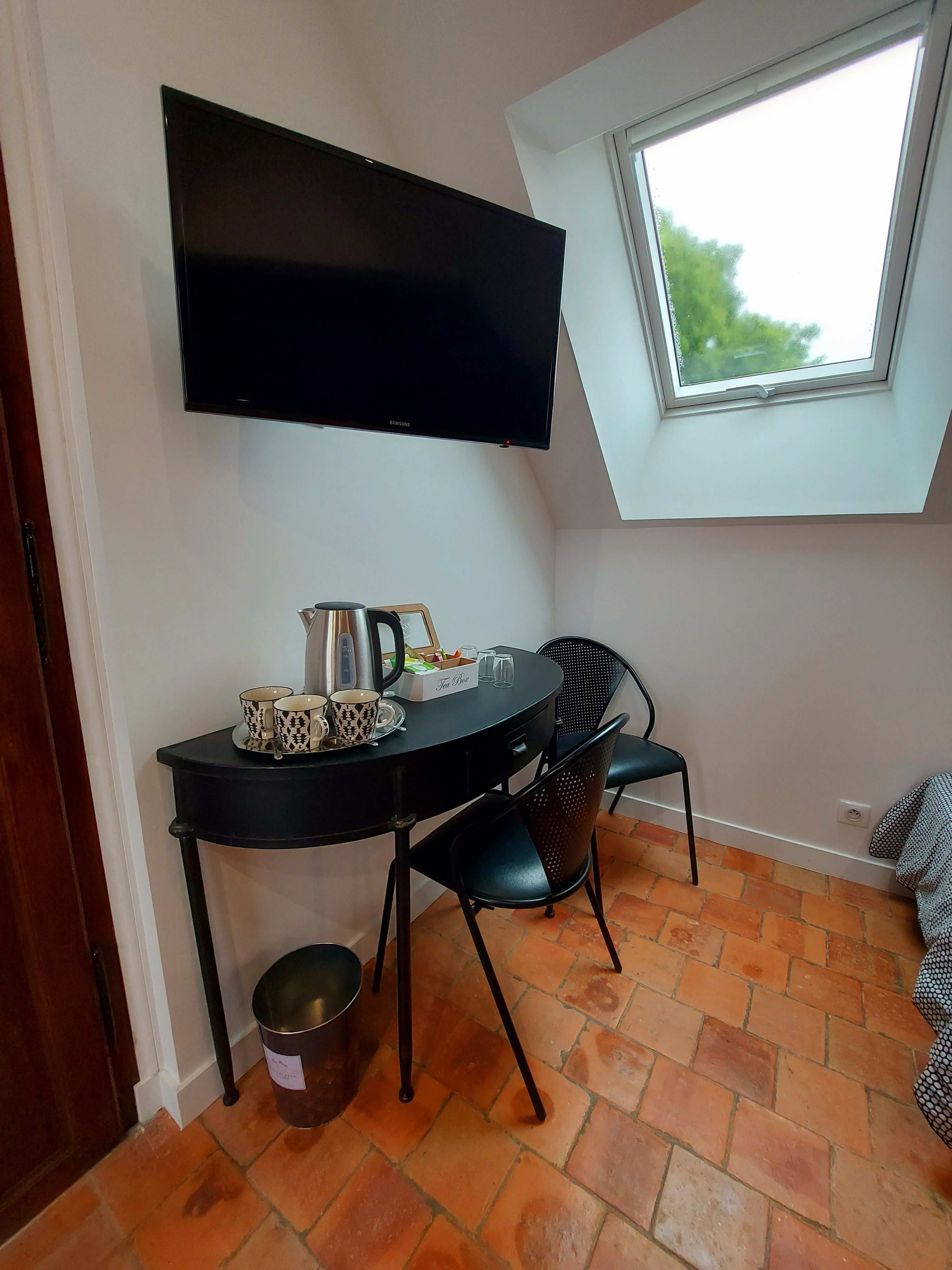 Les télétravailleurs sont les bienvenus, un espace bureau avec prise internet et wifi est mis en place dans chaque chambre pour travailler dans de bonnes conditions. Plateau de convivialité avec bouilloire et sachet de boisson.