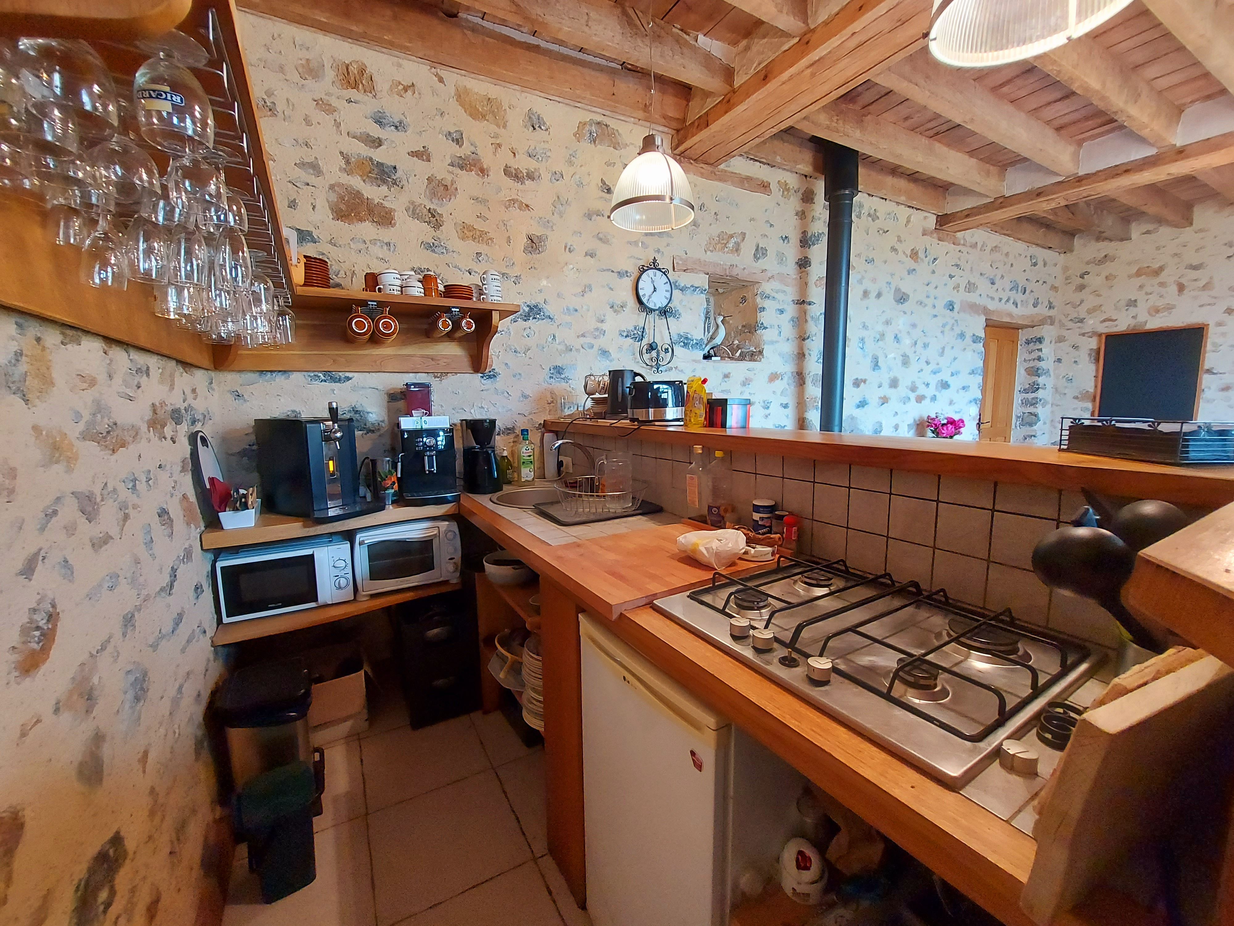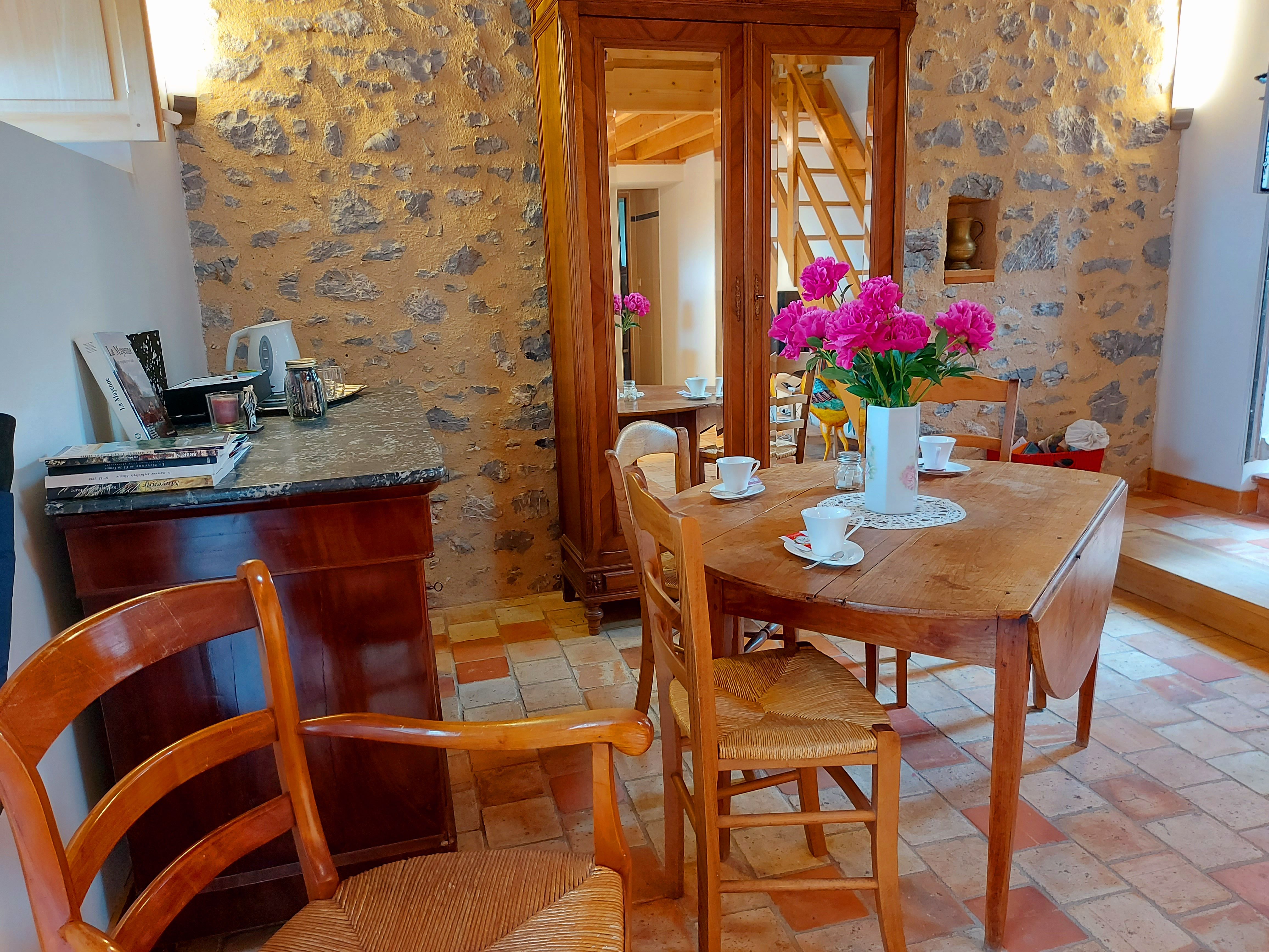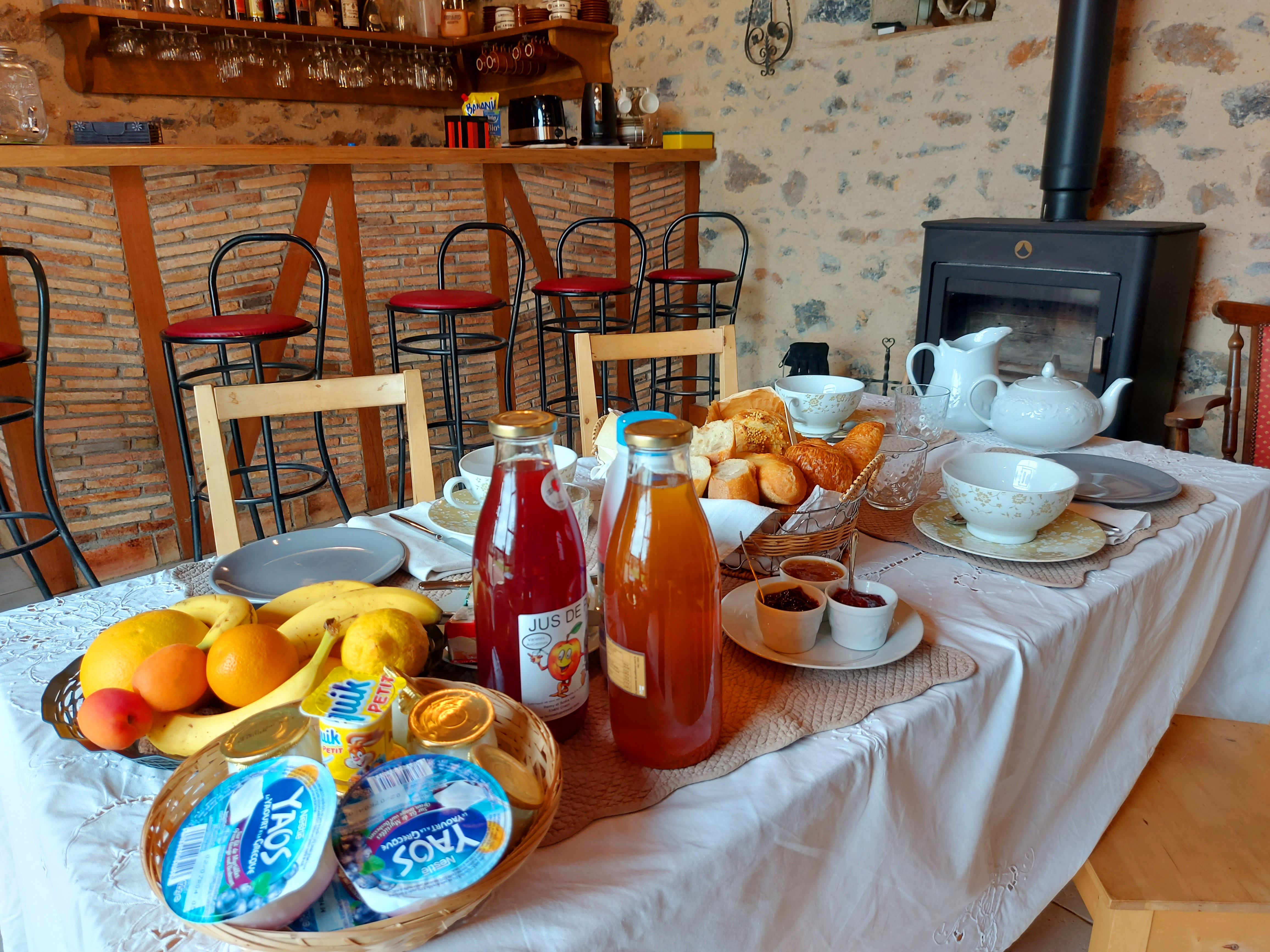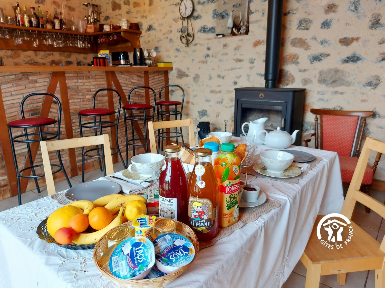 Pour vos repas, vous pourrez profiter d’une salle équipée d’un bar, d’un espace restauration avec un coin cuisine (mini-four, plaque de gaz, micro ondes, réfrigérateur…), d’un grand écran TV, Wifi, jeux et poêle à bois. Des plateaux repas du restaurant le Petit comptoir du village peuvent être commandés et livrés.