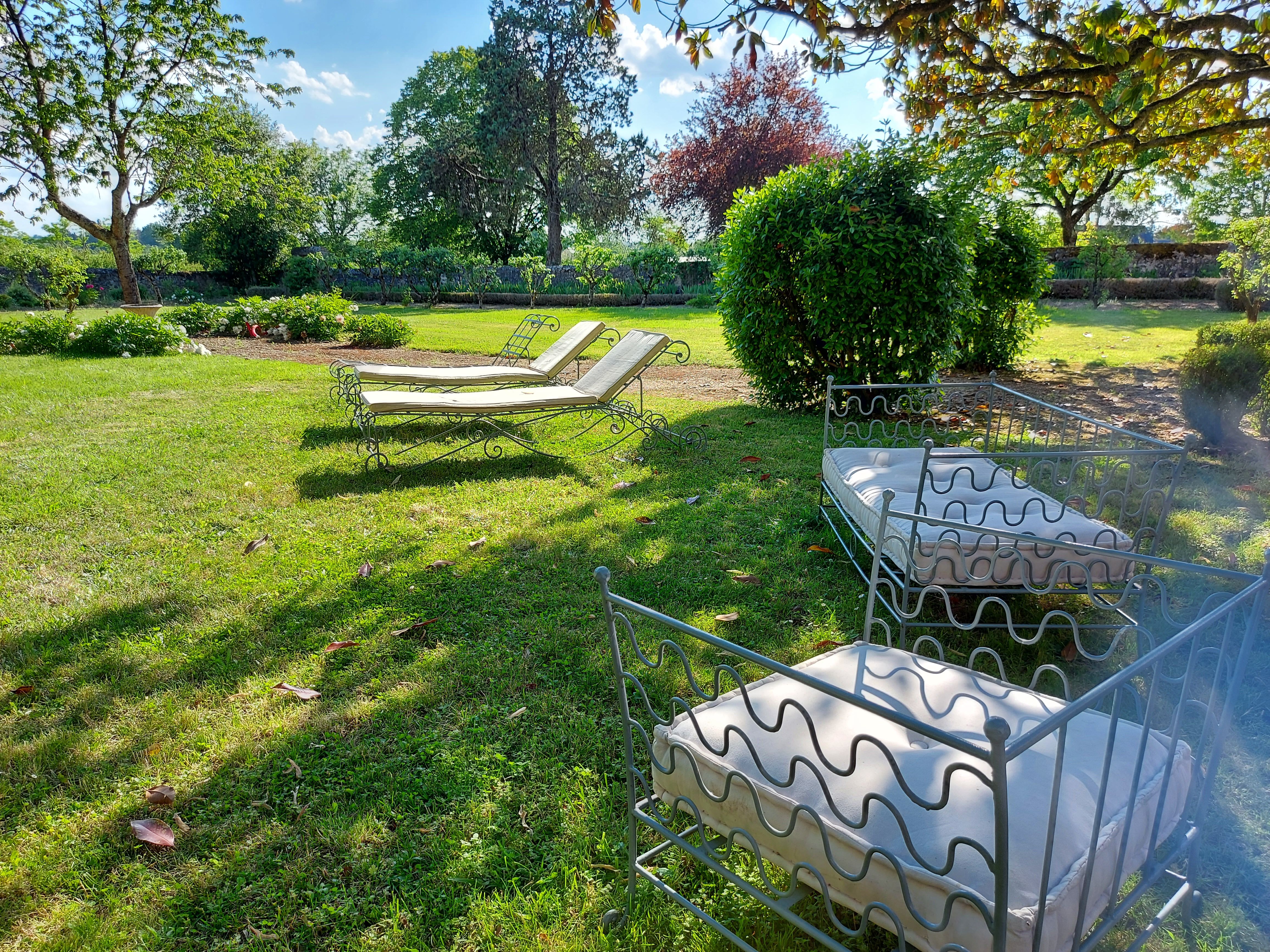 Pour profiter du jardin et du parc, des salons de jardin et transats sont répartis sur les terrasses et le parc. Aventurez-vous aussi dans le bois de 1.7ha et observez les animaux.