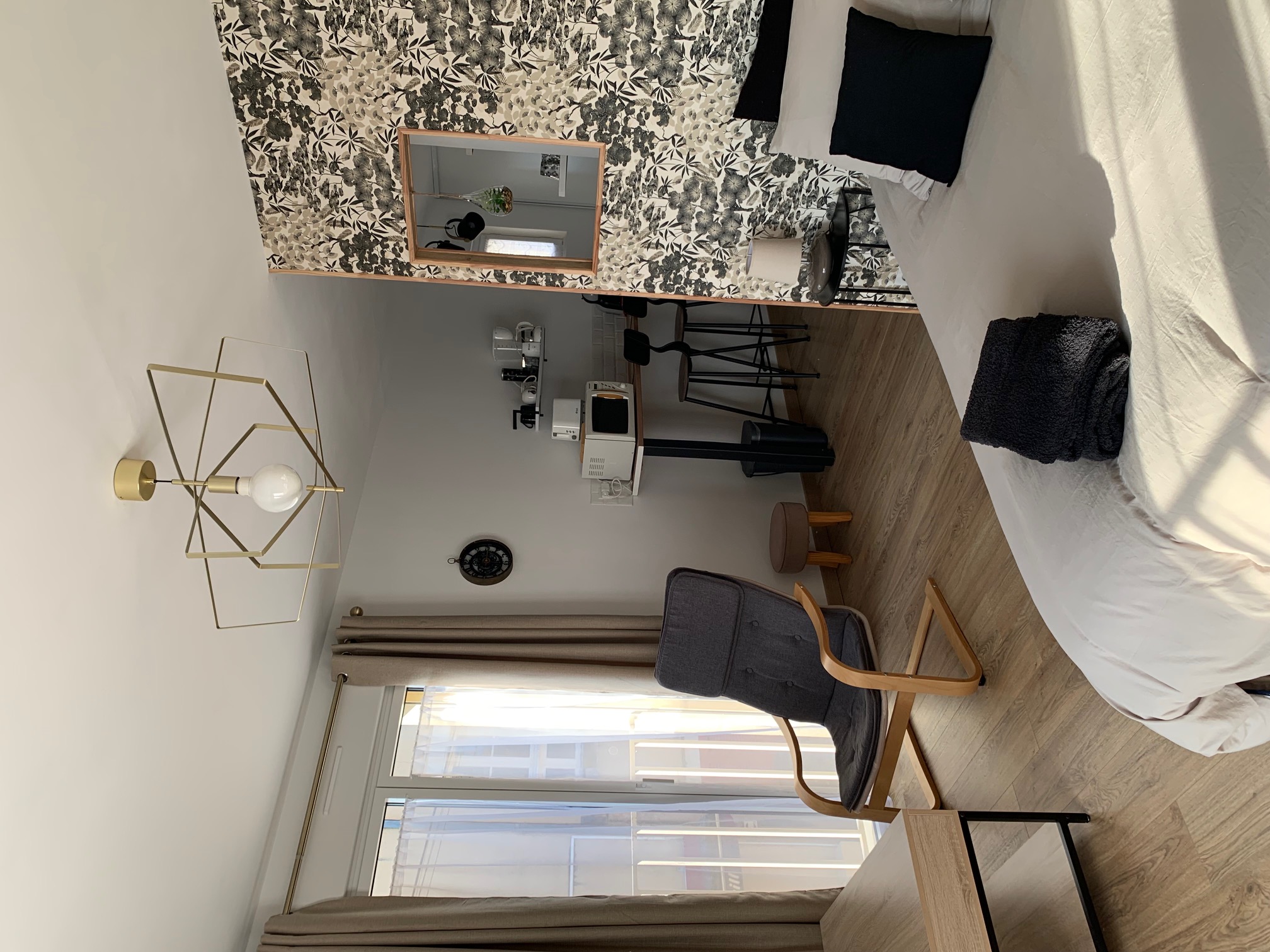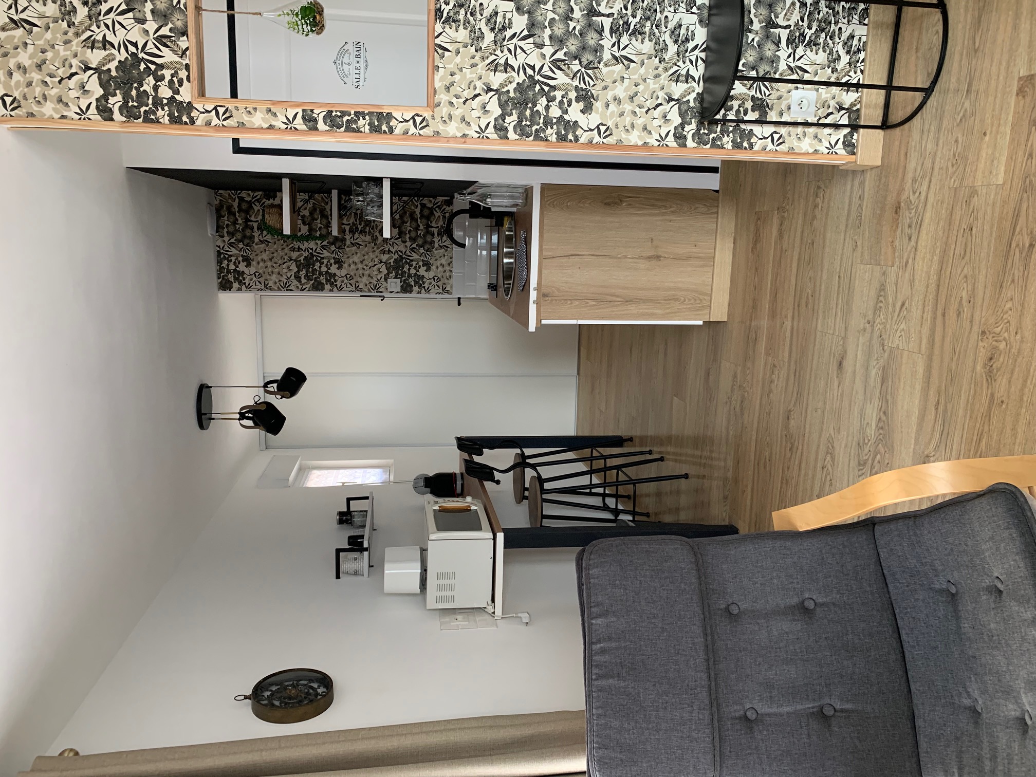 Au centre de Sablé/Sarthe avec tous les commerces, près de la gare, des bus, lumineux et vue sur le château et « La Sarthe ». Composé d’une kitchenette avec réfrigérateur, plaque à induction, micro-onde, vaisselle complète, Dolce Gusto, torchons fournis, pièce de vie avec un lit de 140×200 (linge de lit fournis), 2 fauteuils, un pouf, une table basse étirable, une télévision, box FREE. Une salle de douche avec un vasque, cabine de douche, sèche serviette, (serviettes de toilette compris), un toilette séparé.