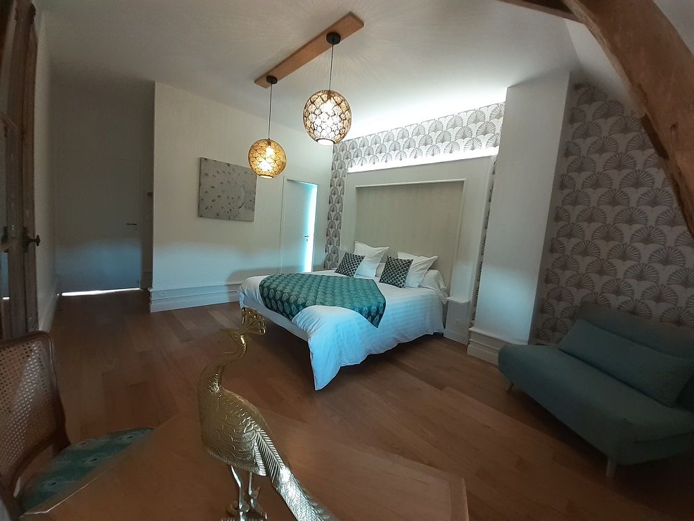 Situé à 3 km de Loué, 30 km du Mans et 25 Km de Sablé, Anne-Elisabeth vous accueille dans un ancien corps de ferme. Le Carrefour est idéalement situé pour une pause campagnarde ou un séjour touristique. 2 Chambres spacieuses et lumineuses à l’étage, offrent un regard sur la campagne environnante. Chambres avec chacune salle…