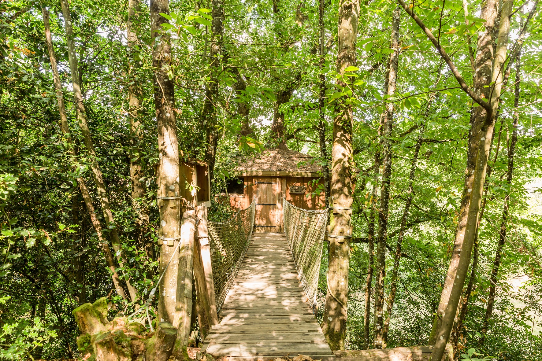 Perchée à 8 m ou à 3 m de haut , l’accès aux 4 cabanes dans les arbres se fait par un pont népalais. La cabane sur pilotis à 3 m possède également, à proximité, un coin barbecue . La cabane sur l’eau repose , quant à elle, à fleur d’eau dans un écrin de verdure. Imaginée et conçue pour vivre au rythme de la nature, elle offre à ses visiteurs calme et repos grâce à sa maxi terrasse et son îlot privatif avec barbecue. L’accès à la cabane se fait par un ponton et un pont levis. Les cabanes comportent 1, 2 ou 3 lits 2 personnes, 1 salle d’eau avec lavabo, brocs d’eau et toilettes sèches ainsi qu’un espace de repos. Elles disposent également d’une terrasse qui va jusqu’à 12 m² qui permet d’allier les plaisirs de la table à ceux de la nature. Randonnée, pêche, parcours acrobatiques sur place, balade à cheval.
